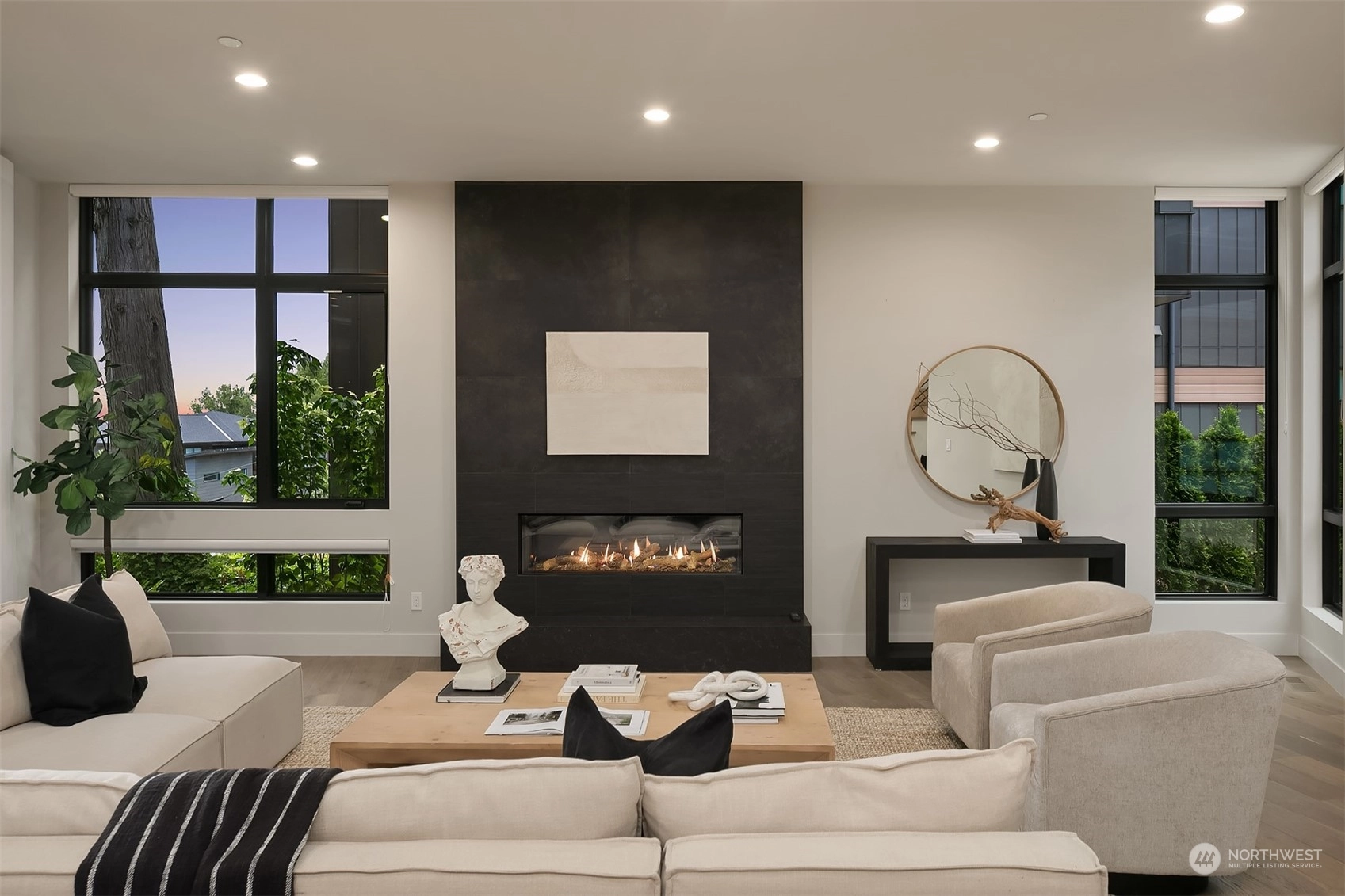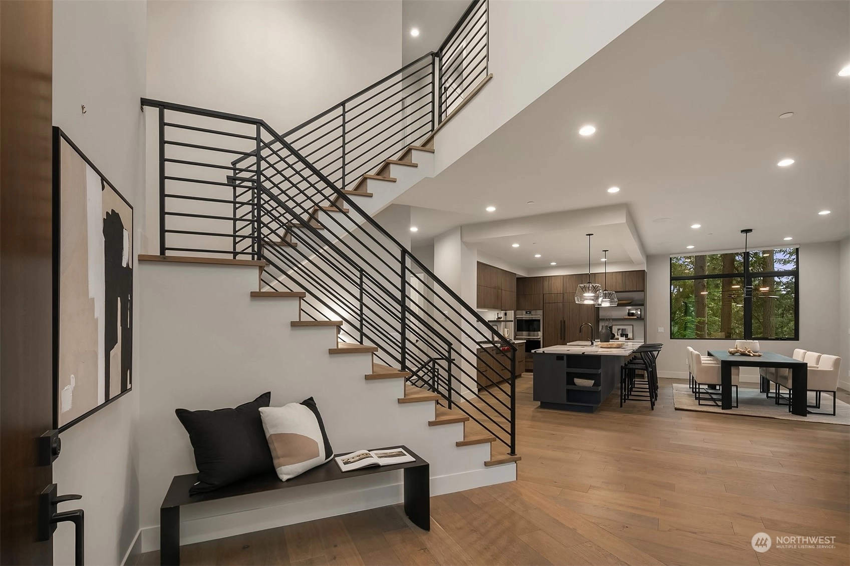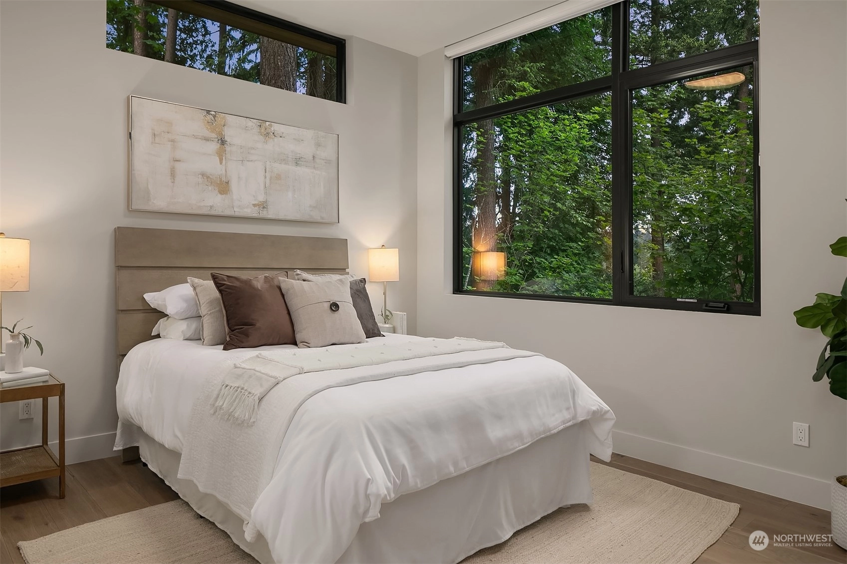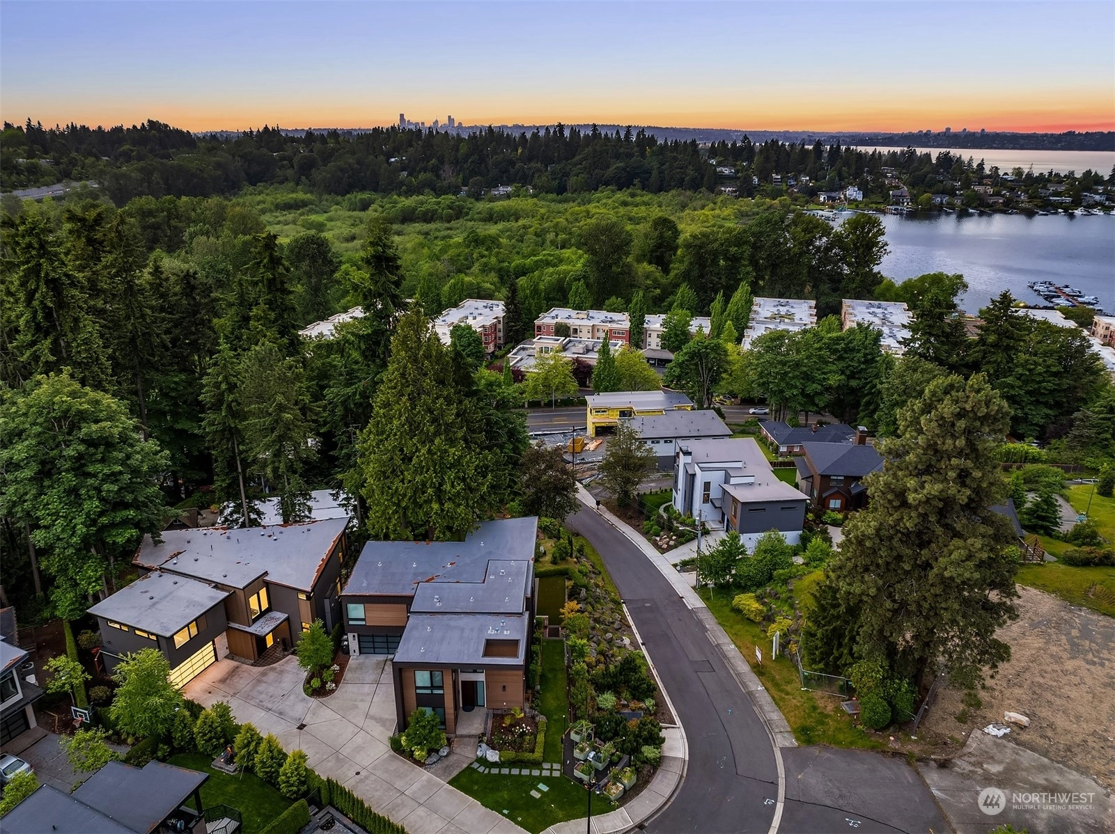 Ideally located in South Houghton and overlooking Yarrow Bay, this better than new home features stylish contemporary home design, an excellent floor plan, and is loaded with upgrades. An entertainers’ dream with an open and spacious great room anchored by a stunning 60” linear gas fireplace with lake views. The gourmet kitchen is well-equipped with a complete Sub-Zero + Wolf appliance package, Walnut cabinets, large island, and more. Main floor office and en-suite bedroom with 3/4 bath. Upstairs you’ll discover 4 beds including an en-suite and luxurious primary suite. Huge lower level rec room with wet bar, 3/4 bath, and access to covered patio and turf backyard. Set on a private lot in a cul-de-sac, access to the Cross Kirkland Corridor.