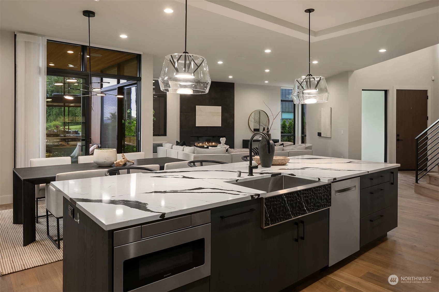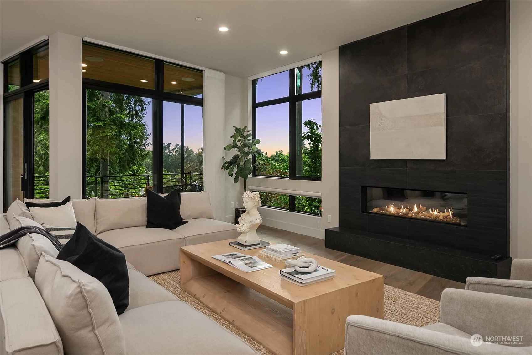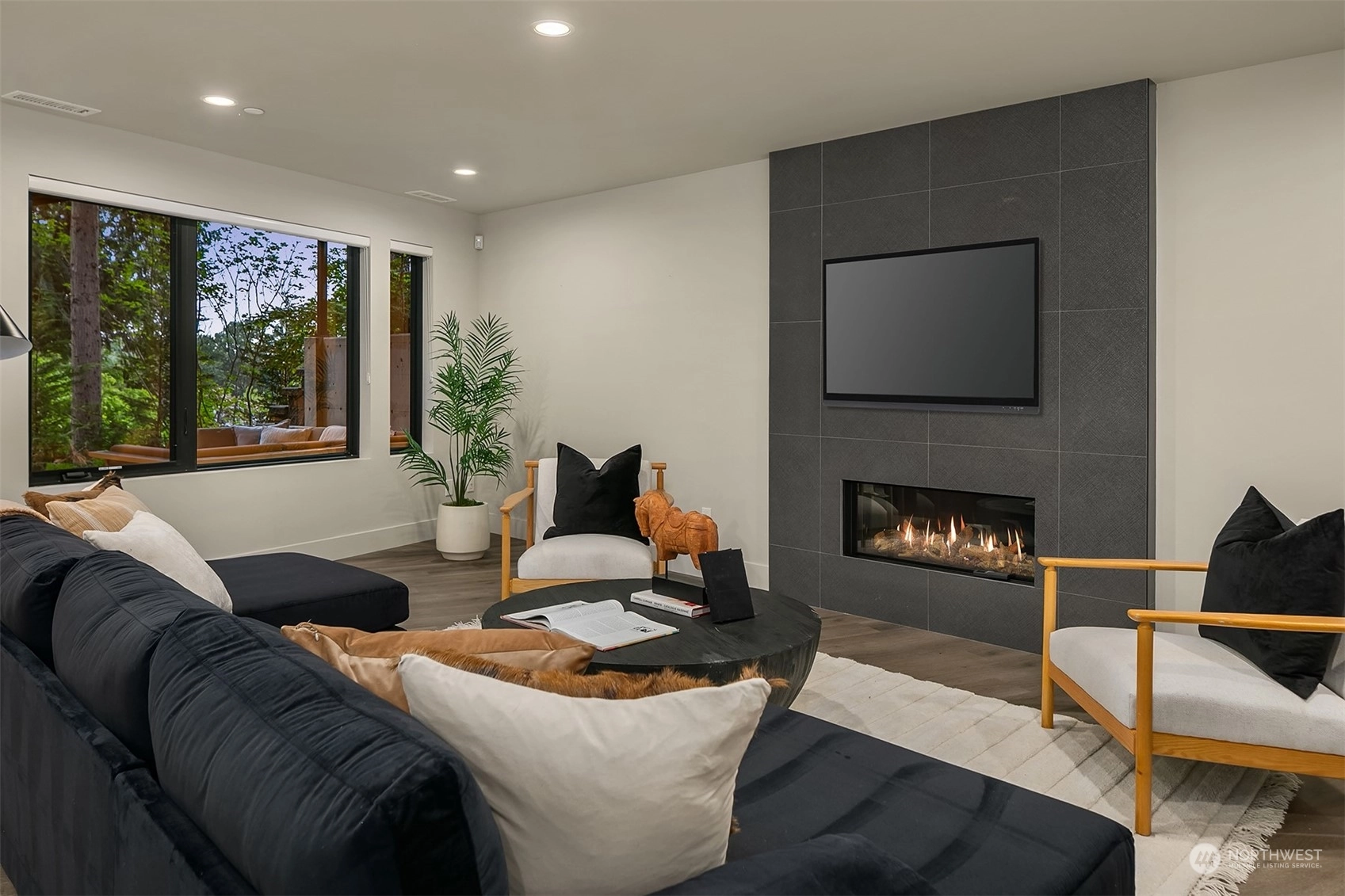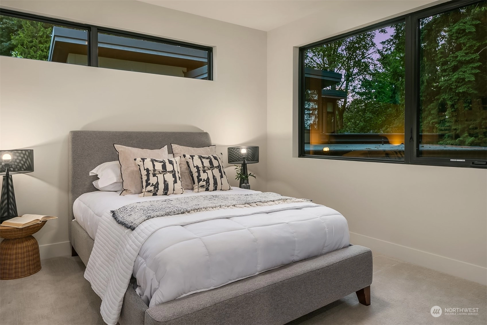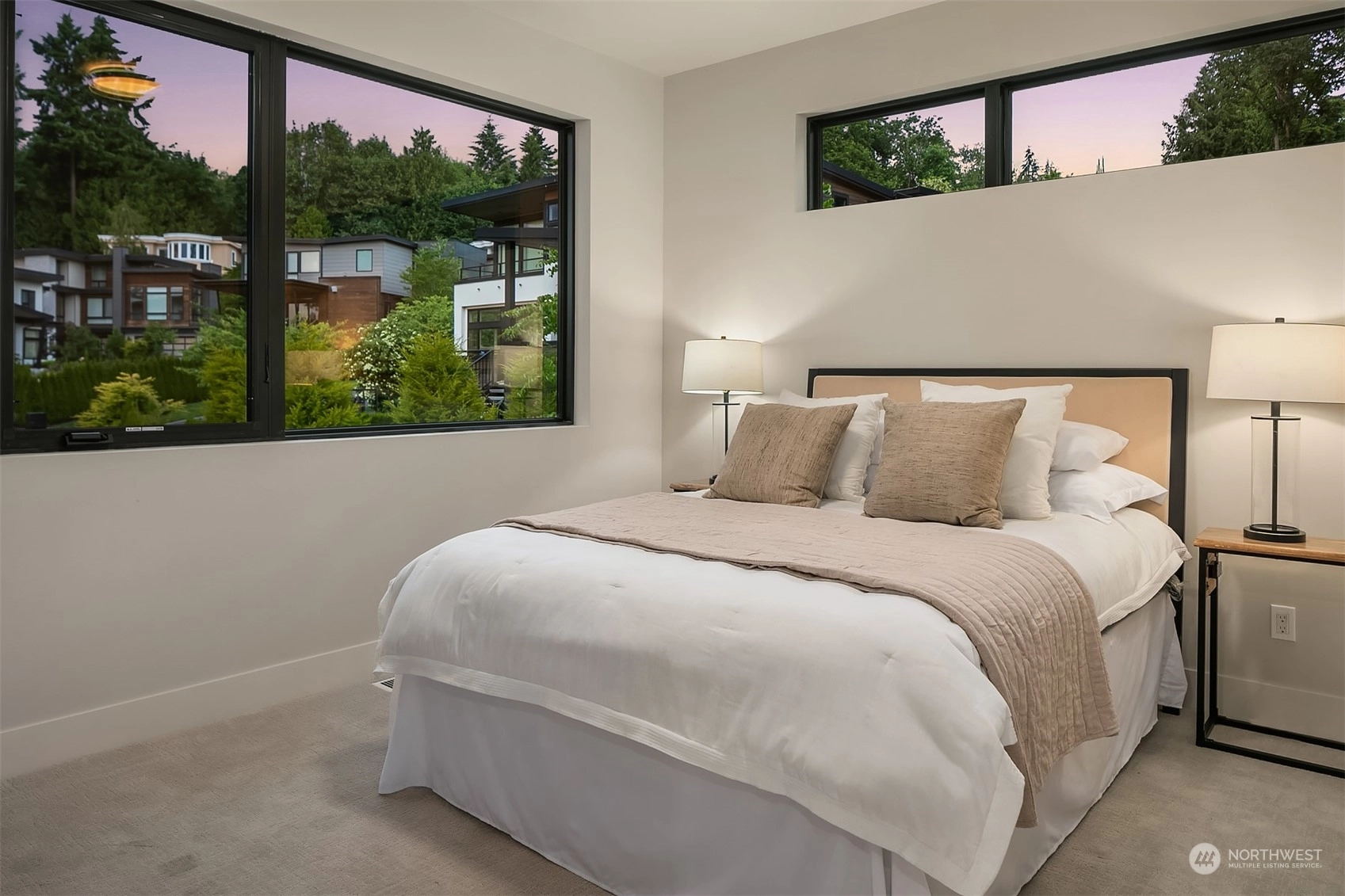 Ideally located in South Houghton and overlooking Yarrow Bay, this better than new home features stylish contemporary home design, an excellent floor plan, and is loaded with upgrades. An entertainers’ dream with an open and spacious great room anchored by a stunning 60” linear gas fireplace with lake views. The gourmet kitchen is well-equipped with a complete Sub-Zero + Wolf appliance package, Walnut cabinets, large island, and more. Main floor office and en-suite bedroom with 3/4 bath. Upstairs you’ll discover 4 beds including an en-suite and luxurious primary suite. Huge lower level rec room with wet bar, 3/4 bath, and access to covered patio and turf backyard. Set on a private lot in a cul-de-sac, access to the Cross Kirkland Corridor.