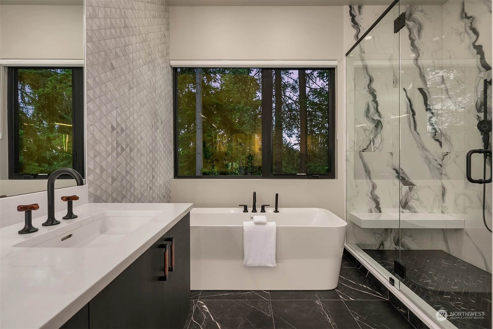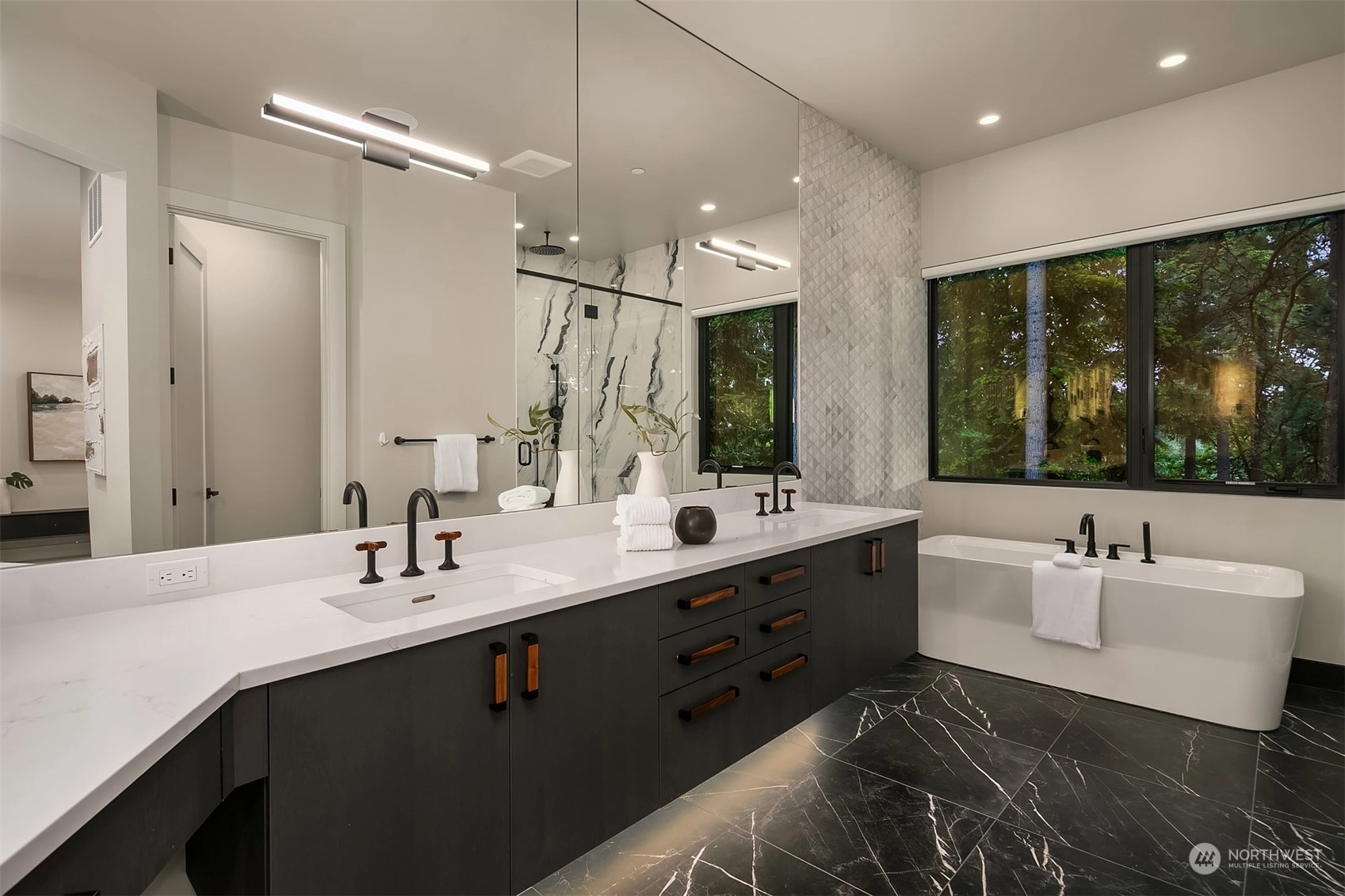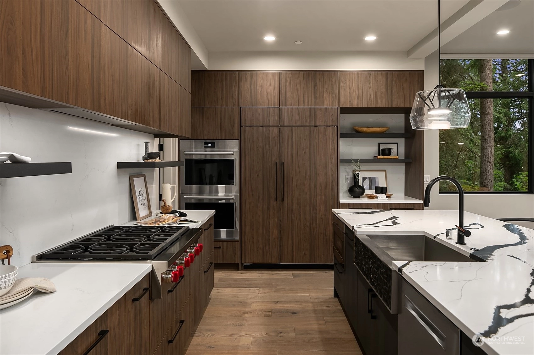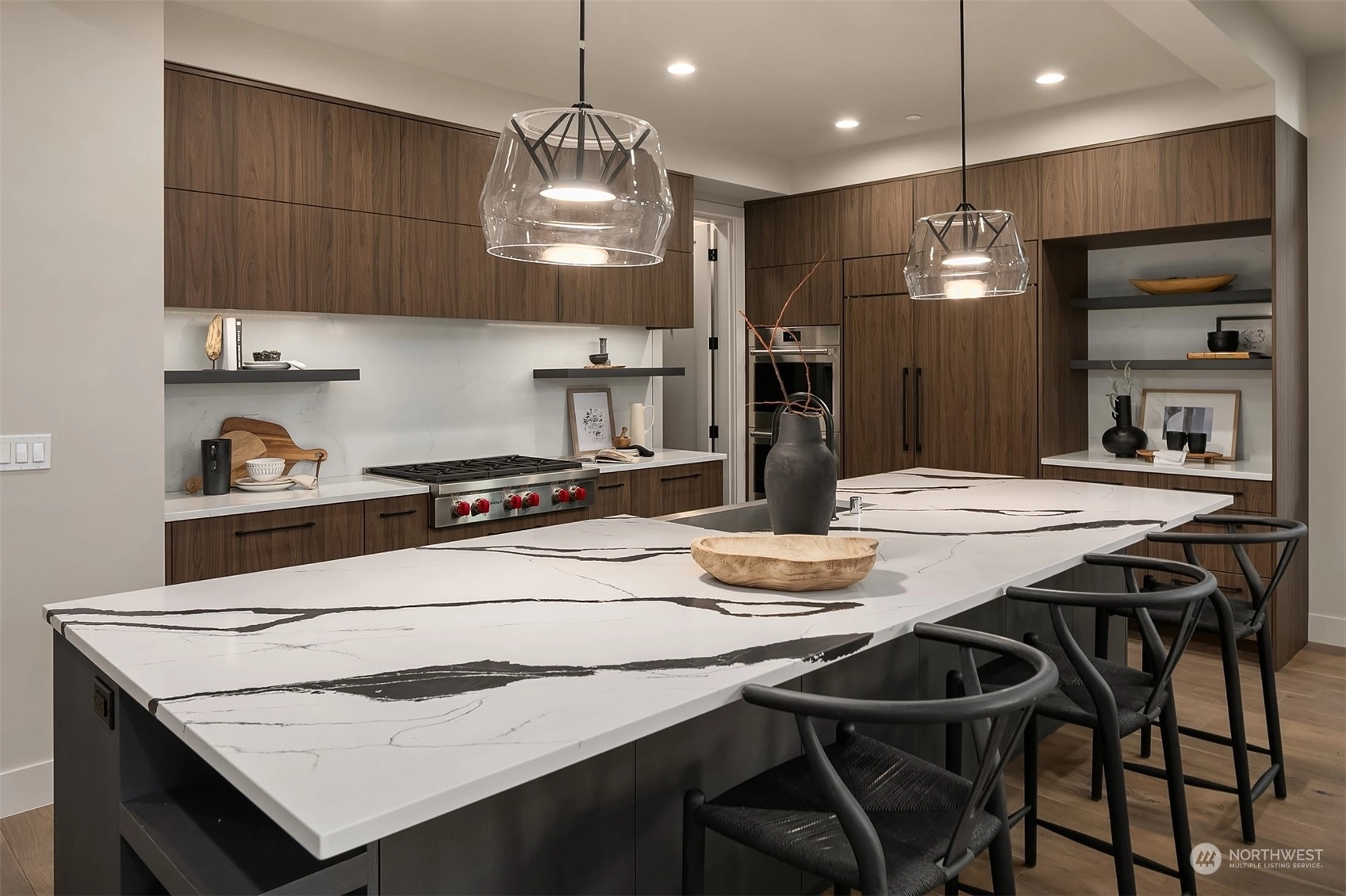 Ideally located in South Houghton and overlooking Yarrow Bay, this better than new home features stylish contemporary home design, an excellent floor plan, and is loaded with upgrades. An entertainers’ dream with an open and spacious great room anchored by a stunning 60” linear gas fireplace with lake views. The gourmet kitchen is well-equipped with a complete Sub-Zero + Wolf appliance package, Walnut cabinets, large island, and more. Main floor office and en-suite bedroom with 3/4 bath. Upstairs you’ll discover 4 beds including an en-suite and luxurious primary suite. Huge lower level rec room with wet bar, 3/4 bath, and access to covered patio and turf backyard. Set on a private lot in a cul-de-sac, access to the Cross Kirkland Corridor.