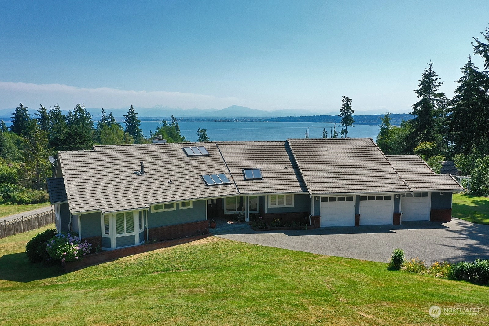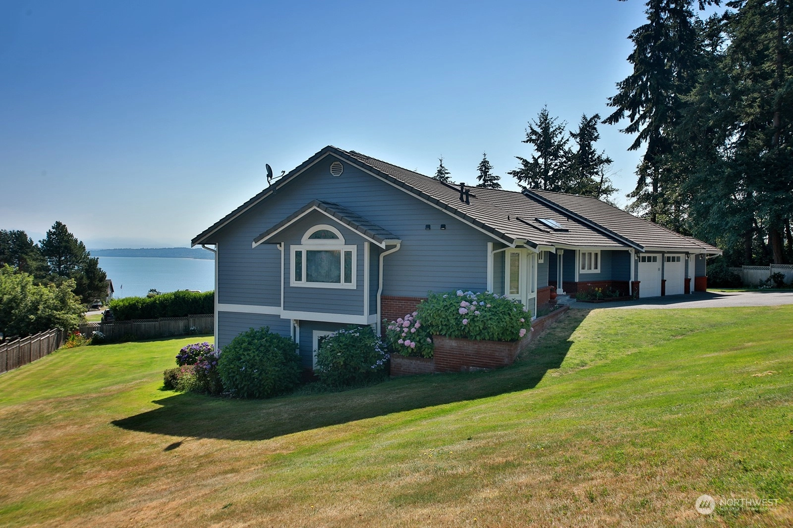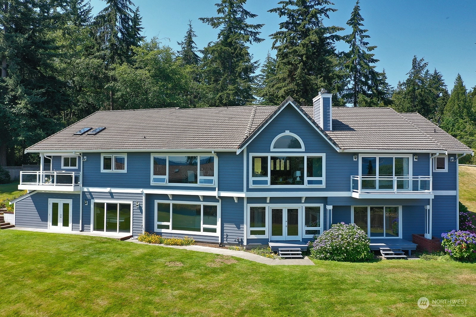Discover the charm of island living with this stunning custom home, offering breathtaking water, mountain, and territorial views. Spanning nearly 5,000 square feet, this residence epitomizes luxury with expansive floor plan and meticulous custom details throughout. Featuring 4 bedrooms, the home is designed for comfort with main level living and a versatile lower level suitable for multi-family arrangements. Set on 1 acre of beautifully landscaped grounds, the property includes ample space for gardens & is fully fenced/gated. Located conveniently near the Clinton ferry, this home ensures both tranquility and easy access to amenities. Experience the perfect blend of elegance and allure in this exceptional island retreat.
