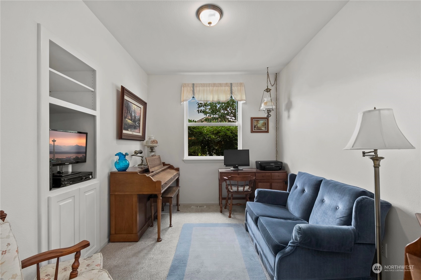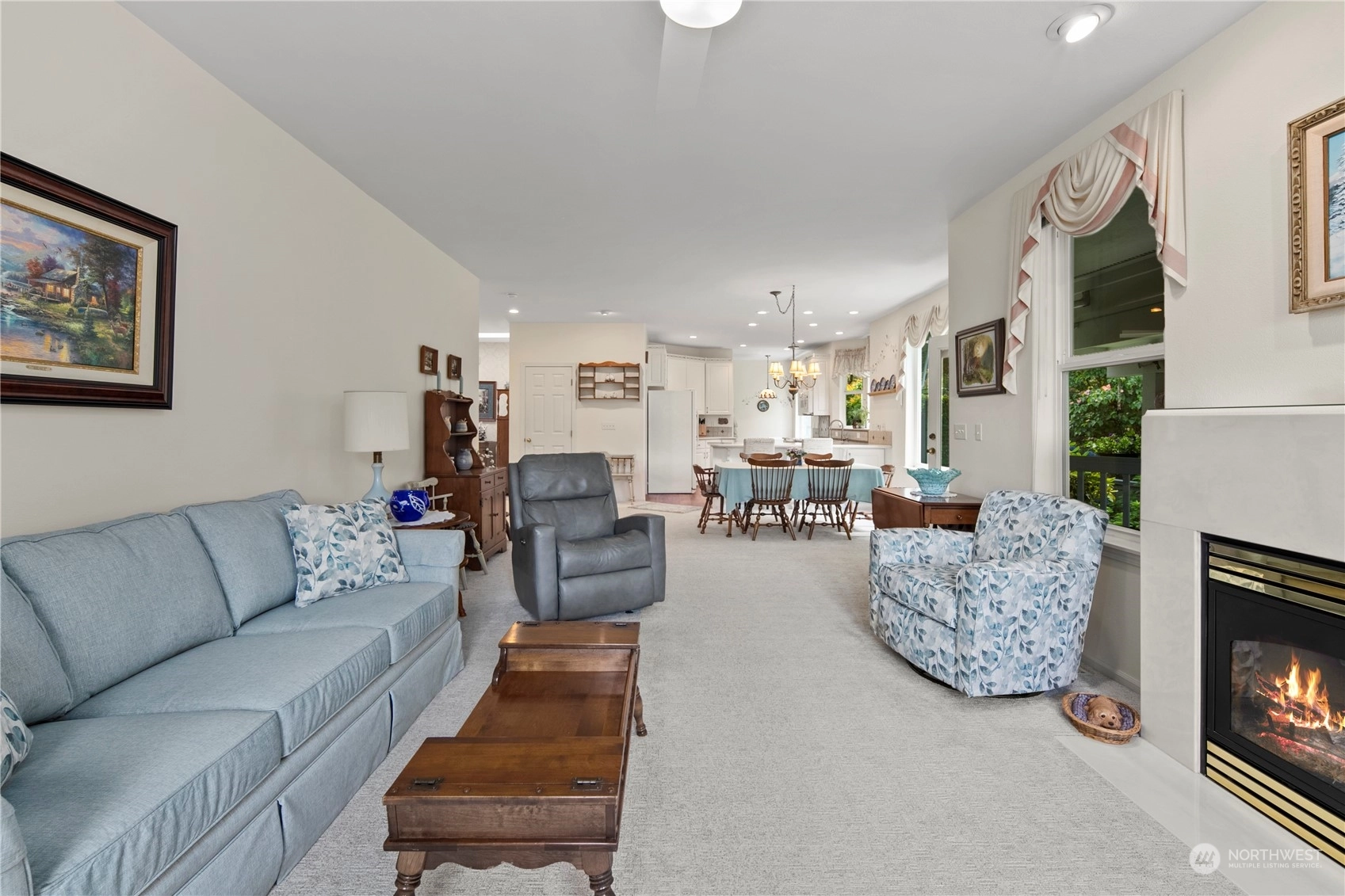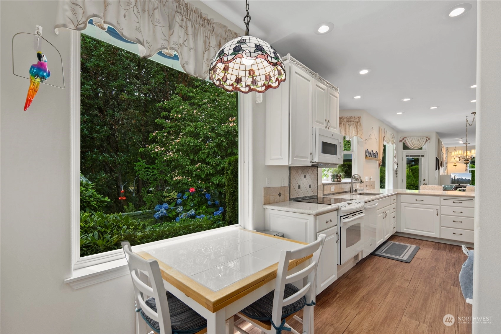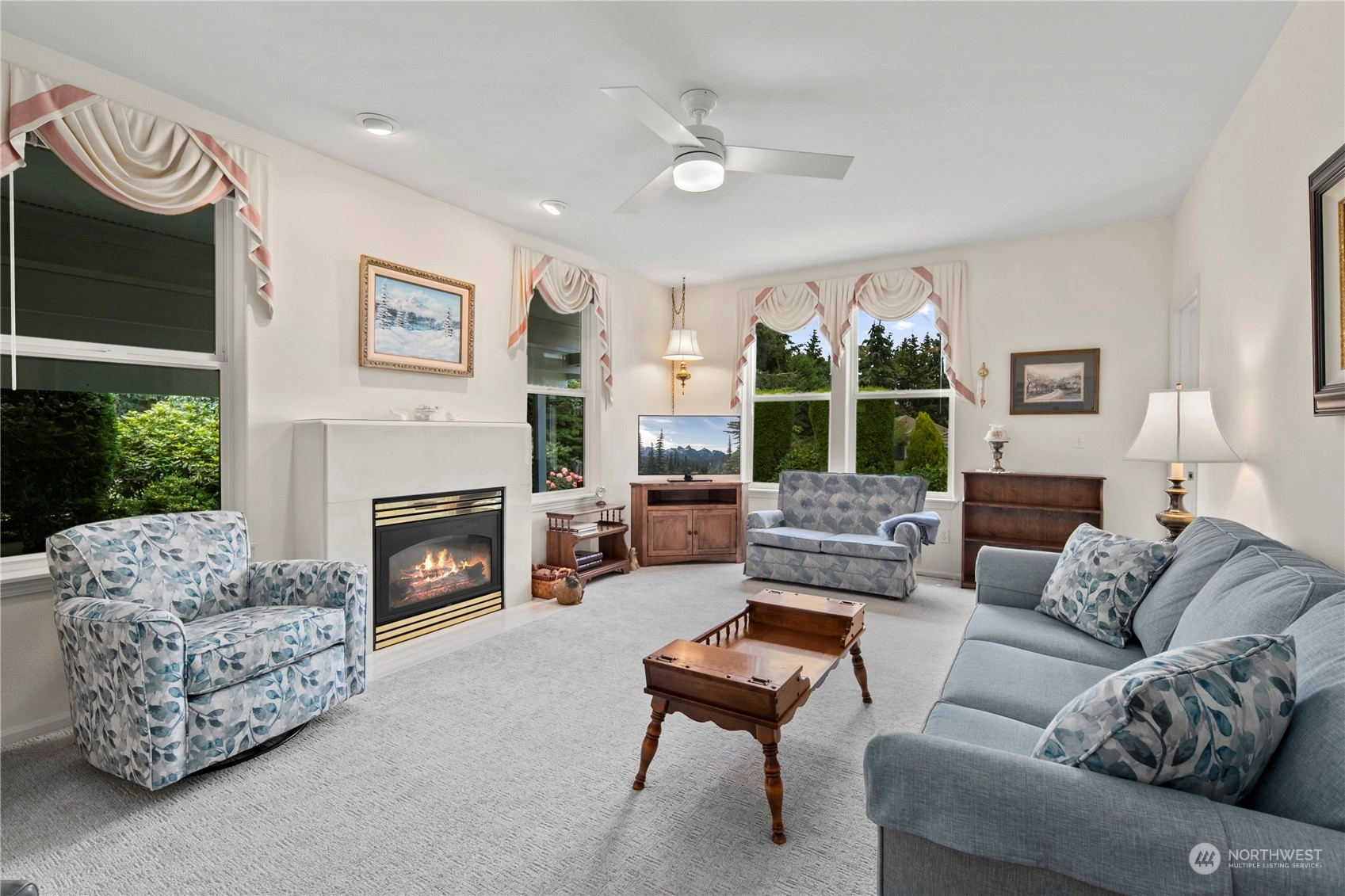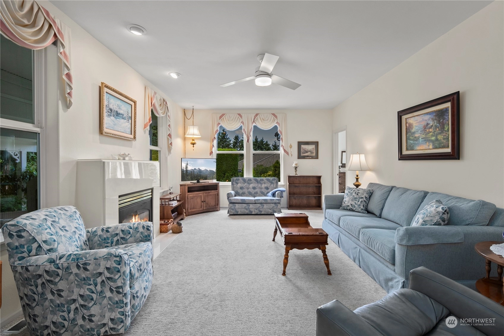 Welcome to this stunning 3-bed, 2-bath home in the desirable community of Goldmont. As you enter, you are greeted by a spacious living area that seamlessly flows into the dining room and kitchen, all bathed in natural light. The kitchen features sleek countertops, and ample storage space. Enjoy the tranquility and security of the Goldmont community, complete w/a 24-hour security gate. Step out to your own private oasis in the backyard, adorned w/ mature landscaping and two serene water features. The covered aggregate patio offers a secluded retreat, perfect for enjoying morning coffee or evening gatherings.Inside, the spare bedroom includes a convenient Murphy bed wall unit, maximizing space.