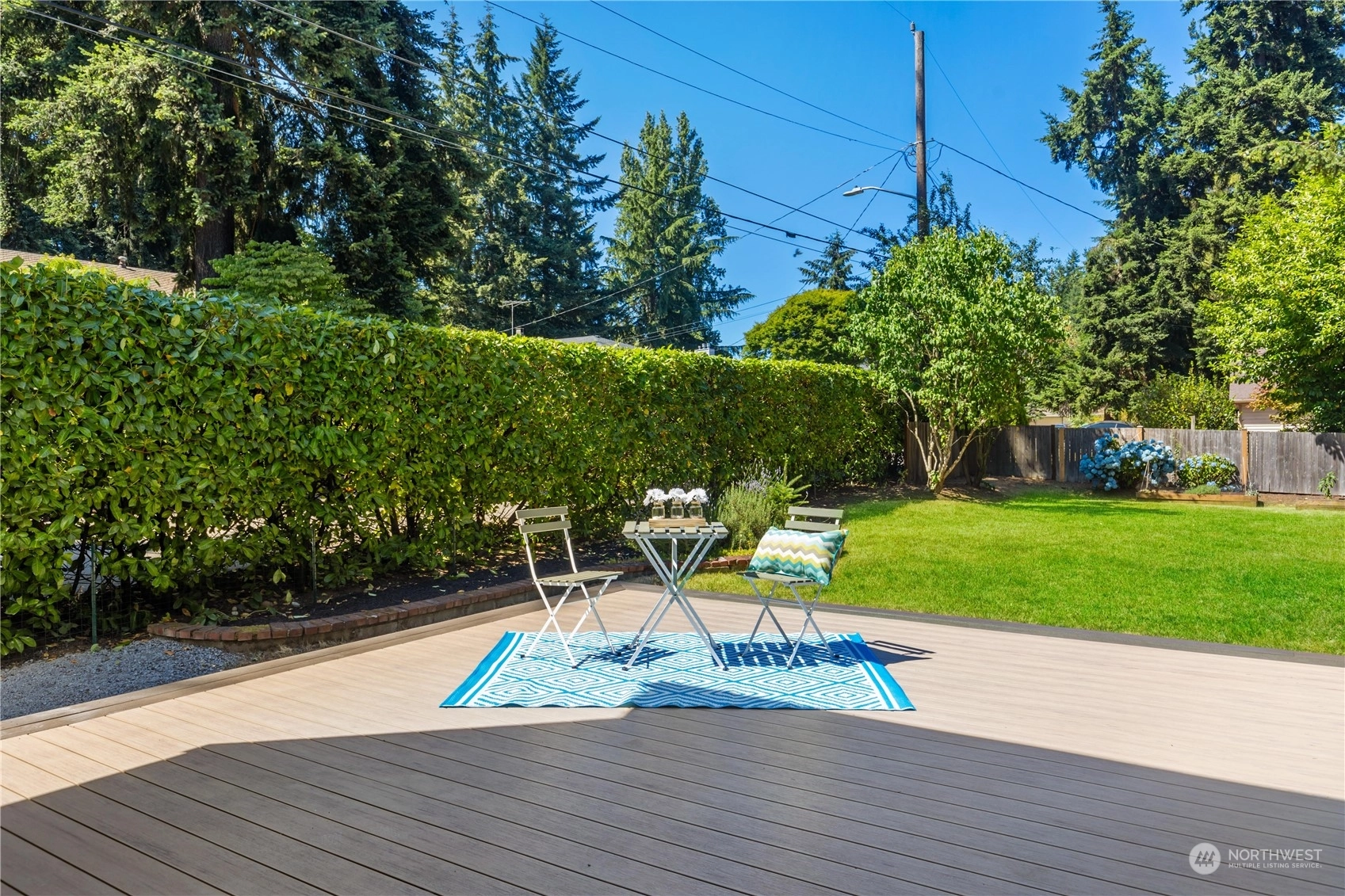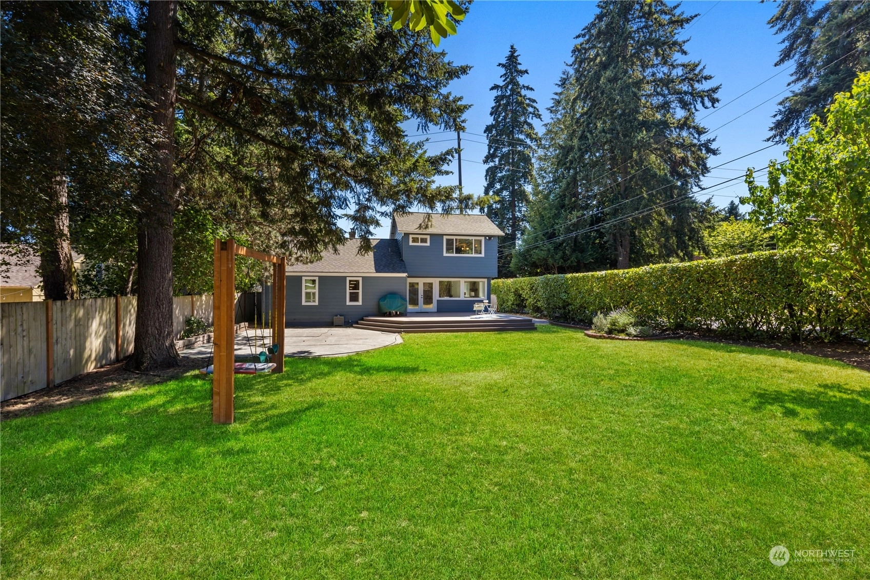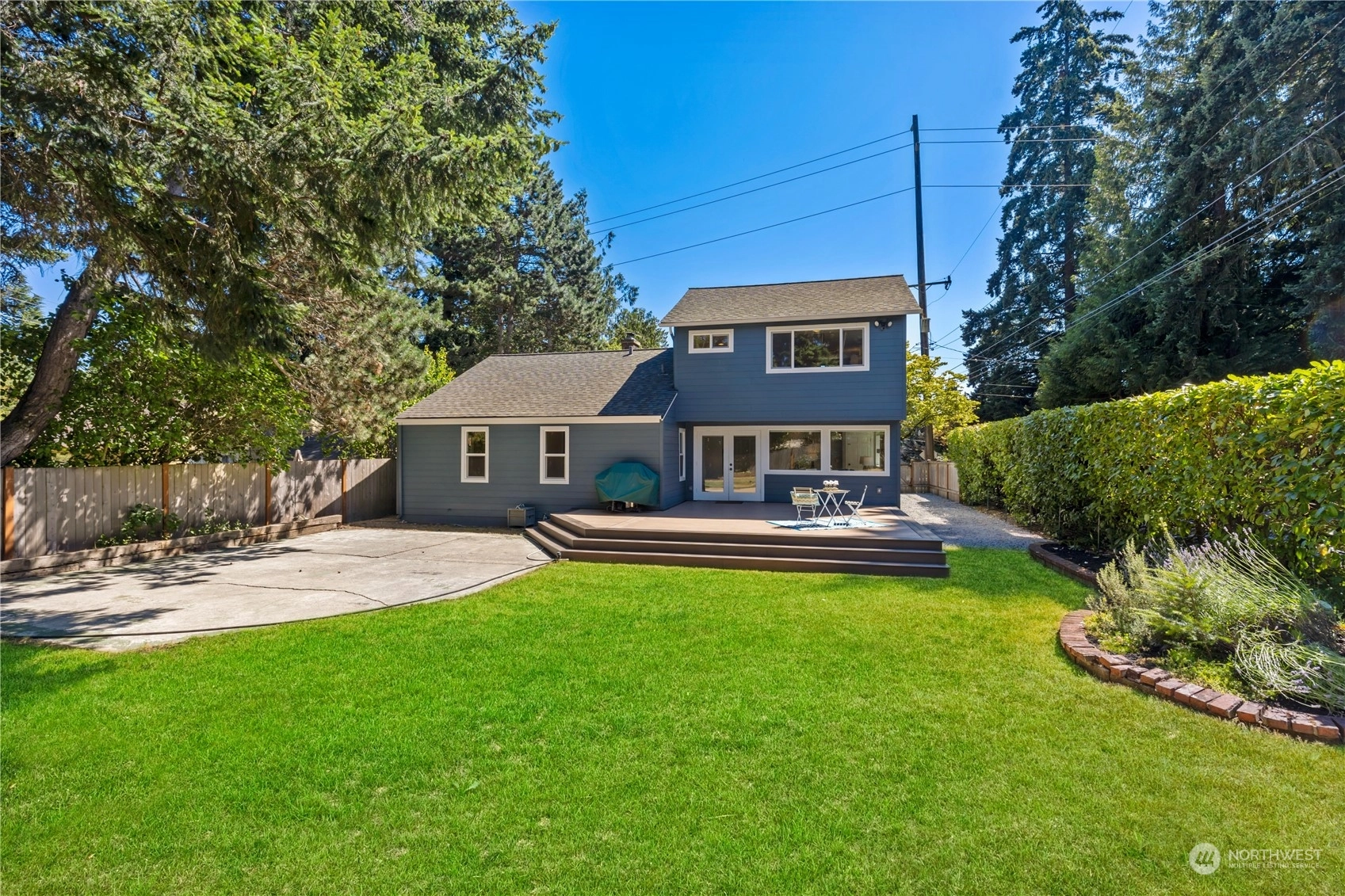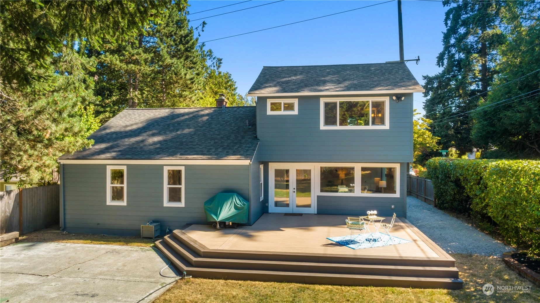 Welcome to this beautifully updated home nestled in the Haller Lake neighborhood. Warm hardwoods, brick fireplace, & custom built-ins greet you just inside the door. Continue through the kitchen w/ updated S/S appliances & pantry to the spacious living rm where natural light abounds. French doors lead to a large composite deck & expansive fully fenced backyard perfect for outdoor dining & relaxation. Escape upstairs to the primary suite with dual closets & tastefully remodeled bathroom. Flexible space upstairs for bed, den, or playroom + 2bd/1bth downstairs. 2 car garage with ample O/H storage. Steps to newly built school & Northacres park. 5min to shopping, dining and light rail in Northgate. Your ideal sanctuary for urban living awaits!