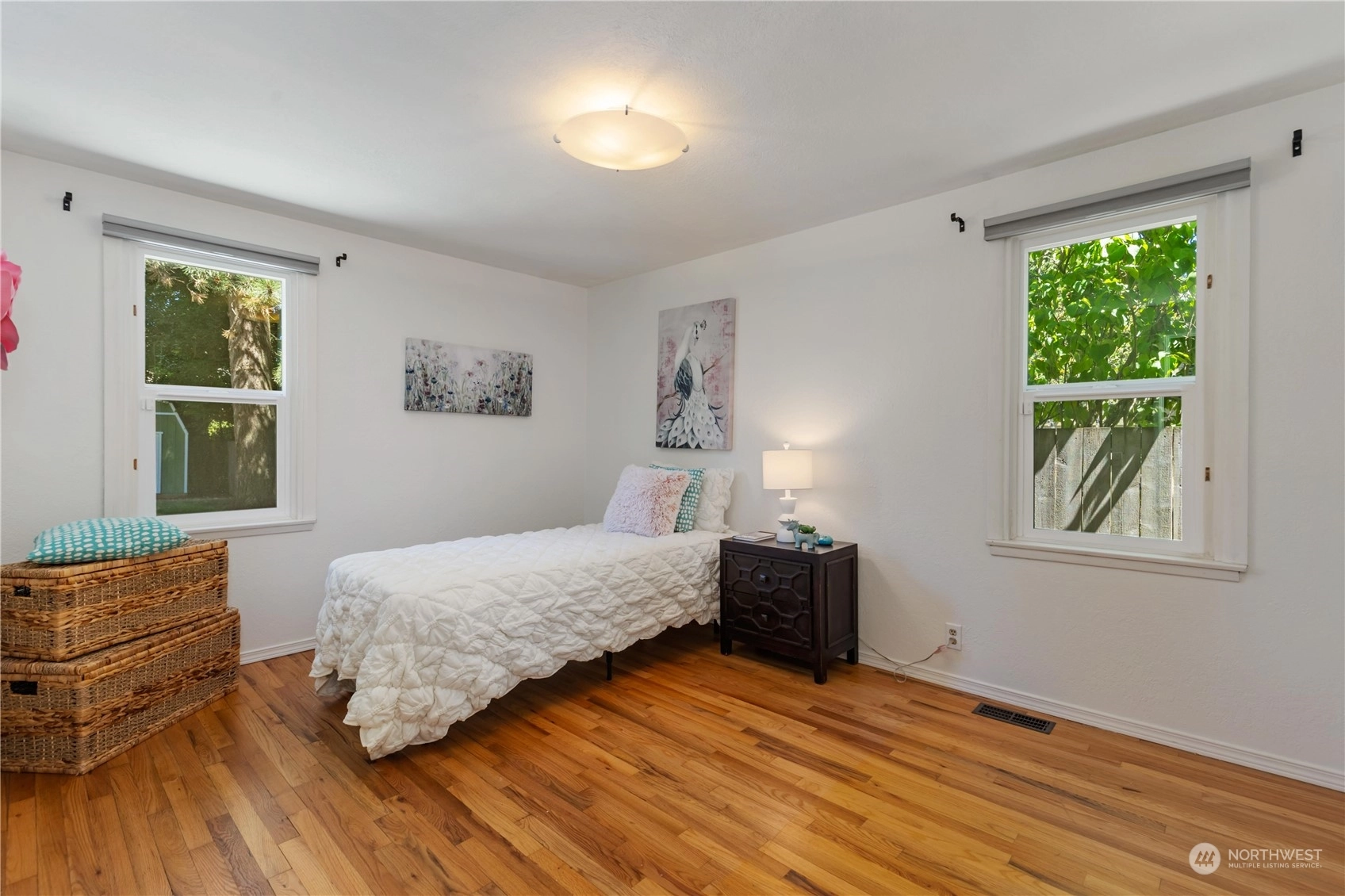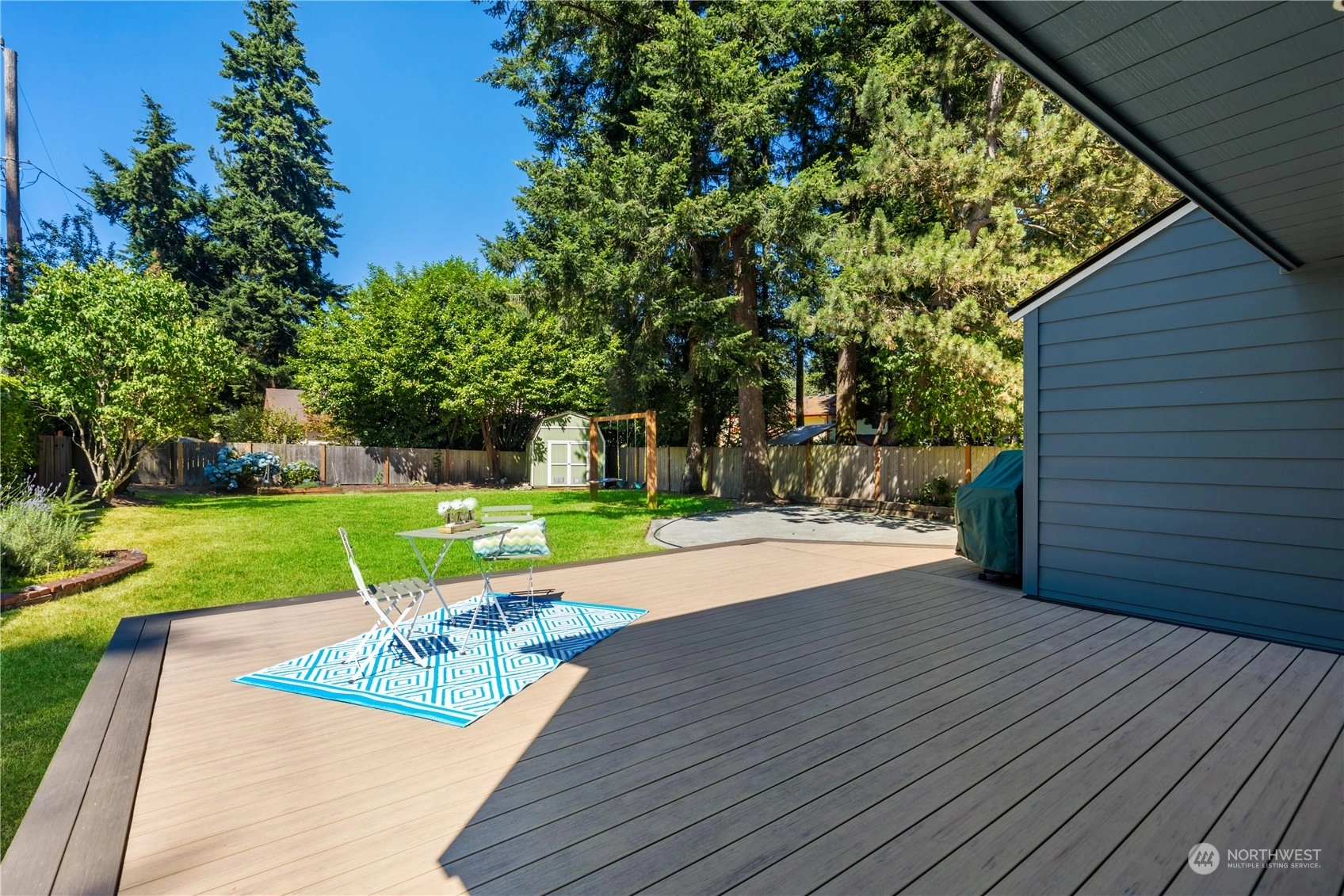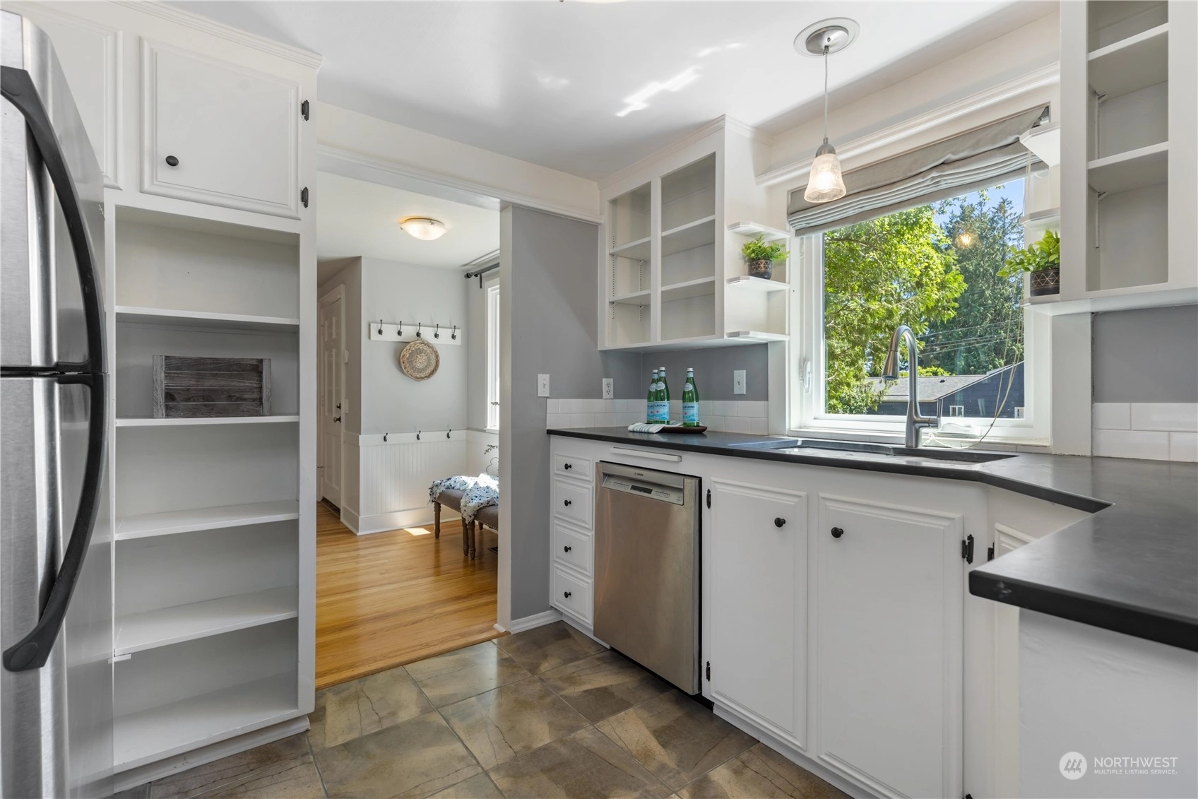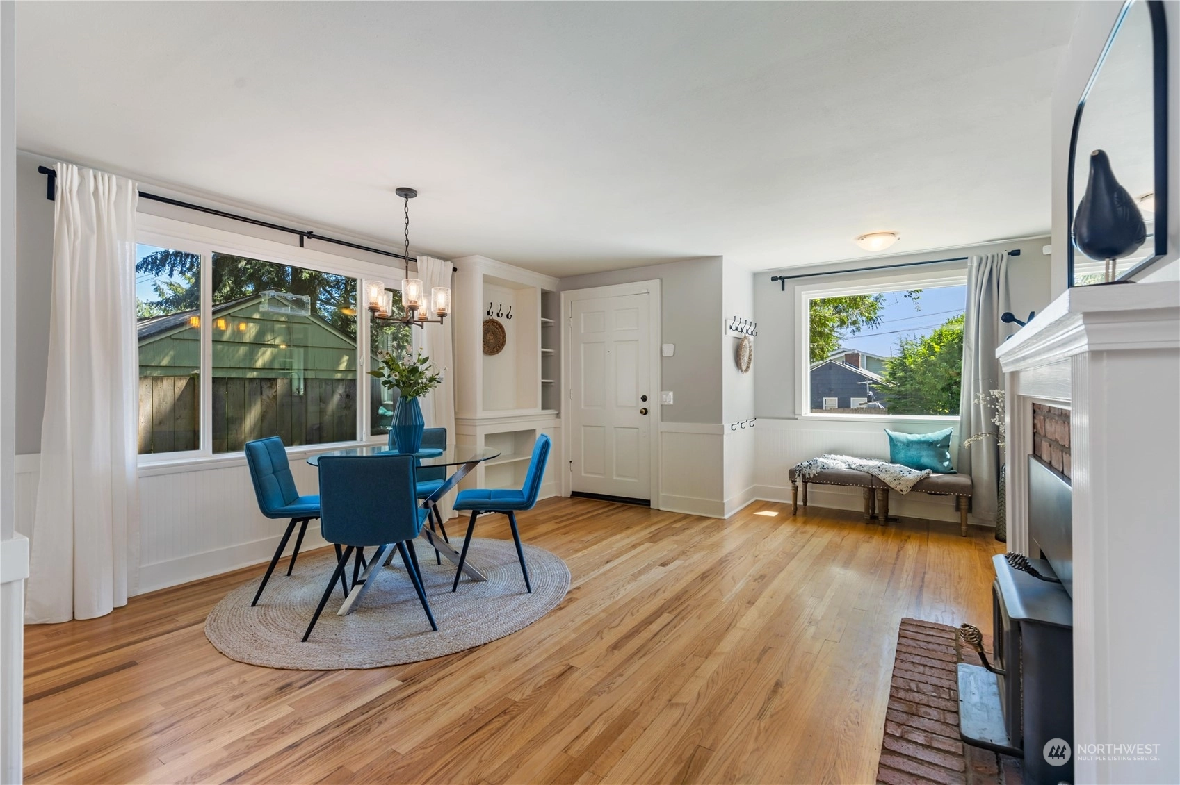 Welcome to this beautifully updated home nestled in the Haller Lake neighborhood. Warm hardwoods, brick fireplace, & custom built-ins greet you just inside the door. Continue through the kitchen w/ updated S/S appliances & pantry to the spacious living rm where natural light abounds. French doors lead to a large composite deck & expansive fully fenced backyard perfect for outdoor dining & relaxation. Escape upstairs to the primary suite with dual closets & tastefully remodeled bathroom. Flexible space upstairs for bed, den, or playroom + 2bd/1bth downstairs. 2 car garage with ample O/H storage. Steps to newly built school & Northacres park. 5min to shopping, dining and light rail in Northgate. Your ideal sanctuary for urban living awaits!