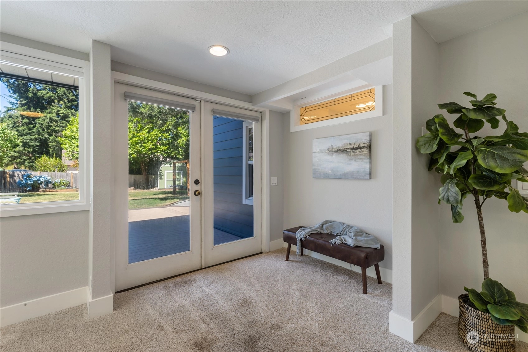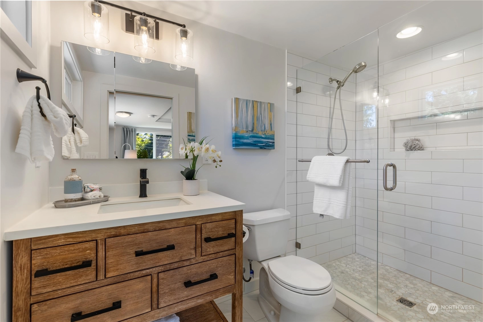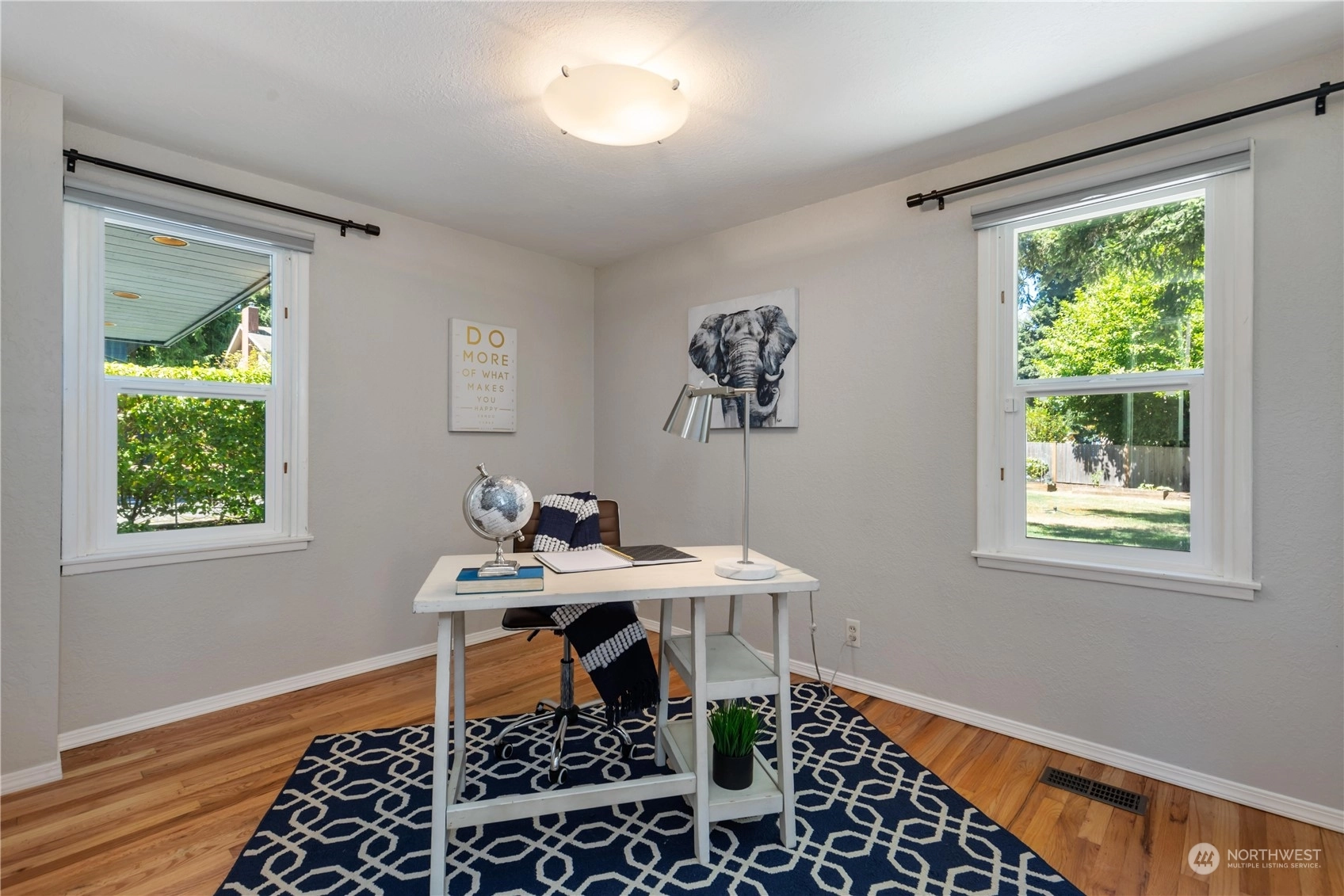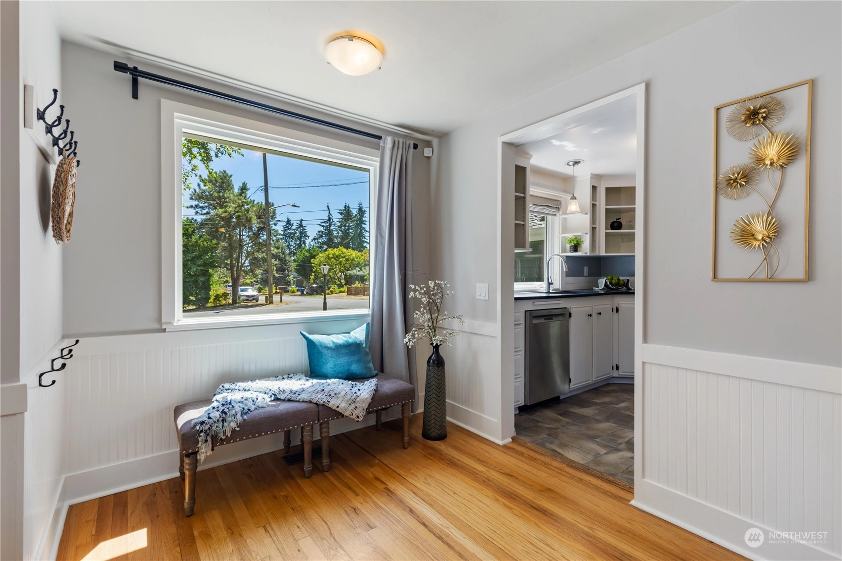 Welcome to this beautifully updated home nestled in the Haller Lake neighborhood. Warm hardwoods, brick fireplace, & custom built-ins greet you just inside the door. Continue through the kitchen w/ updated S/S appliances & pantry to the spacious living rm where natural light abounds. French doors lead to a large composite deck & expansive fully fenced backyard perfect for outdoor dining & relaxation. Escape upstairs to the primary suite with dual closets & tastefully remodeled bathroom. Flexible space upstairs for bed, den, or playroom + 2bd/1bth downstairs. 2 car garage with ample O/H storage. Steps to newly built school & Northacres park. 5min to shopping, dining and light rail in Northgate. Your ideal sanctuary for urban living awaits!