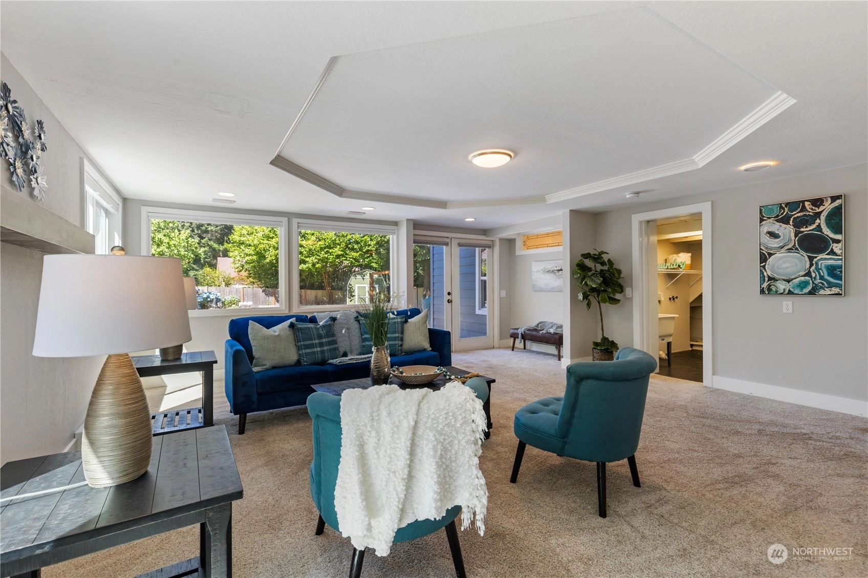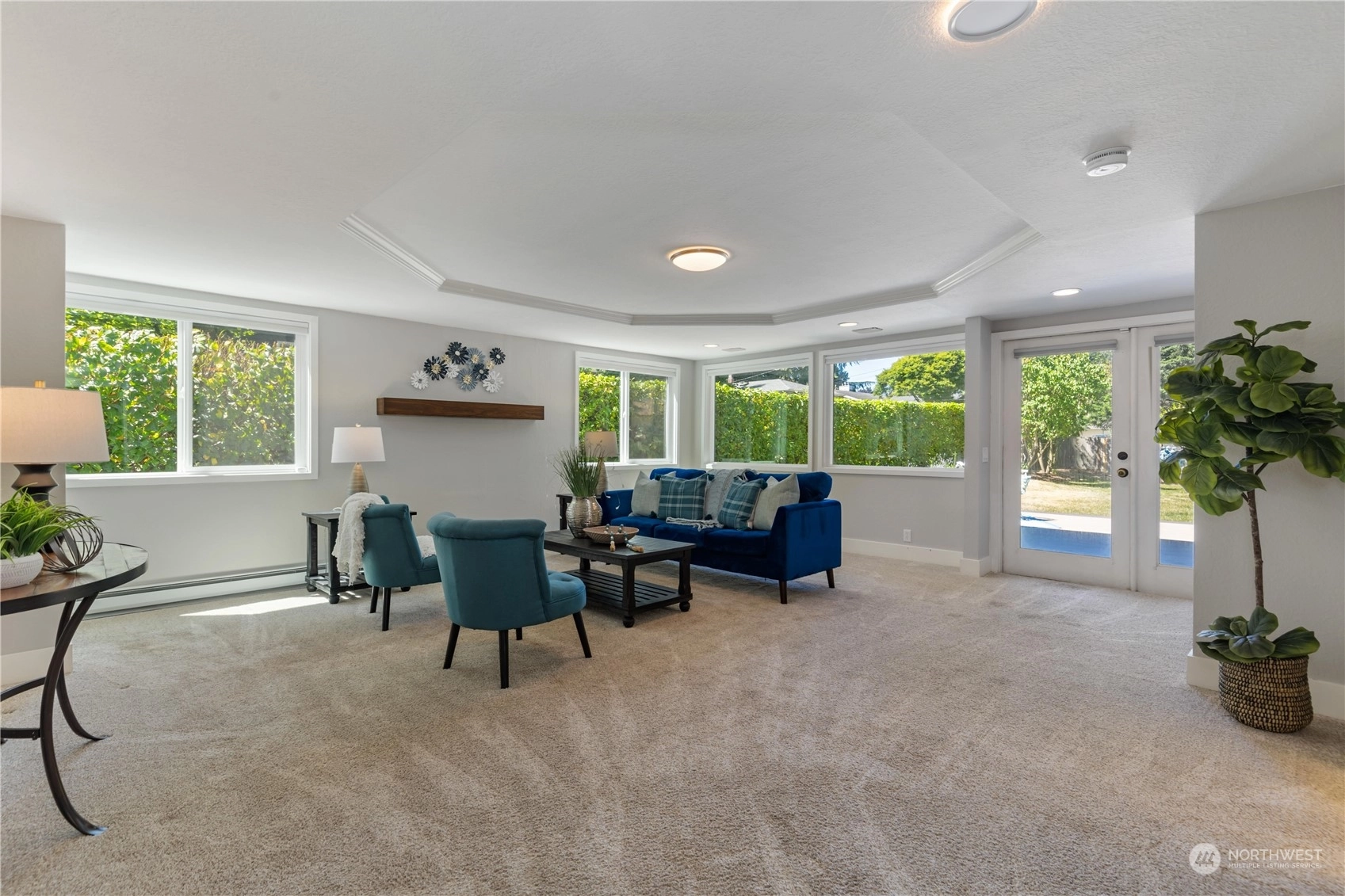Bath Off Primary Ceiling Fan(s) Ceramic Tile Double Pane/Storm Window Dining Room Fireplace French Doors Hardwood High Tech Cabling Security System Skylight(s) Wall to Wall Carpet Water Heater