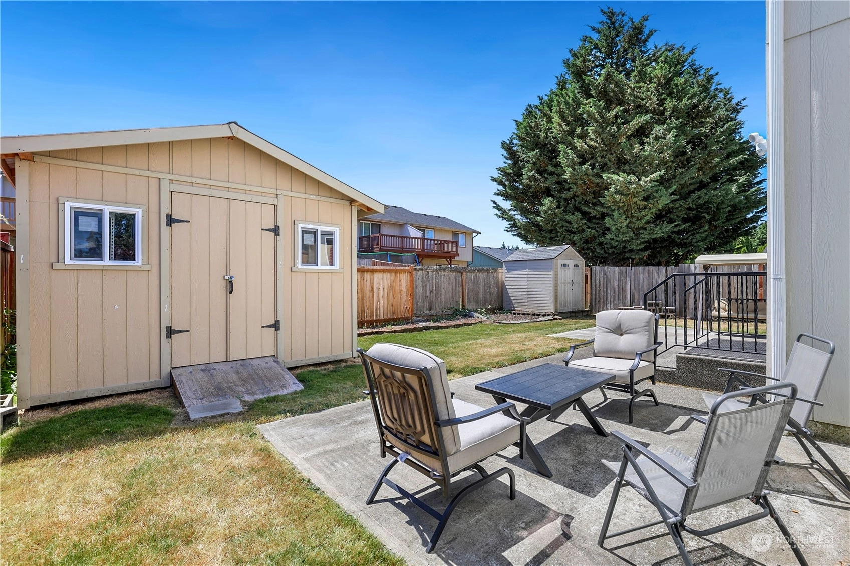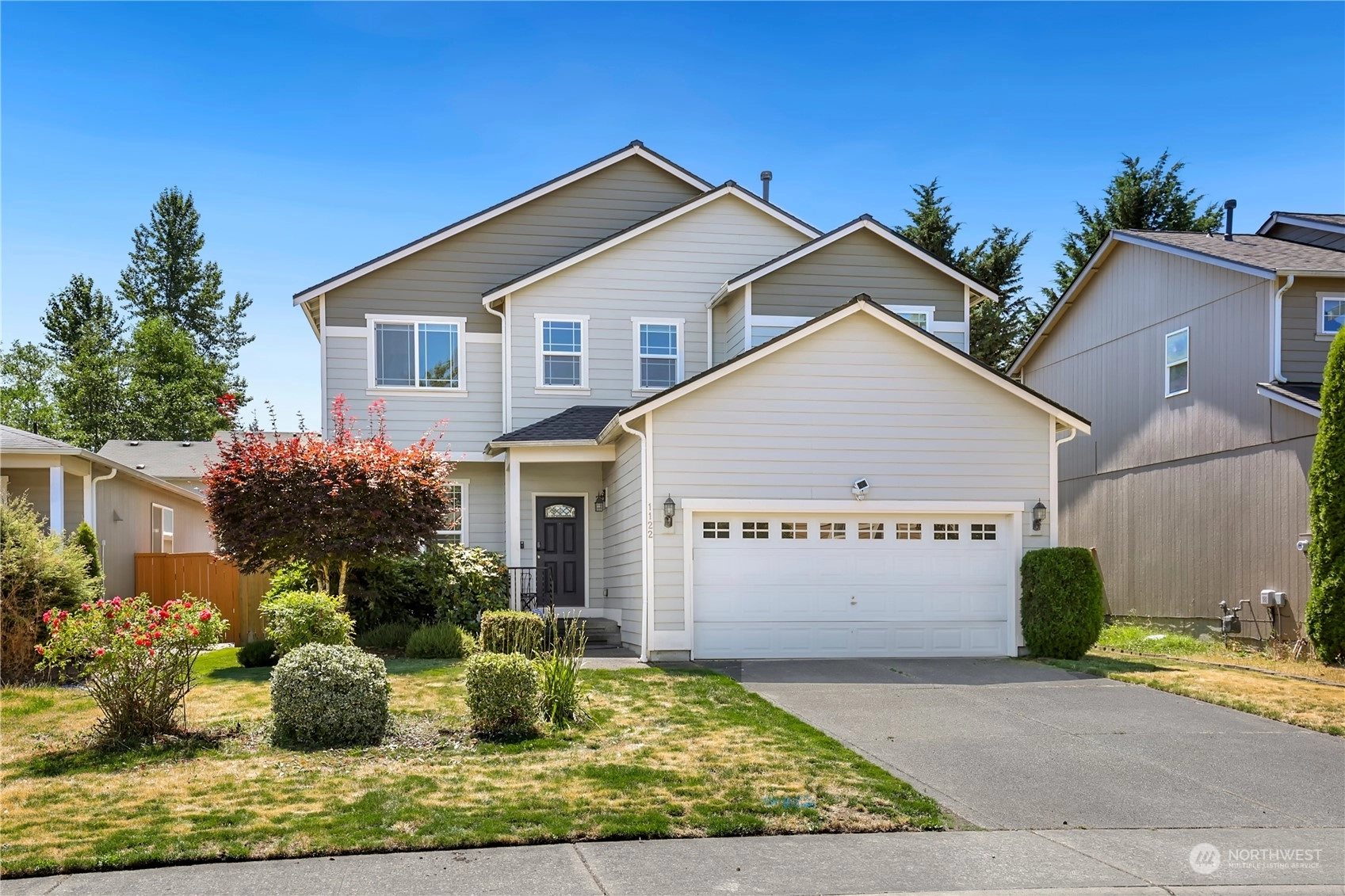 Discover serene living in this 3-bed, 2.5-bath home nestled in Spanaway's Blueberry Ridge community. The open kitchen seamlessly flows to the living room, complete with a cozy gas fireplace. The main floor also features a formal dining room and convenient half bath. Upstairs, a versatile bonus room accompanies three bedrooms and a full bath. The primary suite boasts vaulted ceilings, a 5-piece bath, and walk-in closet. Outside, enjoy a spacious yard with a patio and storage shed, plus an attached 2-car garage. Ideally located near JBLM, shopping, restaurants, and more!