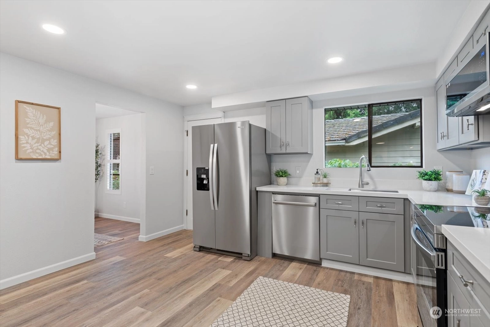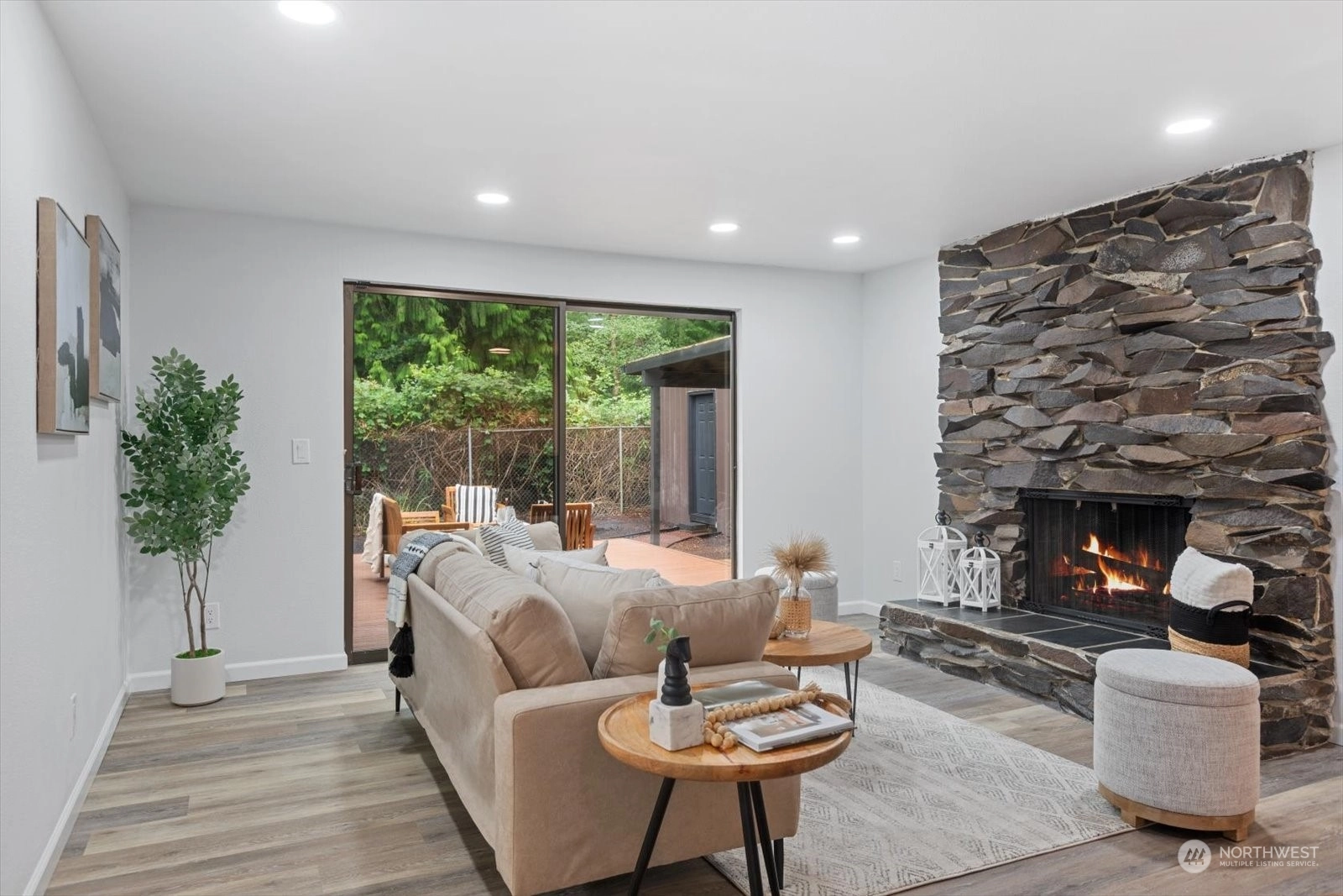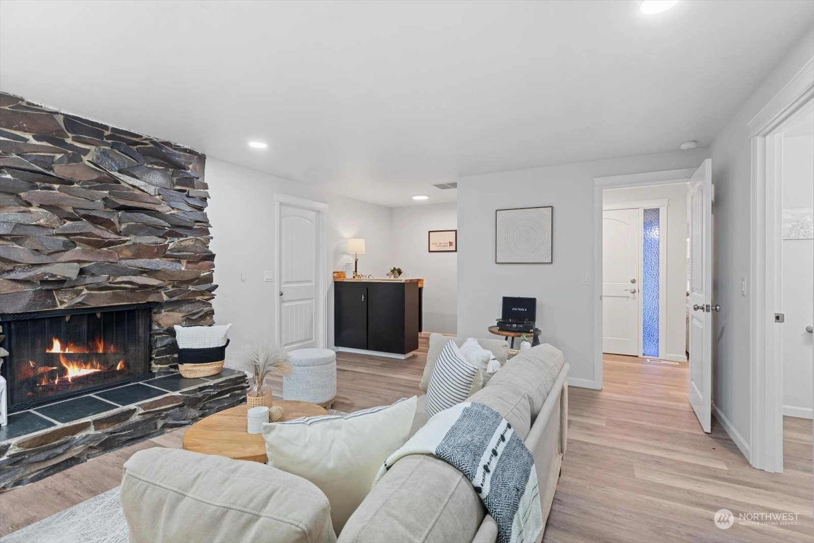 Welcome home to this beautifully remodeled rambler in the highly sought-after Valley View neighborhood! Step inside to discover new luxury vinyl plank flooring & new carpet throughout. Kitchen boasts new cabinets, quartz counters, a coffee bar, & new SS applcs. Family rm w/wet bar & amazing stone FP, slider to the deck & covered area perfect for gatherings or relaxation. All bathrooms have been completely updated with new cabinets, fixtures & quartz counters, & entire home is freshly painted inside and out. The backyard features raised garden beds, a storage shed, & out front a tranquil pond surrounded by mature landscaping. This home is ready for you to move in & start making memories. Close to shopping, restaurants & easy I-5 access!