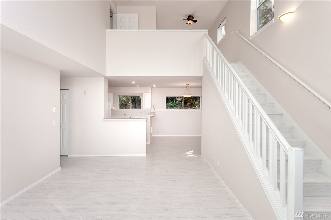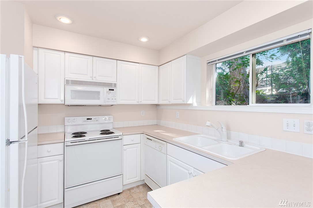 Find this move-in ready Sunset Ridge townhouse in the perfect location! Floor to ceiling windows flood the open concept main floor w/natural light. Enjoy newer, contemporary flooring, a cozy fire place & loft space perfect for work or play. Spacious bedroom on main floor & sunny master suite upstairs offers added privacy. Convenient location, backing to Bellevue College, 2 blocks to I-90 park & ride & minutes to downtown Seattle/Bellevue. 2 car attached garage w/storage space + no rental cap!