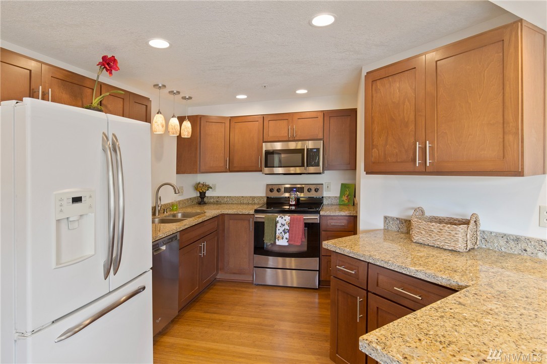 This Ambaum Manor condominium has a well thought out floor plan that makes it feel bigger than the square footage would suggest. Thoughtfully updated throughout. The kitchen features beautiful newer cherry cabinets and granite countertops. Beautiful Bamboo floors in living areas. Additional storage off deck. 1 reserved carport space and several add'l unreserved spots. Easy access to SeaTac, I-5, Burien, Normandy Park, shopping and dining, Southcenter, waterfront recreation, and area parks.