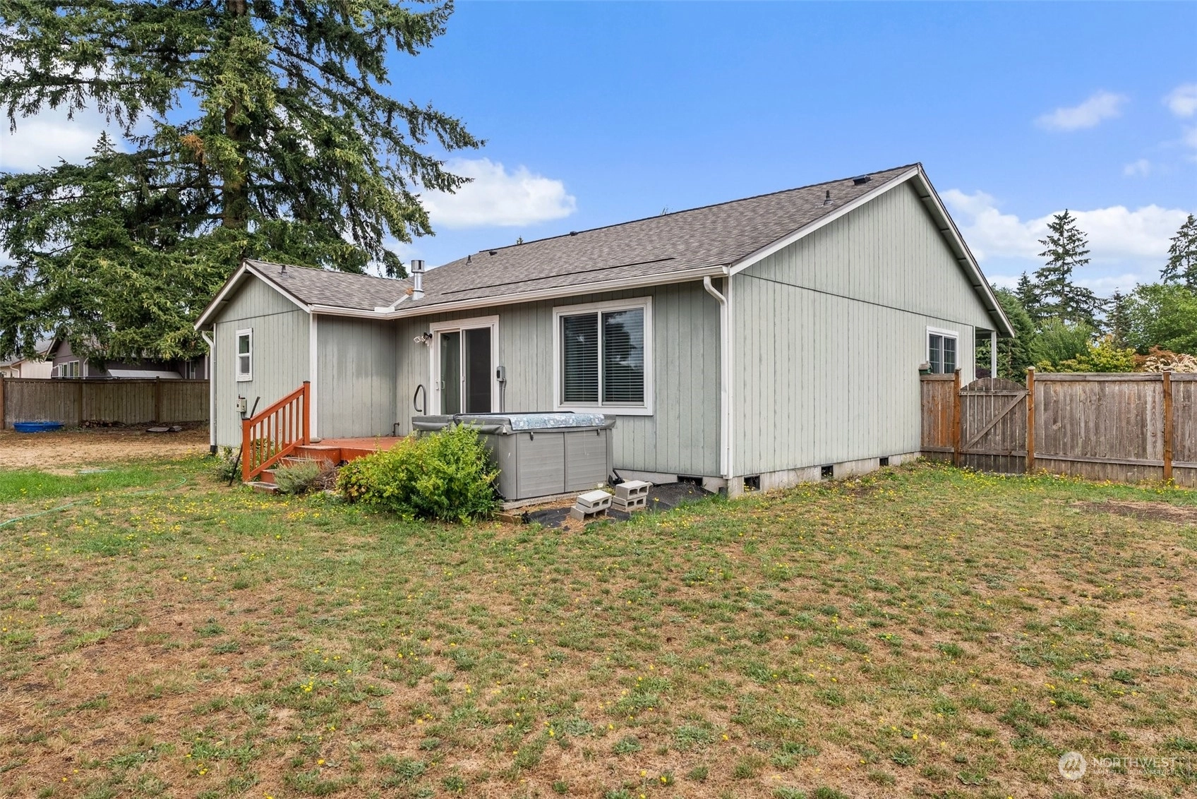 Welcome to your dream home! Located just minutes to I-5, this 1,480SF rambler, nestled on a 1.16, totally level, acre lot, is ready for new owners. Too many updates to list them all, here are a few. New roof (2022) New kitchen appliances (2022), New furnace, heat pump (A/C) and water heater (2023) Hot tub (2021), Windows (2021). Gutter guard, deck, and Culligan water filtration system are included. Walk-in tub w/ lifetime warranty. Home has been meticulously maintained. Mature landscaping, with tons of room for a garden. There is tons of storage for your outdoor toys or projects, 2-car garage with a painted and sealed floor with lots of storage. No HOA and all appliances stay. Located on a dead-end road. This is a perfect spot to call Home!