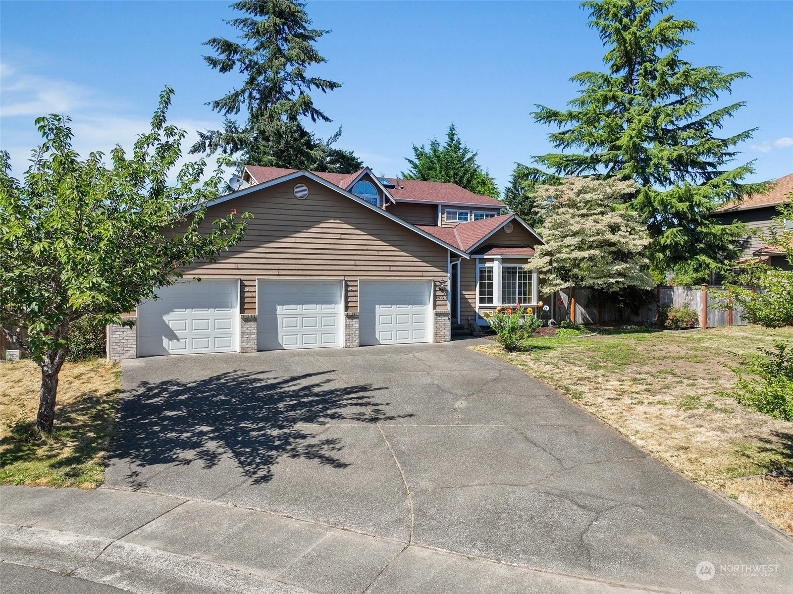 The open-concept design features a gorgeous kitchen with stainless steel appliances, a pantry, and a rustic wood breakfast bar. Enjoy multiple living spaces, including family, dining, and formal living rooms. This home boasts 4 spacious bedrooms, with a primary suite offering a walk-in closet and 5-piece bath. Step outside to the inviting covered back porch. The huge 3-car garage provides ample storage. Fully fenced with shed. Situated in a cul-de-sac. Located in prime Puyallup with access to coveted schools & close to all South Hill amenities. Pre-Inspected. VA assumable loan @ 2.75% is available.