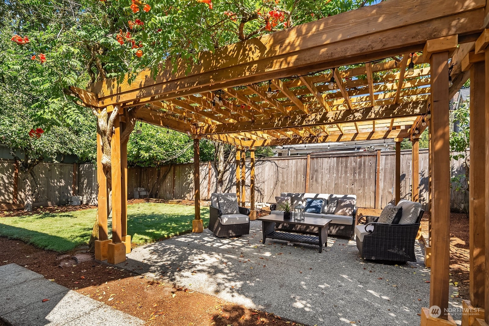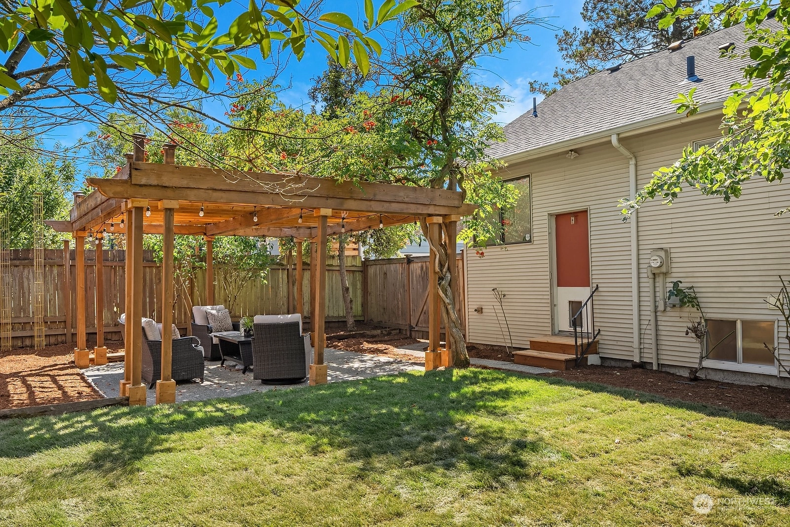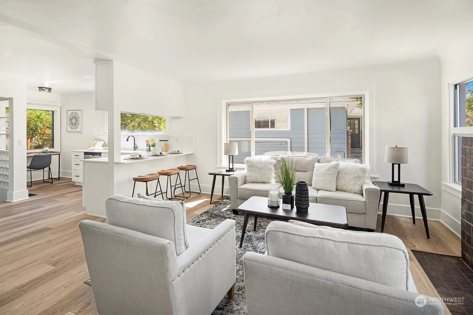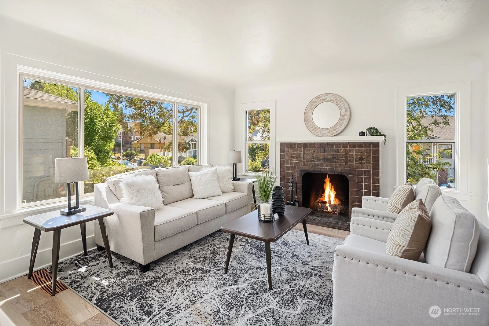 Charming, move-in-ready home with updates in Seattle's prime Central District! This gem blends old Seattle character with a brand-new kitchen featuring white cabinetry, stainless steel appliances, and a nook overlooking a large, inviting backyard. Cozy up by the wood fireplace in the living area with new flooring throughout. Fresh interior paint completes the look! The spacious upper level includes 2 bedrooms and a full bath. The lower level offers a guest suite with a bedroom, adjacent 3/4 bath, additional living space, and ample storage. Entertain in the level, fully fenced backyard with a pergola, perfect for summer gatherings. Convenient access to I-5/I-90, downtown Seattle, and Capitol Hill shops and restaurants!
