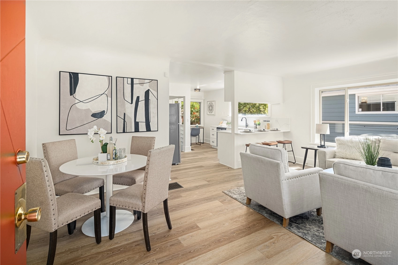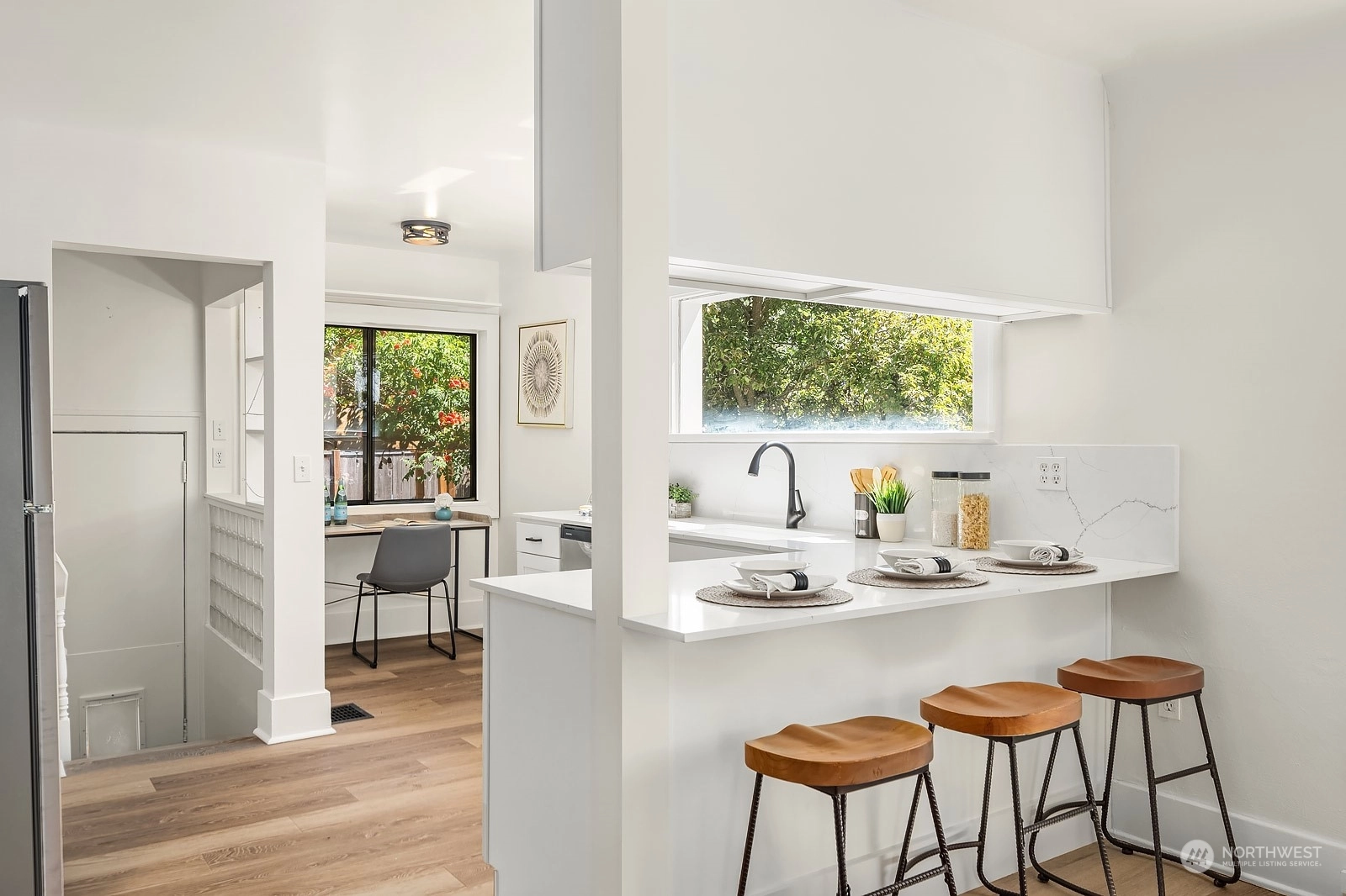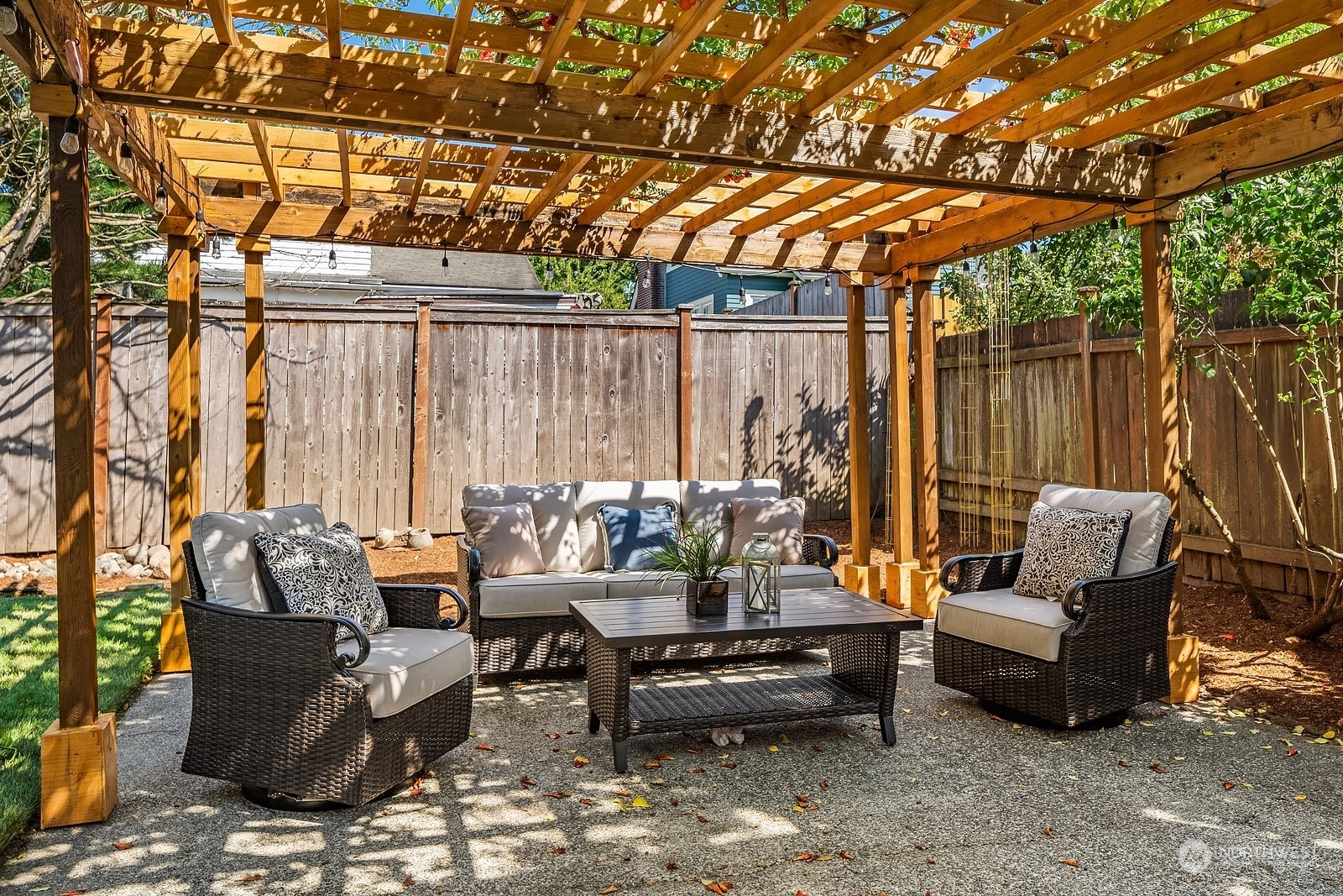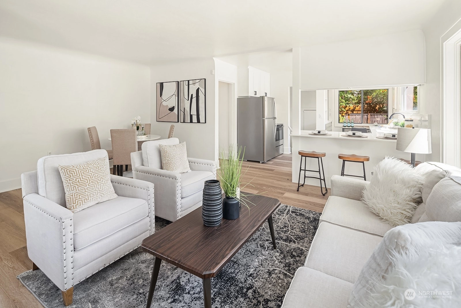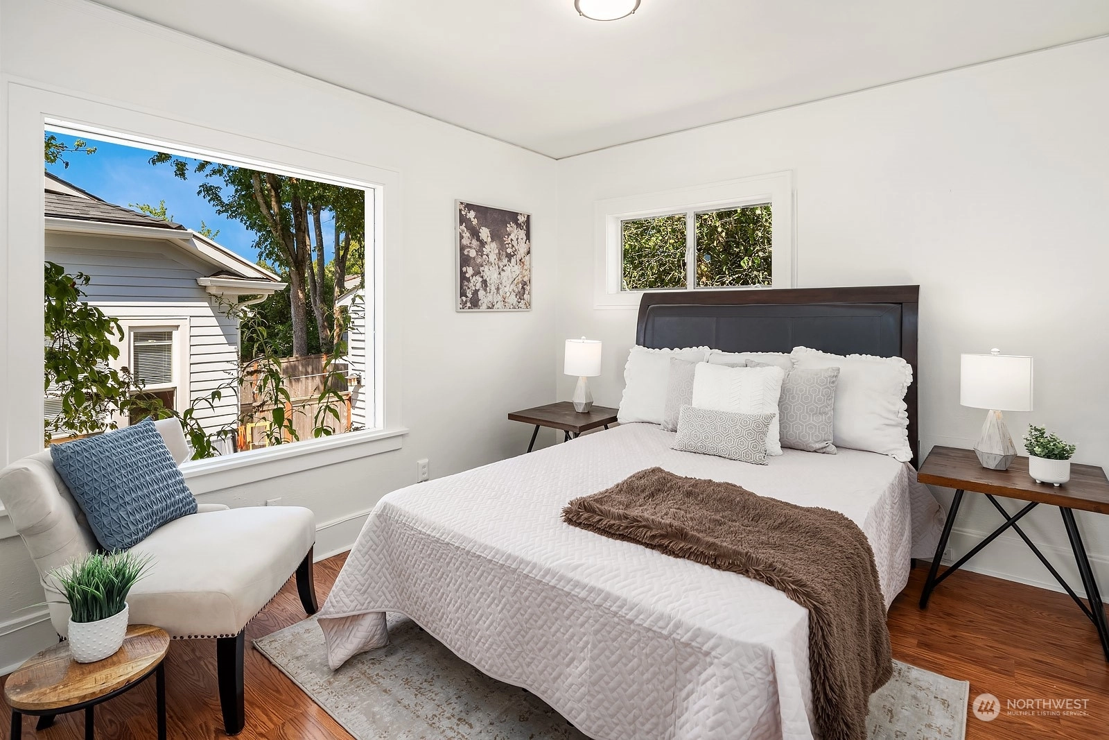 Charming, move-in-ready home with updates in Seattle's prime Central District! This gem blends old Seattle character with a brand-new kitchen featuring white cabinetry, stainless steel appliances, and a nook overlooking a large, inviting backyard. Cozy up by the wood fireplace in the living area with new flooring throughout. Fresh interior paint completes the look! The spacious upper level includes 2 bedrooms and a full bath. The lower level offers a guest suite with a bedroom, adjacent 3/4 bath, additional living space, and ample storage. Entertain in the level, fully fenced backyard with a pergola, perfect for summer gatherings. Convenient access to I-5/I-90, downtown Seattle, and Capitol Hill shops and restaurants!
