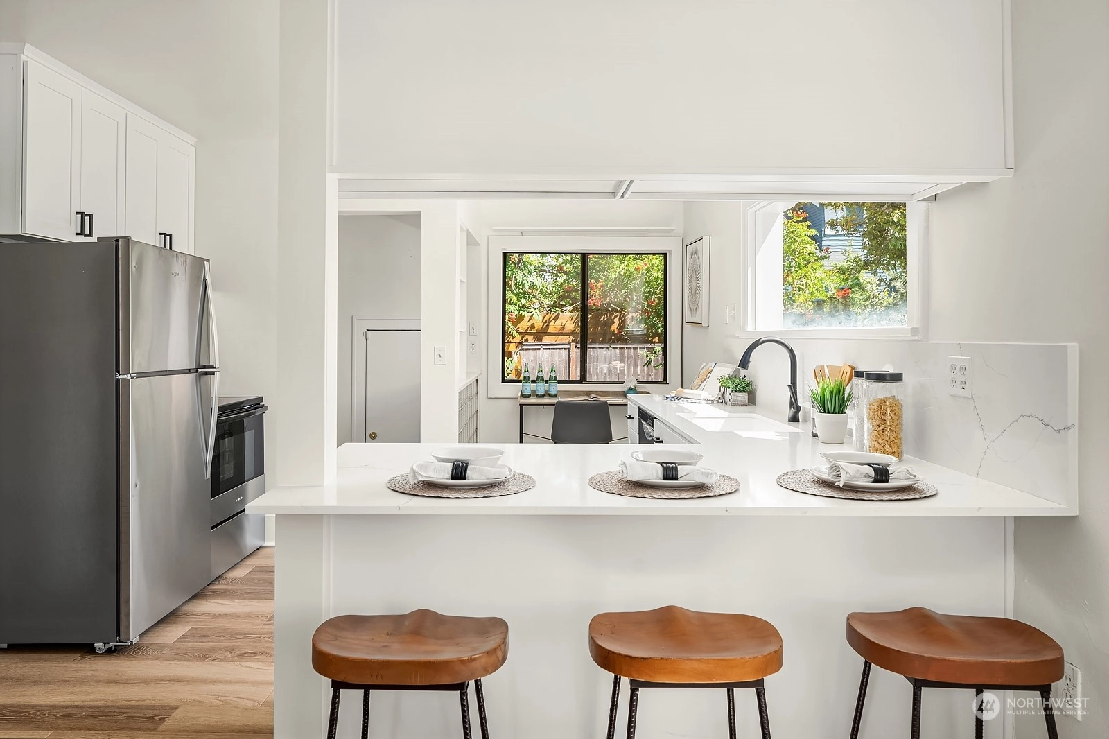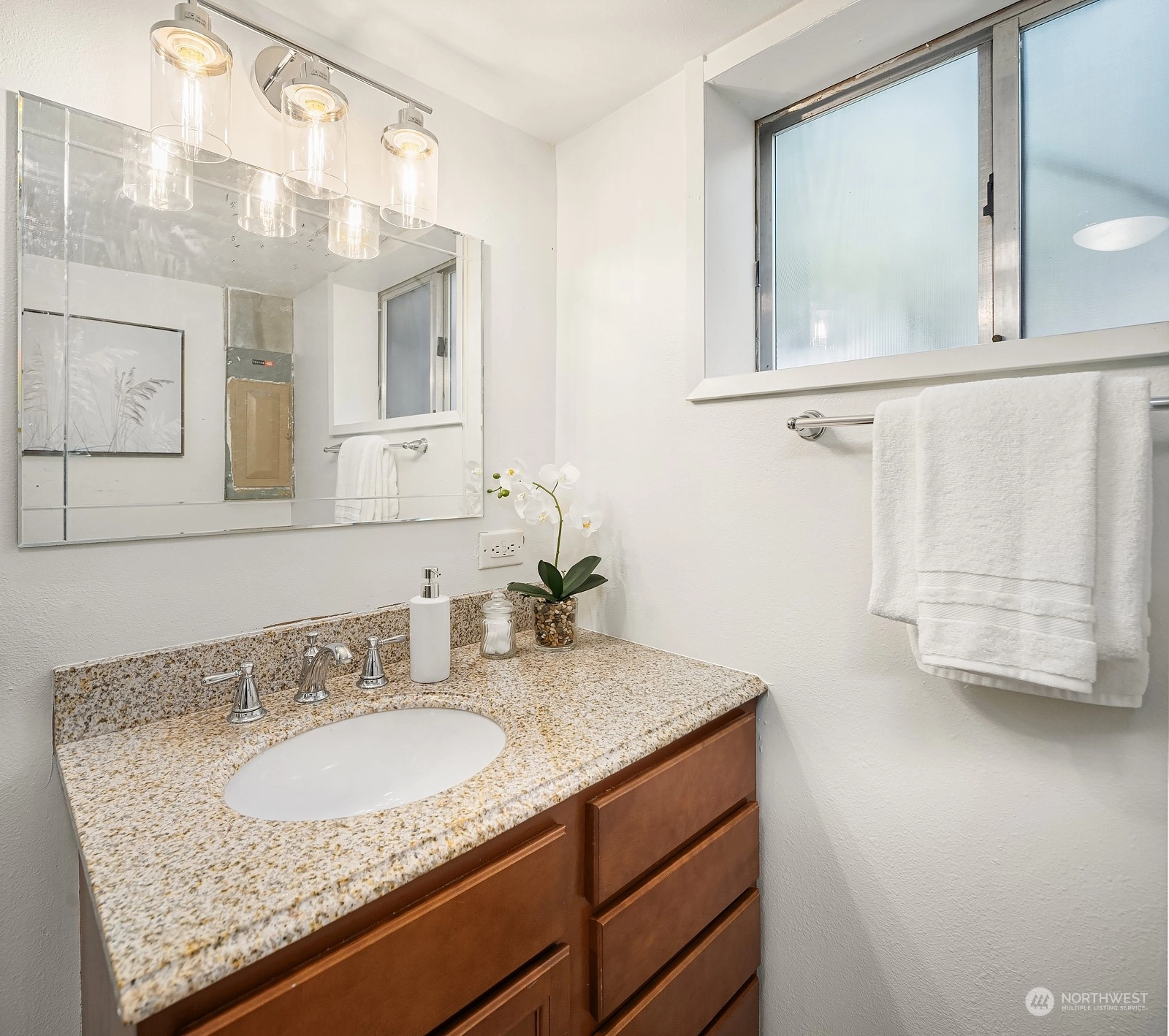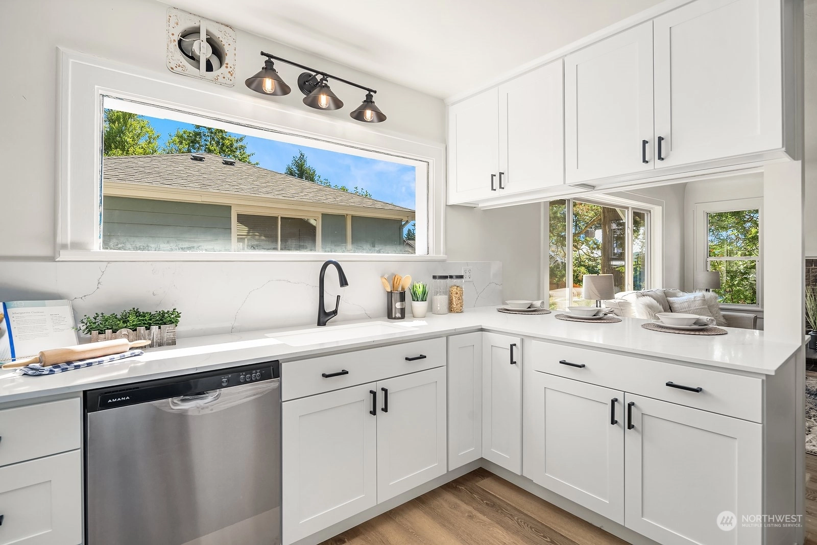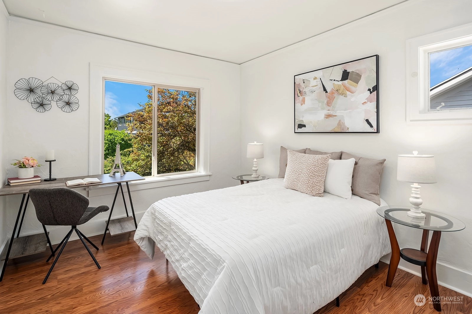 Charming, move-in-ready home with updates in Seattle's prime Central District! This gem blends old Seattle character with a brand-new kitchen featuring white cabinetry, stainless steel appliances, and a nook overlooking a large, inviting backyard. Cozy up by the wood fireplace in the living area with new flooring throughout. Fresh interior paint completes the look! The spacious upper level includes 2 bedrooms and a full bath. The lower level offers a guest suite with a bedroom, adjacent 3/4 bath, additional living space, and ample storage. Entertain in the level, fully fenced backyard with a pergola, perfect for summer gatherings. Convenient access to I-5/I-90, downtown Seattle, and Capitol Hill shops and restaurants!