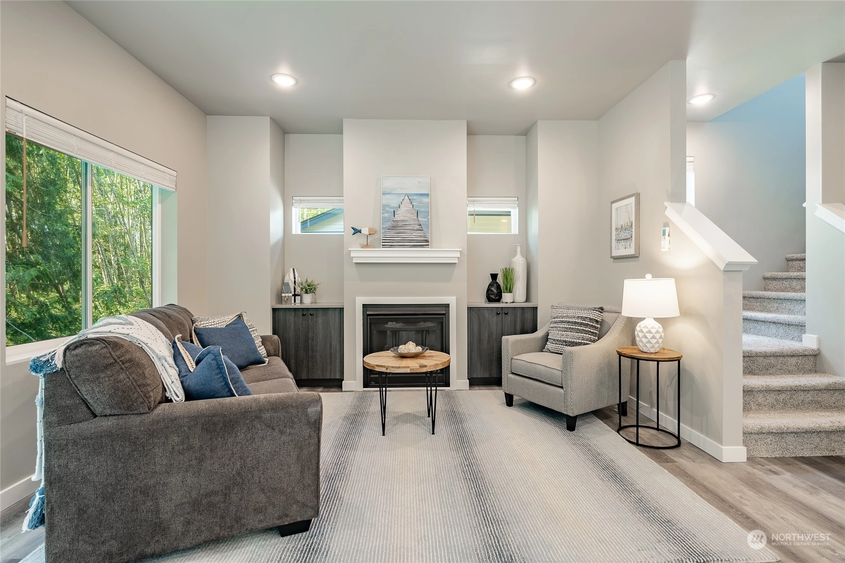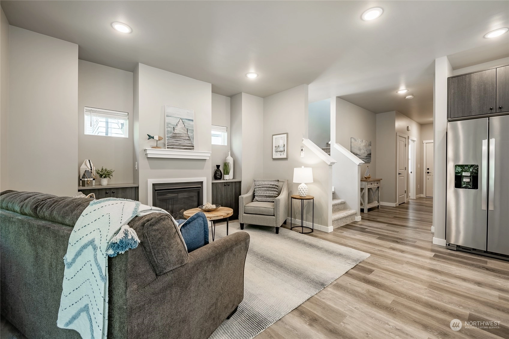 Experience a vibrant lifestyle at The Ridge in Blaine. This meticulously crafted corner lot home is full of high-end finishes. Enjoy LVP flooring, quartz countertops, and soft-close cabinets. The kitchen shines with brushed black fixtures, stainless steel appliances, and a spacious walk-in pantry. The primary bath offers a serene escape with a floor-to-ceiling tile shower and a walk-in closet. Stay comfortable year-round with a mini-split heating and A/C system, and a cozy gas fireplace enhanced by built-in cabinets. This home perfectly blends modern touches with everyday convenience, creating an inviting and luxurious living space. *$5,000 Buyer Credit is available with our preferred lender, Becky Farrar at Evergreen Home Loans.*