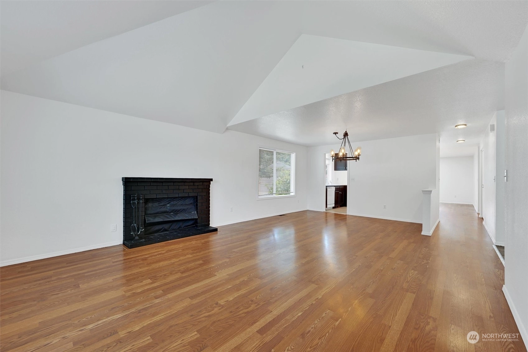 This inviting three-bedroom, 1.75-bath rambler features an open-concept design where the family room seamlessly connects to the kitchen, creating an ideal space for gatherings. The living room boasts high ceilings and a wood-burning brick fireplace, offering warmth and character. Additional highlights include a dining area and a well-appointed kitchen with generous storage and counter space. The primary suite is equipped with a ¾ bath and a walk-in closet. Fresh interior paint enhances the home’s appeal. Ideally located near shopping, golf courses, parks, and dining options.