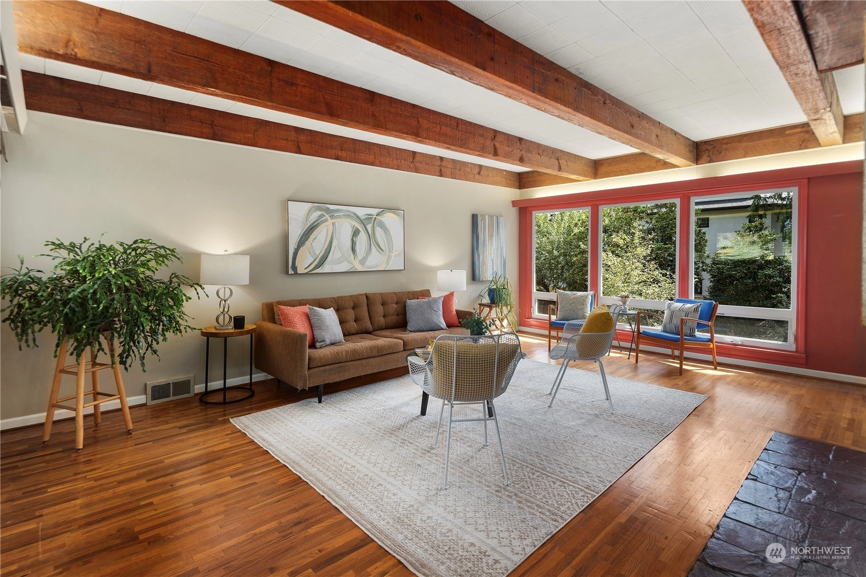 Discover one of the last large, flat parcels near downtown Bellevue on a quiet residential street, within walking distance to all amenities. This first-time on-market, single-owner property is perfect for remodeling, investment, or rental opportunities. Envision your dream home on this expansive 10,000+ sq ft lot. Features include newer double-paned windows, mature Northwest native plants and rhododendrons, oak floors, an updated kitchen with a Viking stove, large wooden beams, and more. The partly finished downstairs with a separate entrance adds extra potential. Pre-inspected and ready for your best offer!