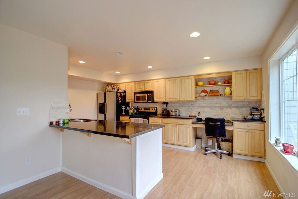 Well maintained, upgraded Townhome in Lake Stevens. 3 bedroom , 2 1/2 bathrooms. Master bedroom is 450 square feet with vaulted ceilings, huge walk in closet and bath. Additional bedrooms are large also and laundry upstairs. Gas fireplace in LR with stone surround. Huge kitchen with corian countertops and tile backsplash, built in desk and stainless appliances which all stay! Laminate flooring through kitchen and dining room. Fenced private backyard and Expansive deck. Washer & Dryer go w/ hm!