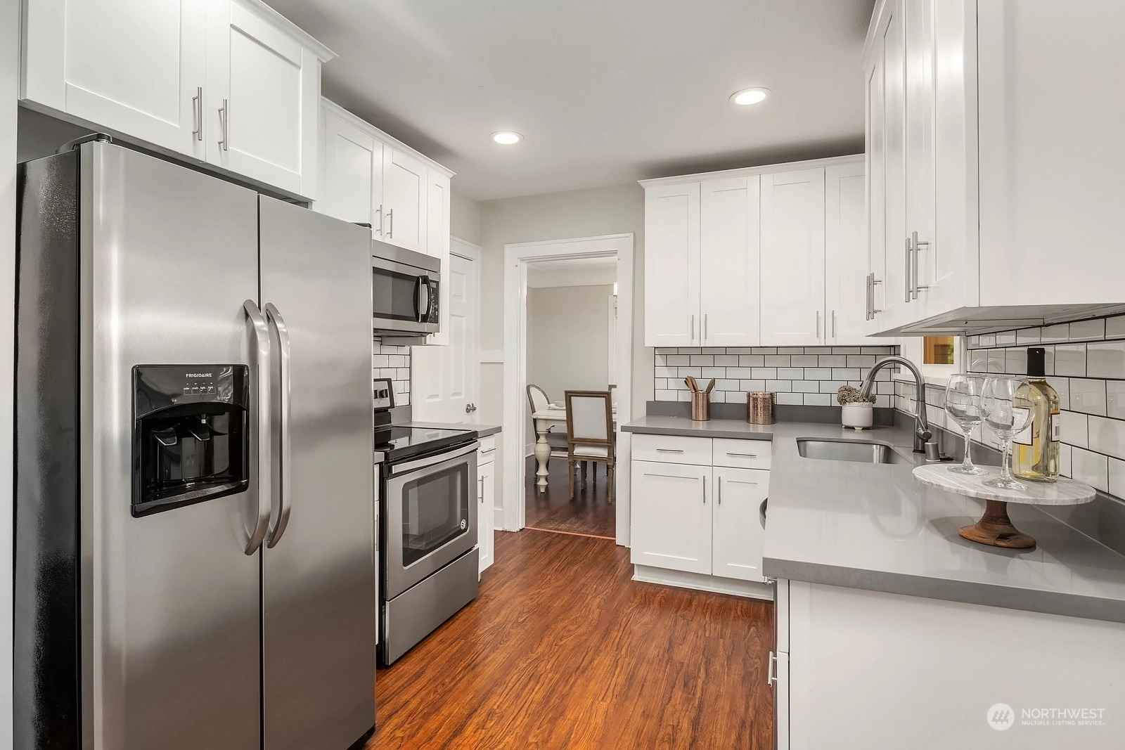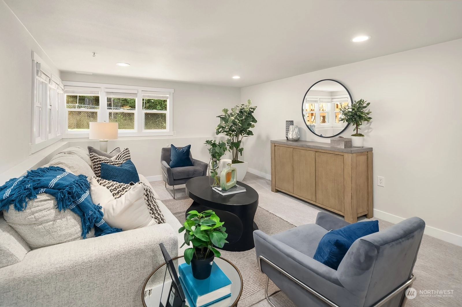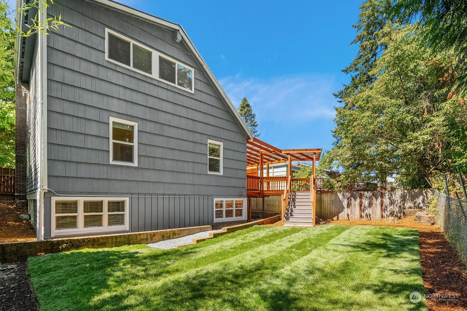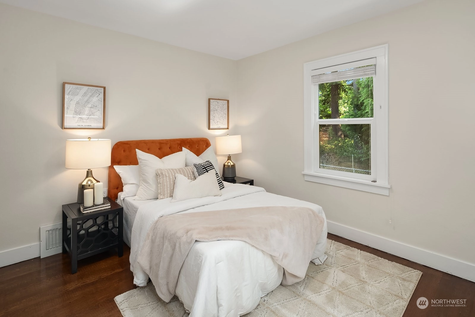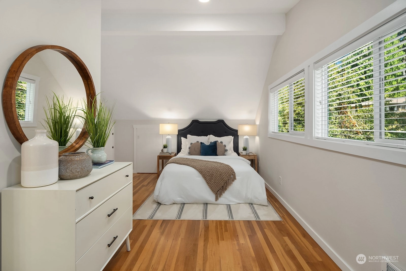 Beautifully preserved yet completely upgraded home, where classic meets convenience. Original hardwood floors add timeless elegance to each light filled room. Seamlessly blending vintage appeal with modern upgrades, enjoy comfort and functionality in this 7 bedroom home spread out on 2700 SF of living space. The main floor offers formal dining & living rooms, 2 beds, a full bath, and kitchen with eating nook. Upstairs, find the Primary with en suite bath and 2 more bedrooms. The basement offers a huge recreational / great room, 2 bedrooms, laundry room, utility room, and so much storage and flex space. Huge, covered deck for year round dining al fresco and a large, flat backyard. Easy access to the light rail, Northgate Mall, and I-5!