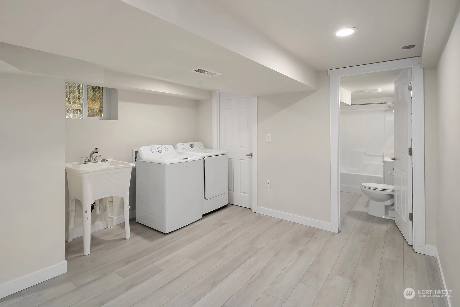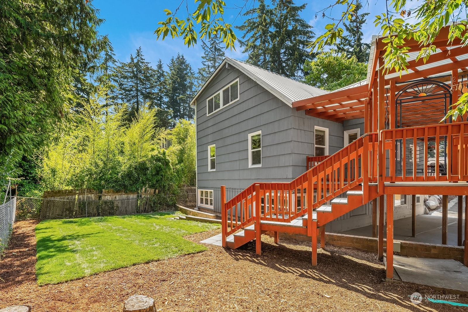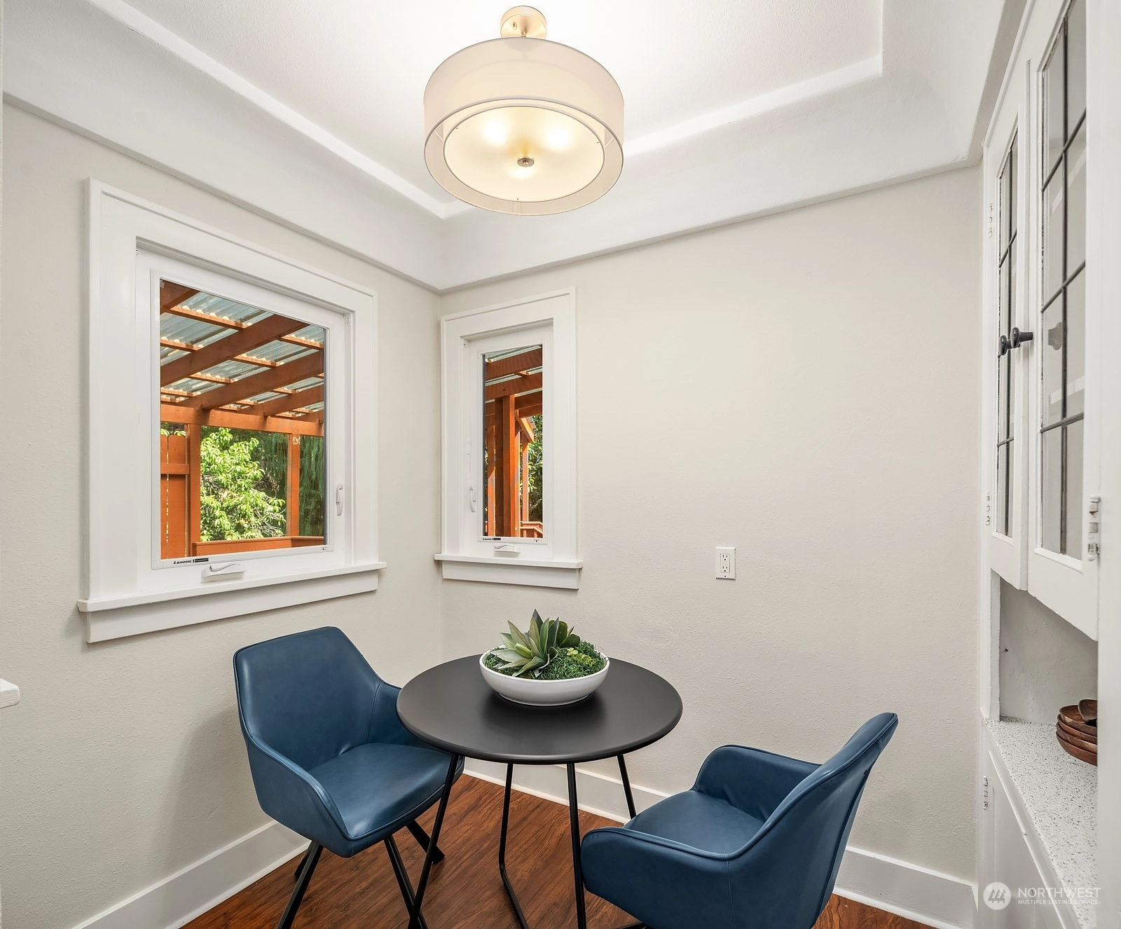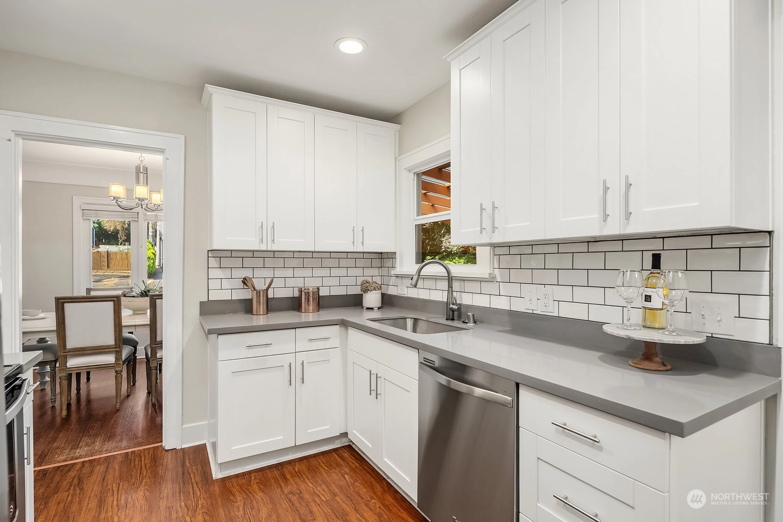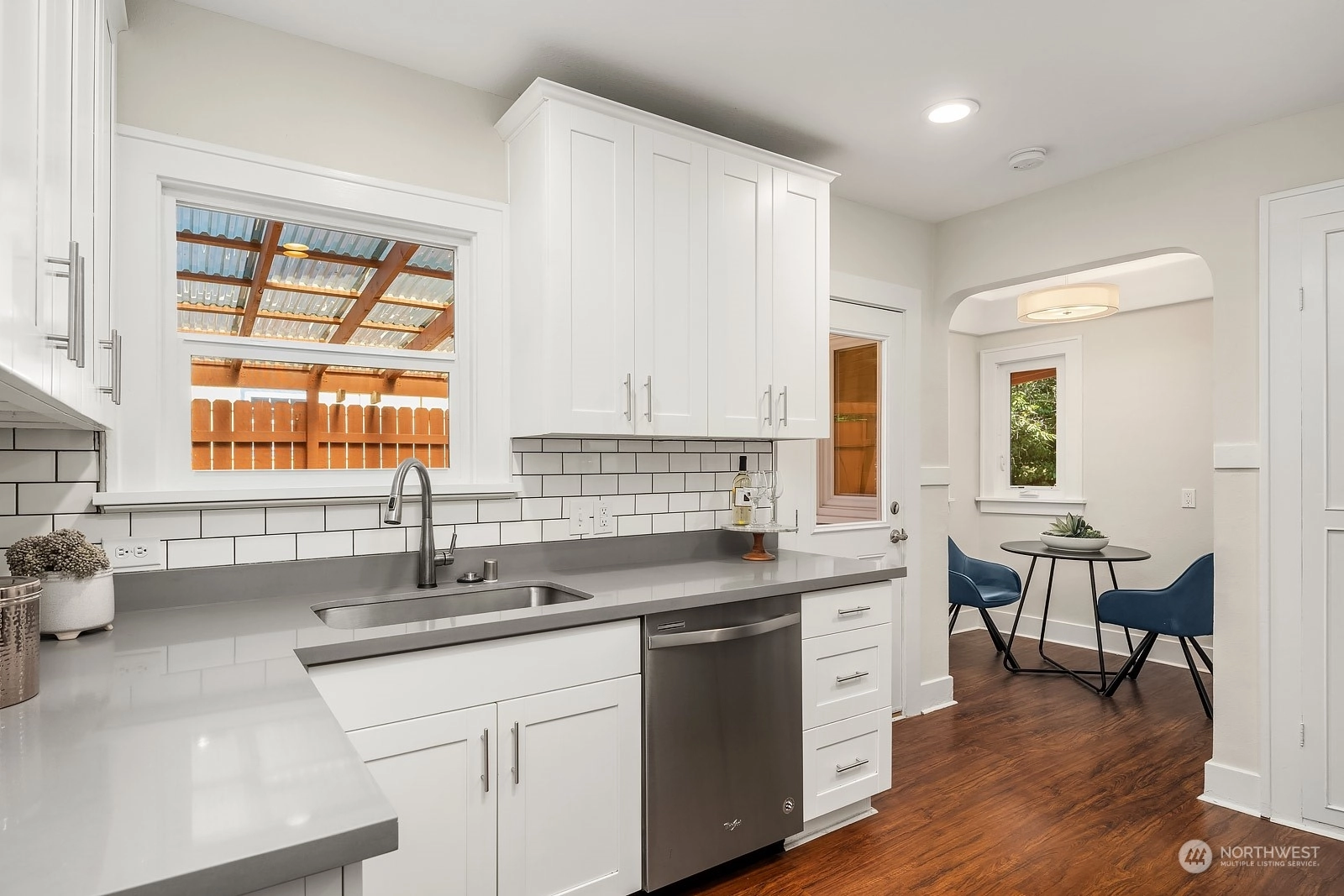 Beautifully preserved yet completely upgraded home, where classic meets convenience. Original hardwood floors add timeless elegance to each light filled room. Seamlessly blending vintage appeal with modern upgrades, enjoy comfort and functionality in this 7 bedroom home spread out on 2700 SF of living space. The main floor offers formal dining & living rooms, 2 beds, a full bath, and kitchen with eating nook. Upstairs, find the Primary with en suite bath and 2 more bedrooms. The basement offers a huge recreational / great room, 2 bedrooms, laundry room, utility room, and so much storage and flex space. Huge, covered deck for year round dining al fresco and a large, flat backyard. Easy access to the light rail, Northgate Mall, and I-5!