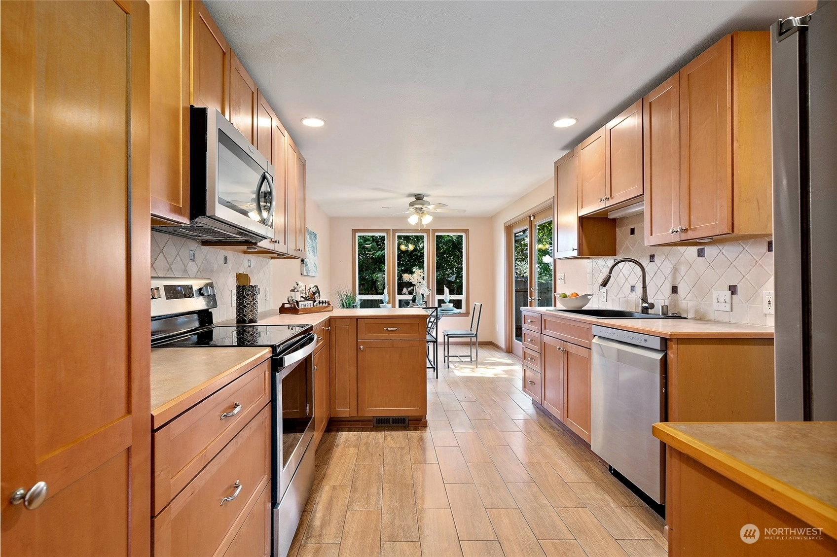 An absolute perfect gem in the convenient Madison neighborhood! Updated inside & out, this 3 bed, 2.75 bath home features a new roof (2024), gas furnace(2020), gas hot water heater(2021), Hardiplank siding, vinyl windows, engineered hardwoods, kitchen w/custom cabinetry, new stainless dishwasher & appliances, recessed lighting, tile backsplash & dining area w/ door to large composite deck overlooking the fully fenced yard. Formal dining & living room w/ built-ins & slate tile entryway & additional family/entertainment room. Enormous primary suite w/en-suite bath, soaking tub & walk-in closet w/built-in closet system. Secluded corner lot w/gated RV parking & close to Boeing and easy I-5 access. Large laundry & all appliances included!