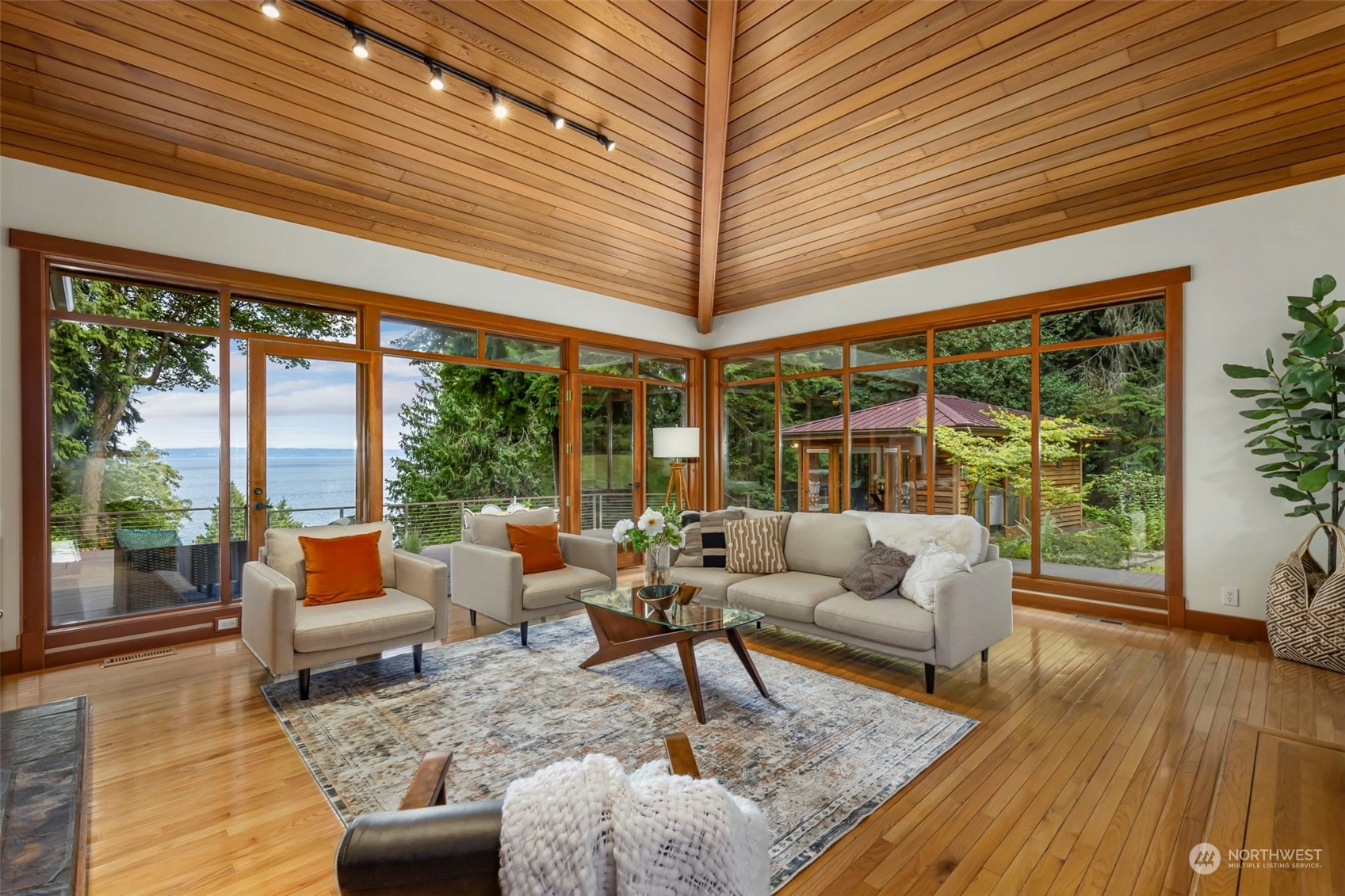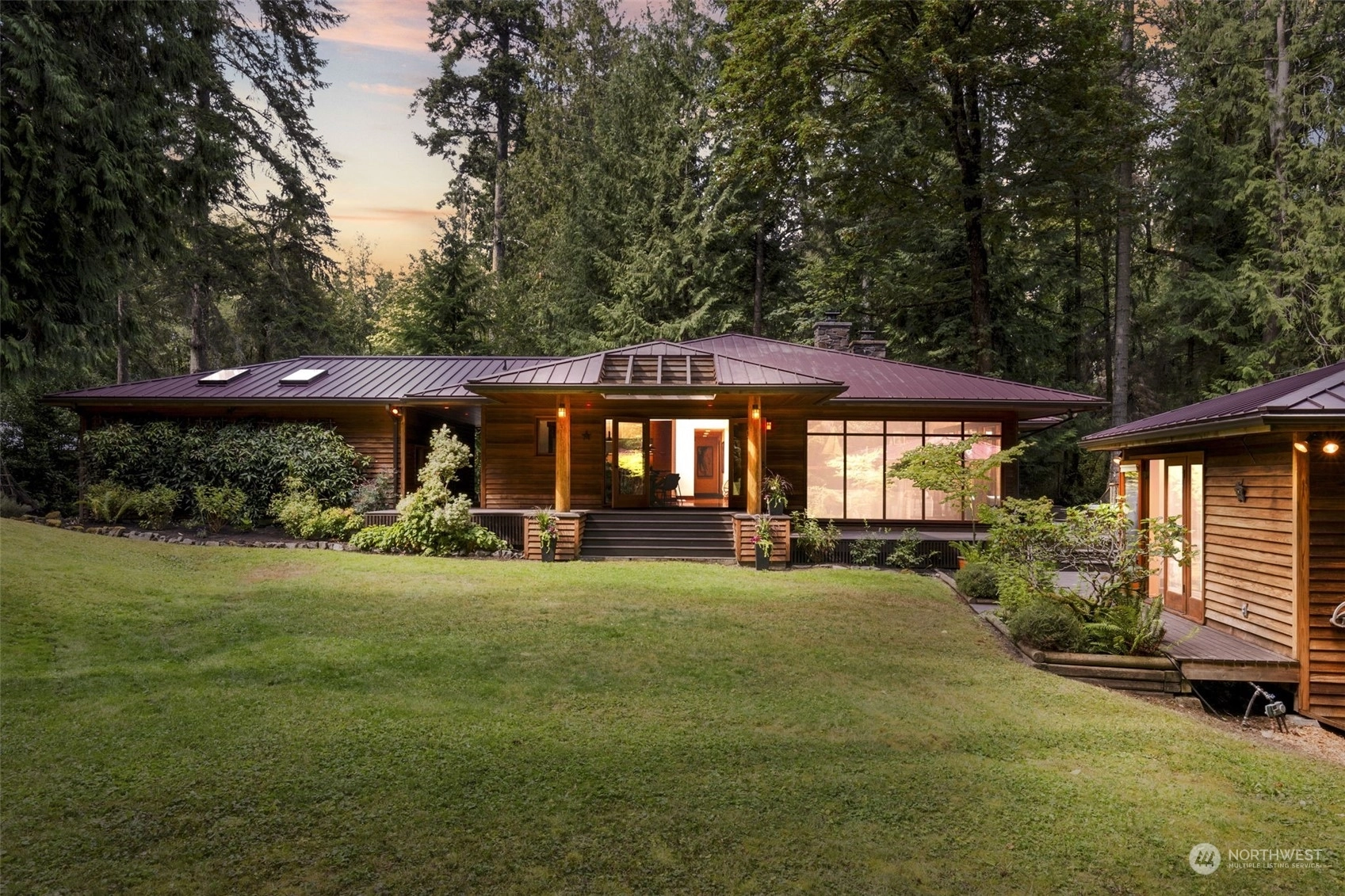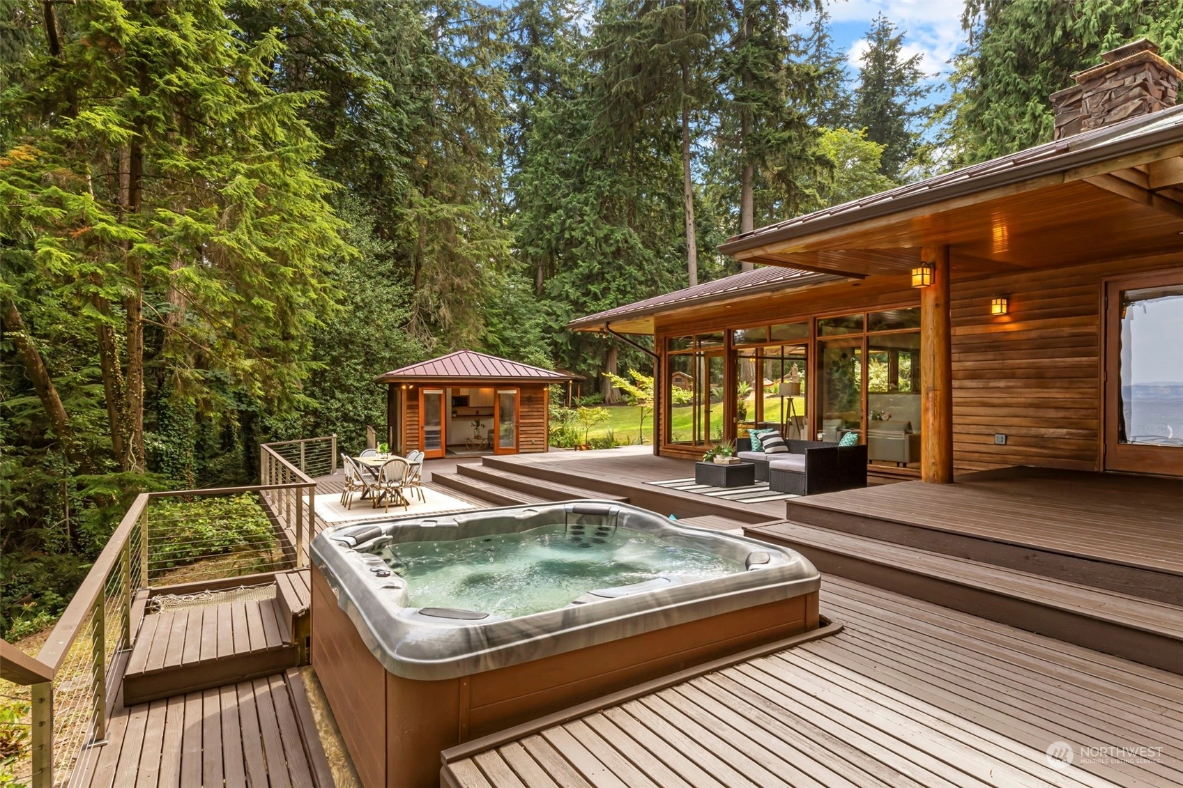 This is the one you've been waiting for—a modern island retreat with it all—privacy, views, multiple outbuildings and a beach! Single-level home boasts thoughtful design with dramatic vaulted ceilings, open floor plan, chef’s kitchen and expansive windows showcasing views of the Sound and Cascades. The home opens up beautifully to its stunning environment with wrap around deck and entertaining spaces. Pathways lead to the many amenities on this 1-acre private compound: guest cottage with water views, 796 SF studio, pond, hobby farm, dog run, and co-owned private bulkhead and beach with seeded oyster and clam farming. This rare opportunity offers all the benefits of coastal living without compromising space for guests, hobbies or privacy.