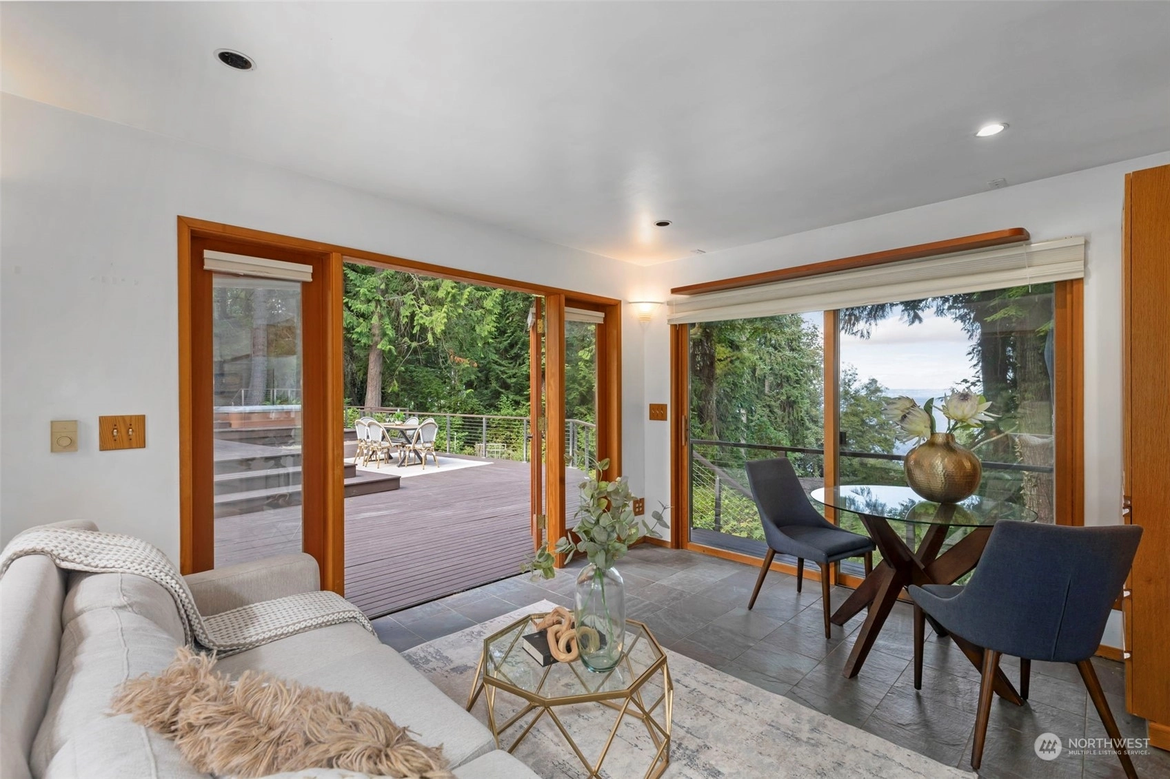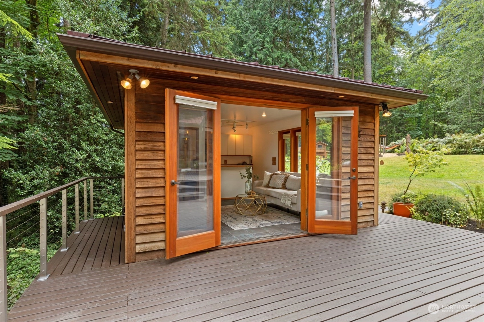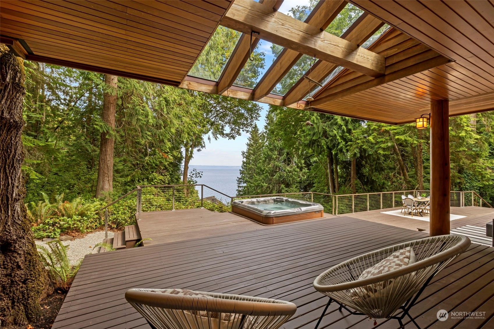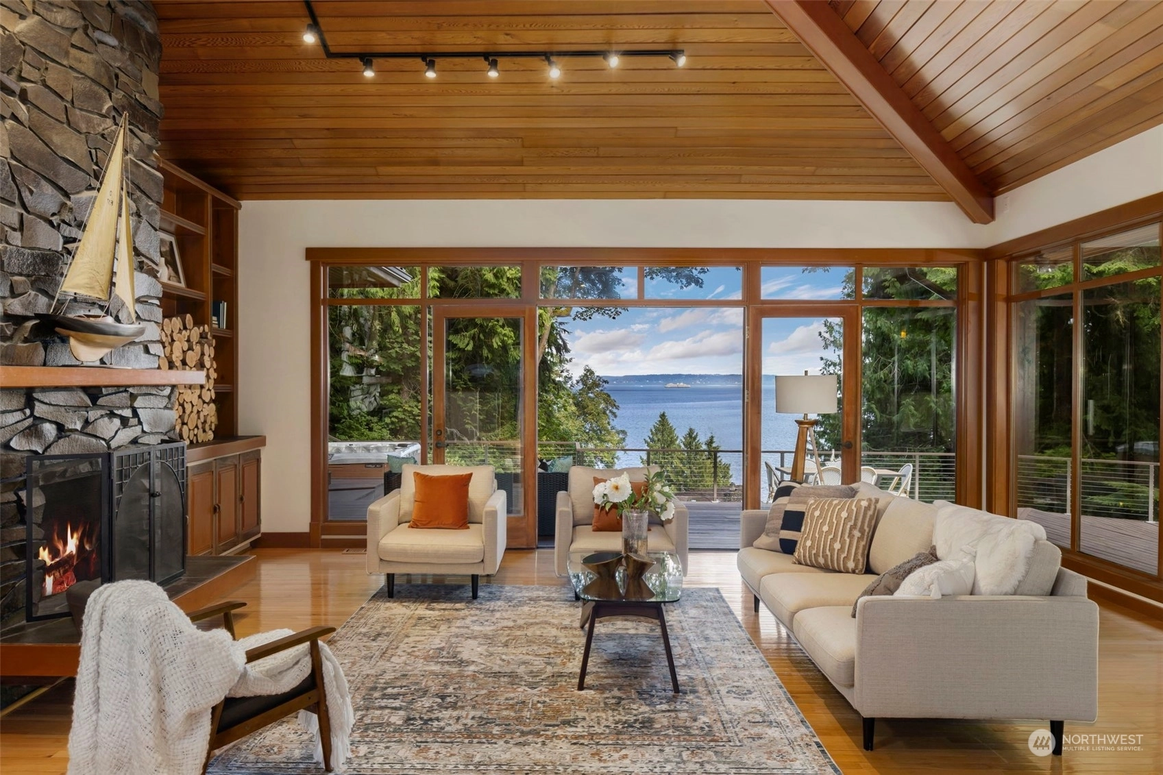 This is the one you've been waiting for—a modern island retreat with it all—privacy, views, multiple outbuildings and a beach! Single-level home boasts thoughtful design with dramatic vaulted ceilings, open floor plan, chef’s kitchen and expansive windows showcasing views of the Sound and Cascades. The home opens up beautifully to its stunning environment with wrap around deck and entertaining spaces. Pathways lead to the many amenities on this 1-acre private compound: guest cottage with water views, 796 SF studio, pond, hobby farm, dog run, and co-owned private bulkhead and beach with seeded oyster and clam farming. This rare opportunity offers all the benefits of coastal living without compromising space for guests, hobbies or privacy.