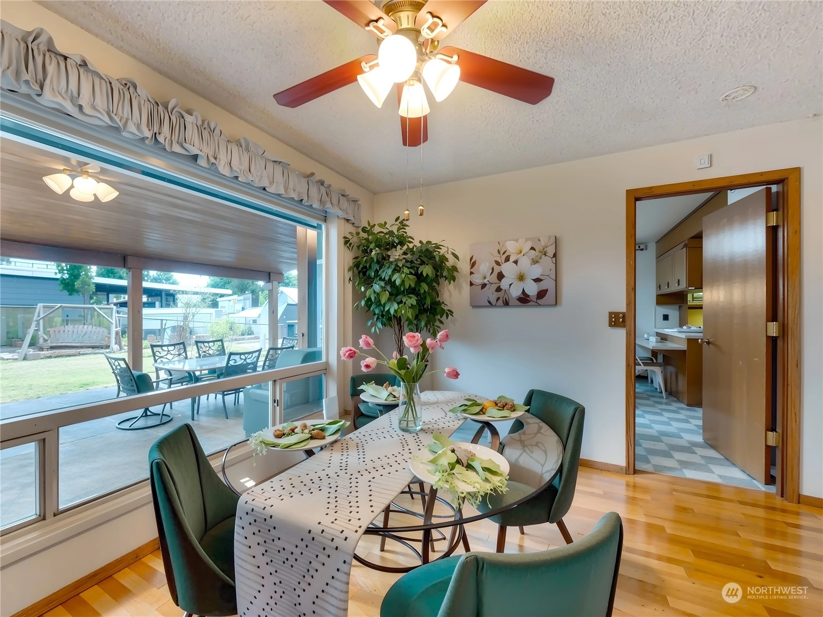 Welcome to this charming mid-century home, showcasing classic appeal with timeless features. Solid oak wood floors span the bedrooms and living area, enhancing the warmth and character of the space. Bright, large windows flood the home with natural light, creating an inviting and comfortable ambiance. The expansive 924 sq/ft rec room, complete with dedicated heating, is perfect for gatherings or leisure. Outside, enjoy a .2-acre lot with a shed, nicely appointed covered patio and gated RV parking. A shop with workbench and storage is connected to a spacious 2-car garage. The roof is just 5 years old. This home has all the right features and just needs the next owner to make it their own.