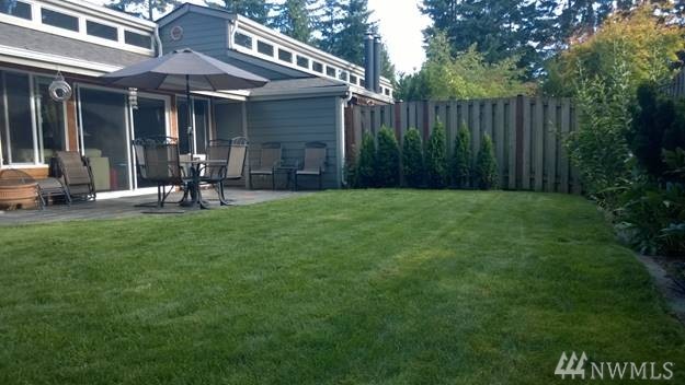 Wonderful end unit, remodeled 2 BR, 1.75 BTH condo in excellent location with garage and extra parking. Bright foyer flows to open living and dining room with hardwood floors, skylights and beam ceilings. Wood burning slate frame fireplace and cherry built-ins. Terrific kitchen has SS appliances and granite counters. Master BR suite with high ceiling, walk-in closet and renovated BTH. Paver patio and fully fenced backyard. Home theater system pre-wired. 3 parking spaces and extra RV parking.