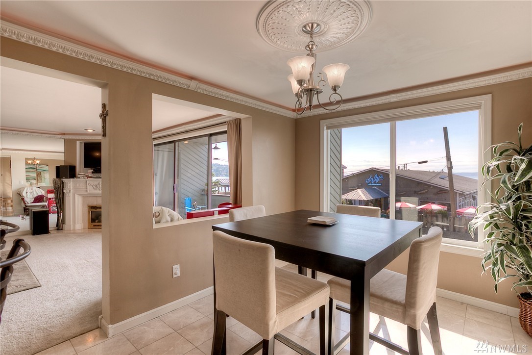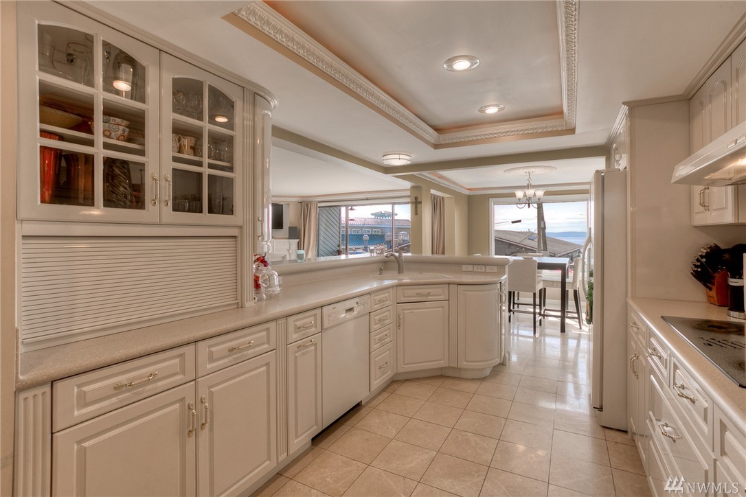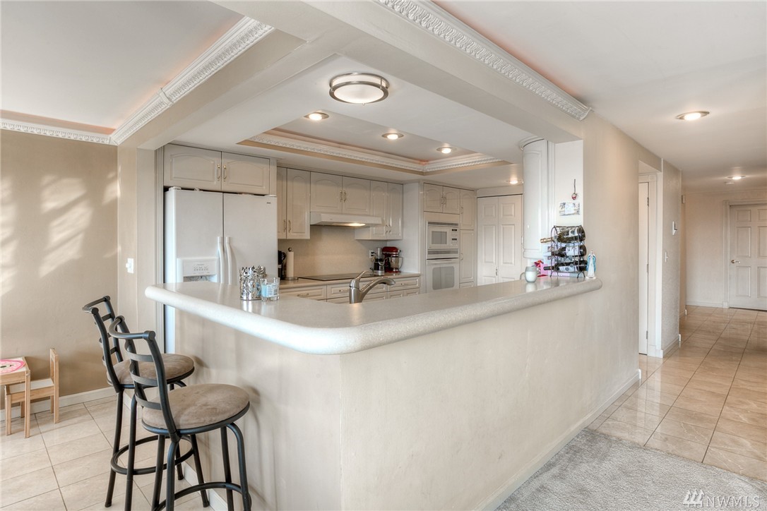 This amazing condo has a sweeping, unobstructed view of the Puget Sound and Olympic Mountains from the deck, living room, dining room and kitchen. Located in the heart of Redondo, right across the street from the beach and Salty's, you'll feel like your at the shore even though you're only minutes from the freeway. The kitchen is wonderfully updated and there's a master suite, plus there's secure underground parking and a private lobby with an elevator. You have to see it to believe it.