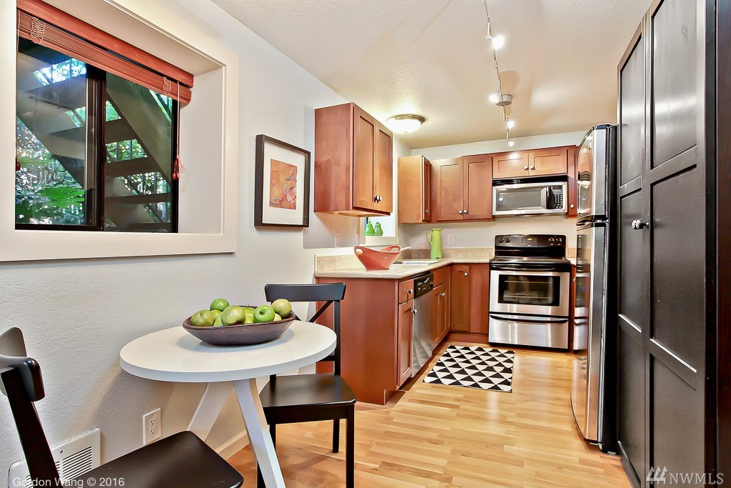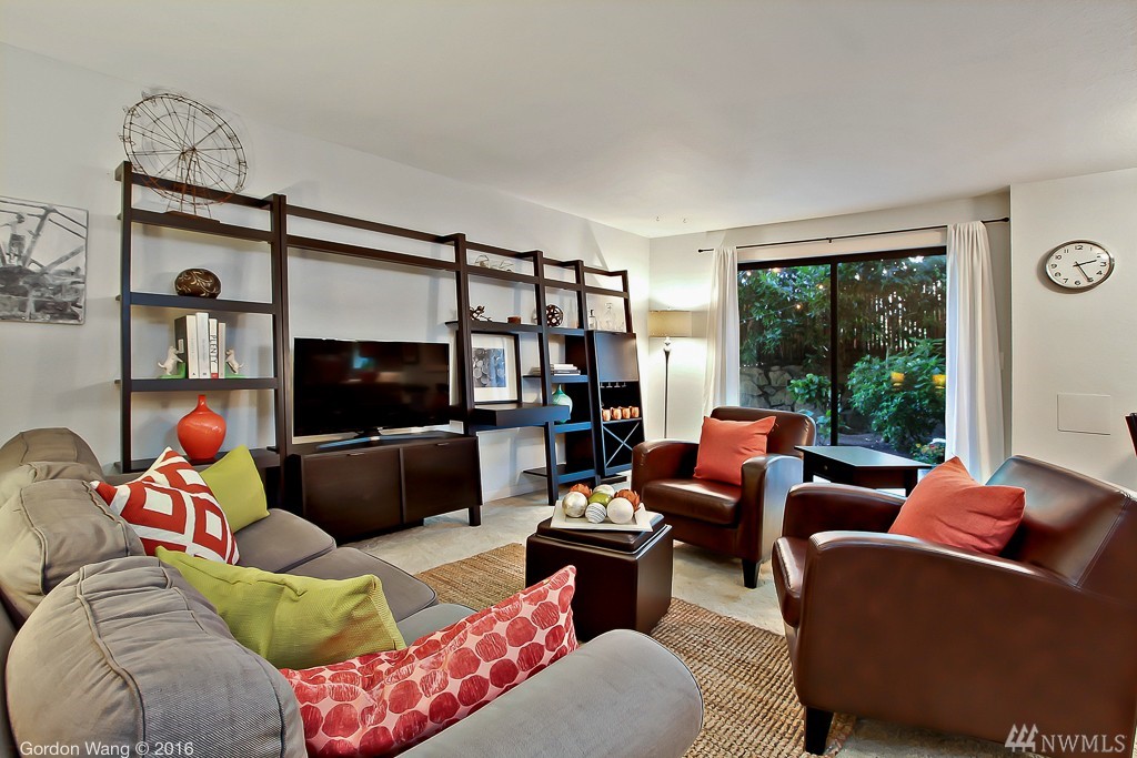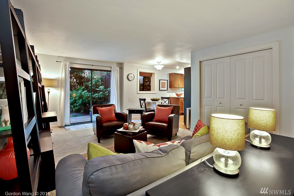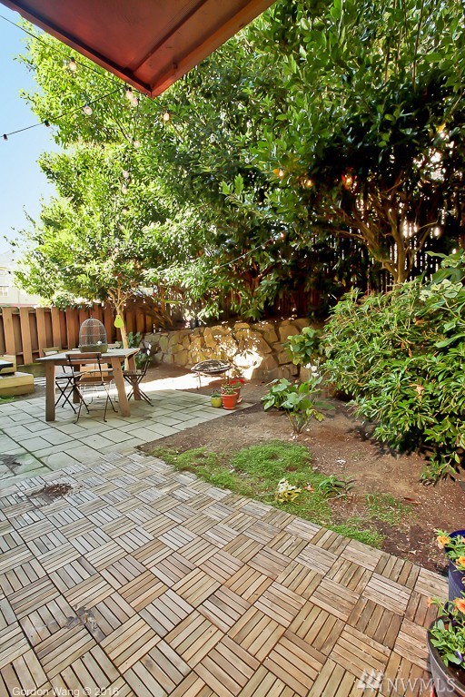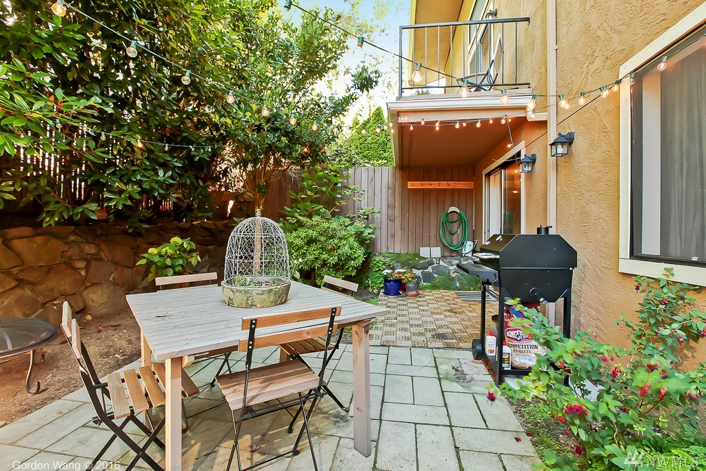 Ballard condo living at it's best! This boutique condo building is located just where you want to be! Level entry,end unit,1 bedroom,1 bath lives like a home! Tastefully updated,open concept living & eat-in kitchen. Private patio, landscaped with low maintenance and fenced yard. One car attached garage,current owner uses as a business studio and storage. Easy access to shops,markets,dining,parks & city! In the heart of beautiful Ballard & just a beat away from the city!
