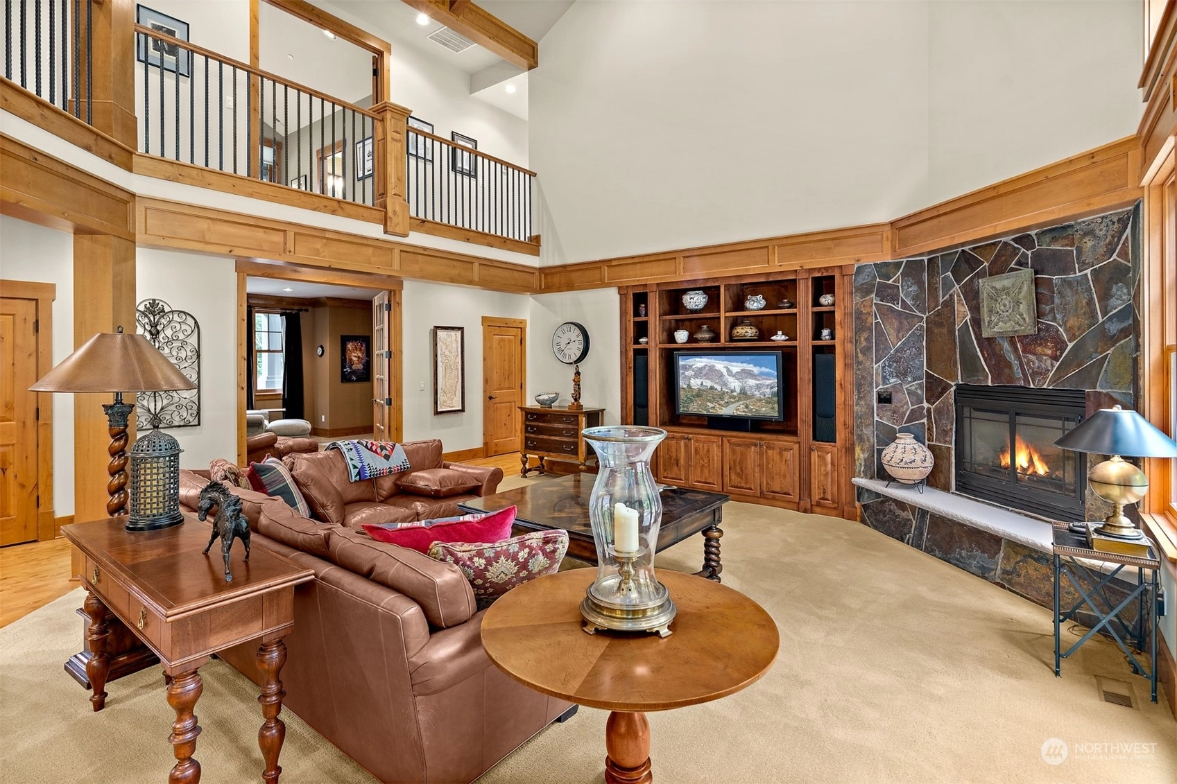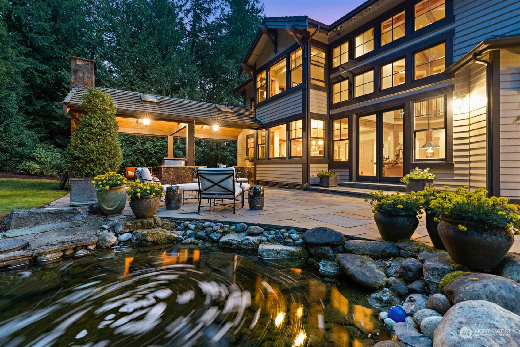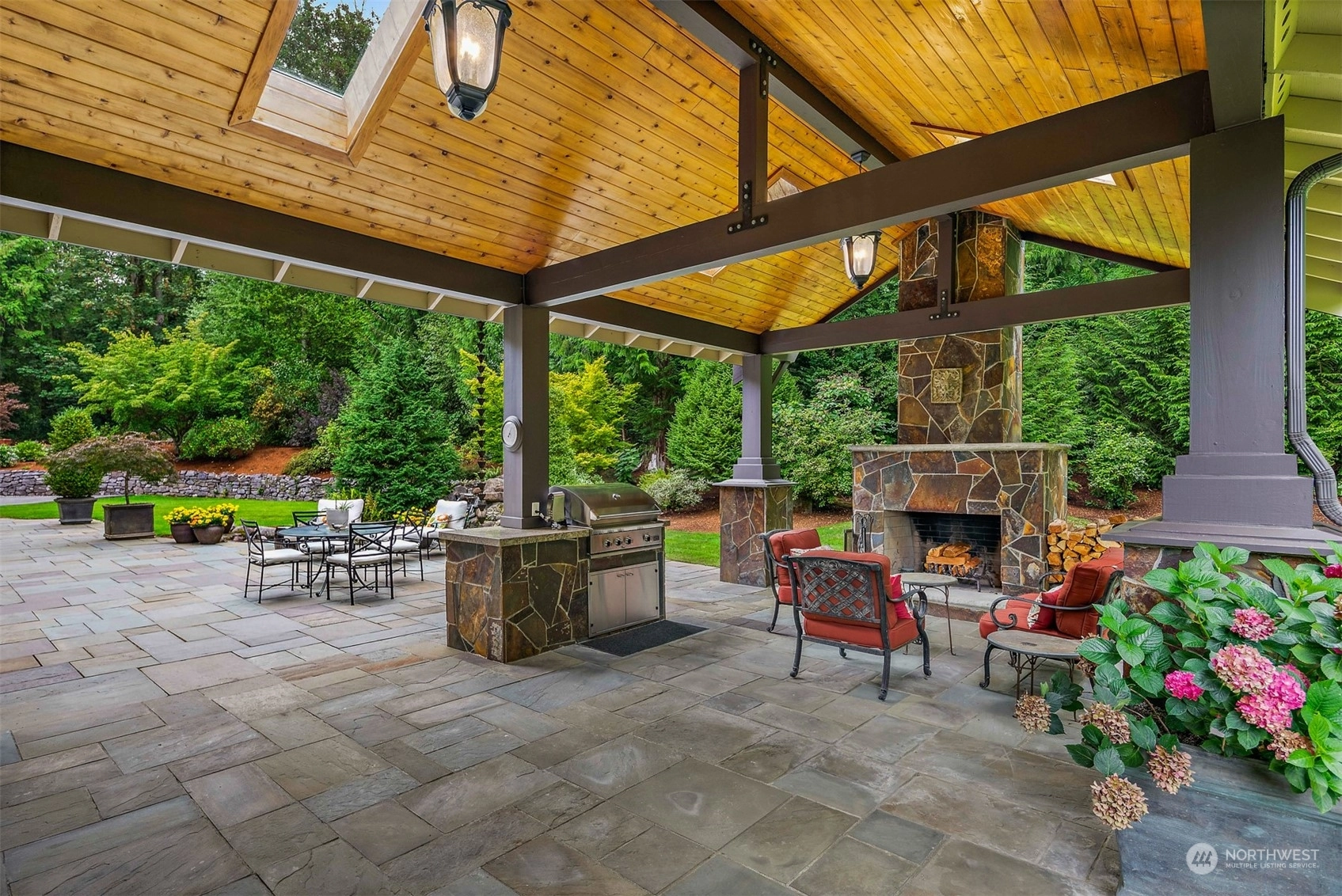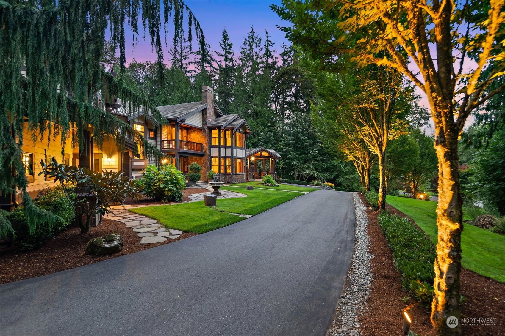 In the gated Estates at Blakely Woods, this lodge-inspired home boasts 2-story living and family rooms and newly refinished hardwoods through out main floor. The massive island kitchen features high-end appliances, a wet bar, butler’s pantry, and 120-bottle wine cooler. Relax in the wood-paneled library or state-of-the-art media room. The 3 ensuite bedrooms include 2 w/lofts and 1 w/a private deck. The primary suite offers a fireplace, private laundry, steam shower, and heated marble floors. Entertain on the bluestone patio with a masonry fireplace, granite counters, DCS grill, and U-Line fridge. A 4-car garage, private irrigation well, lush landscaping, and a tranquil water feature complete this stunning estate.