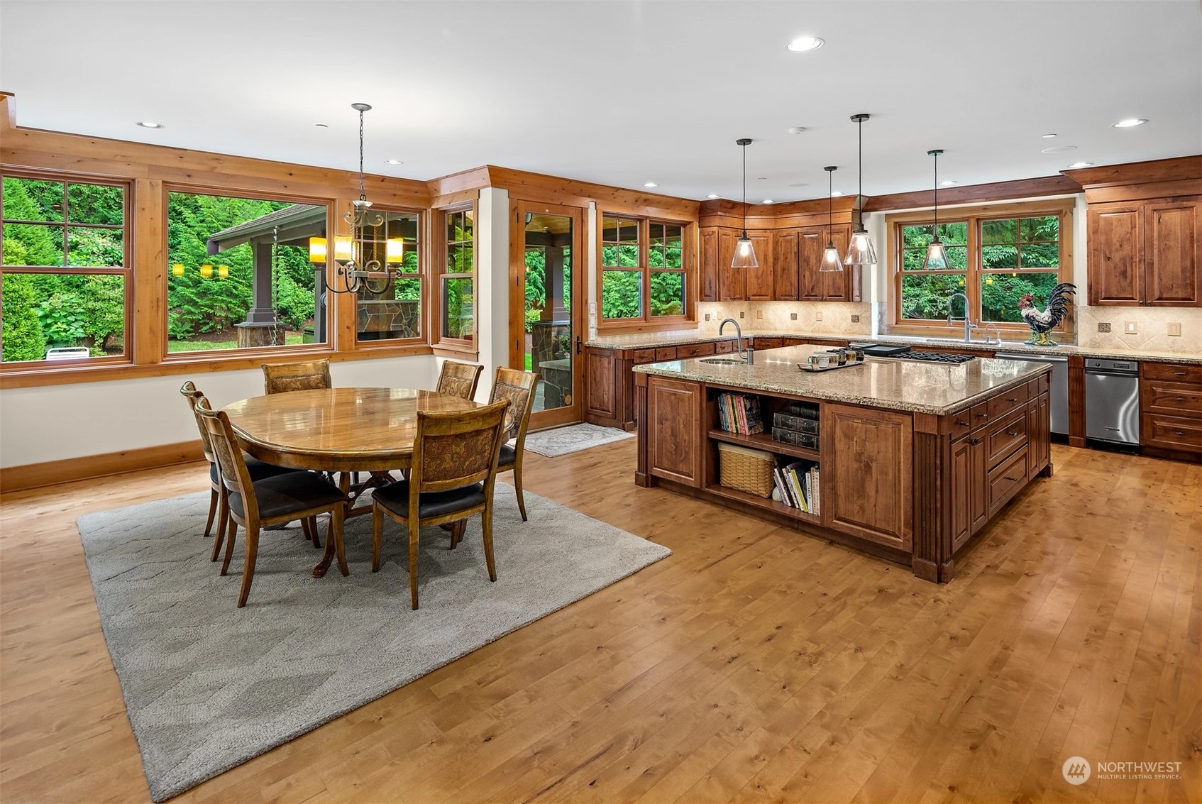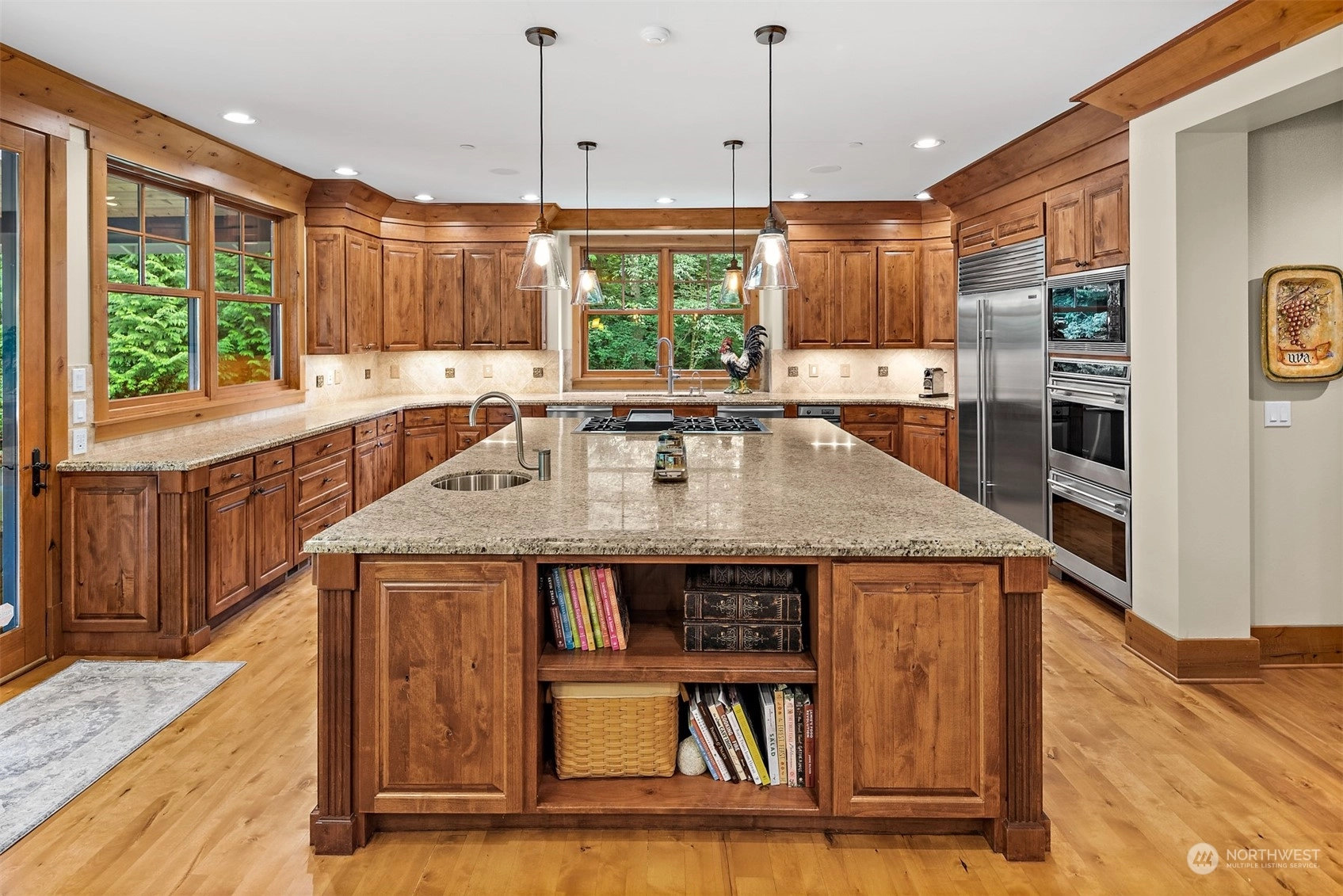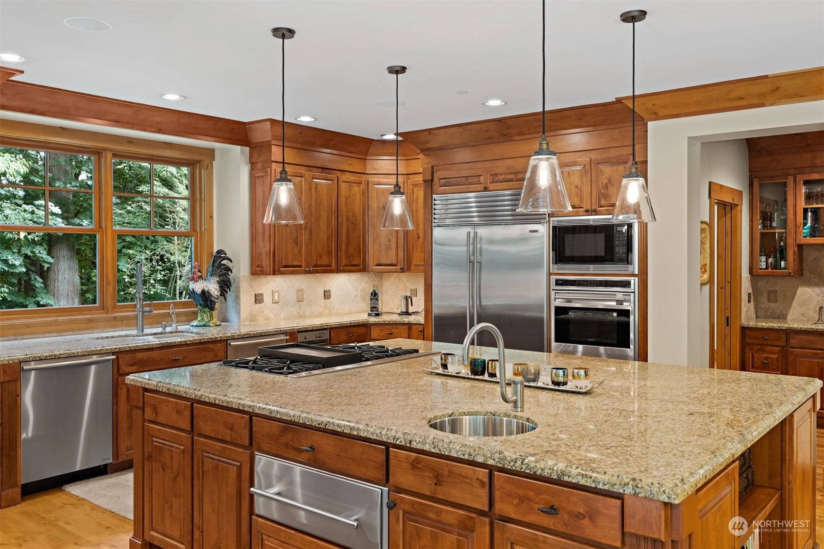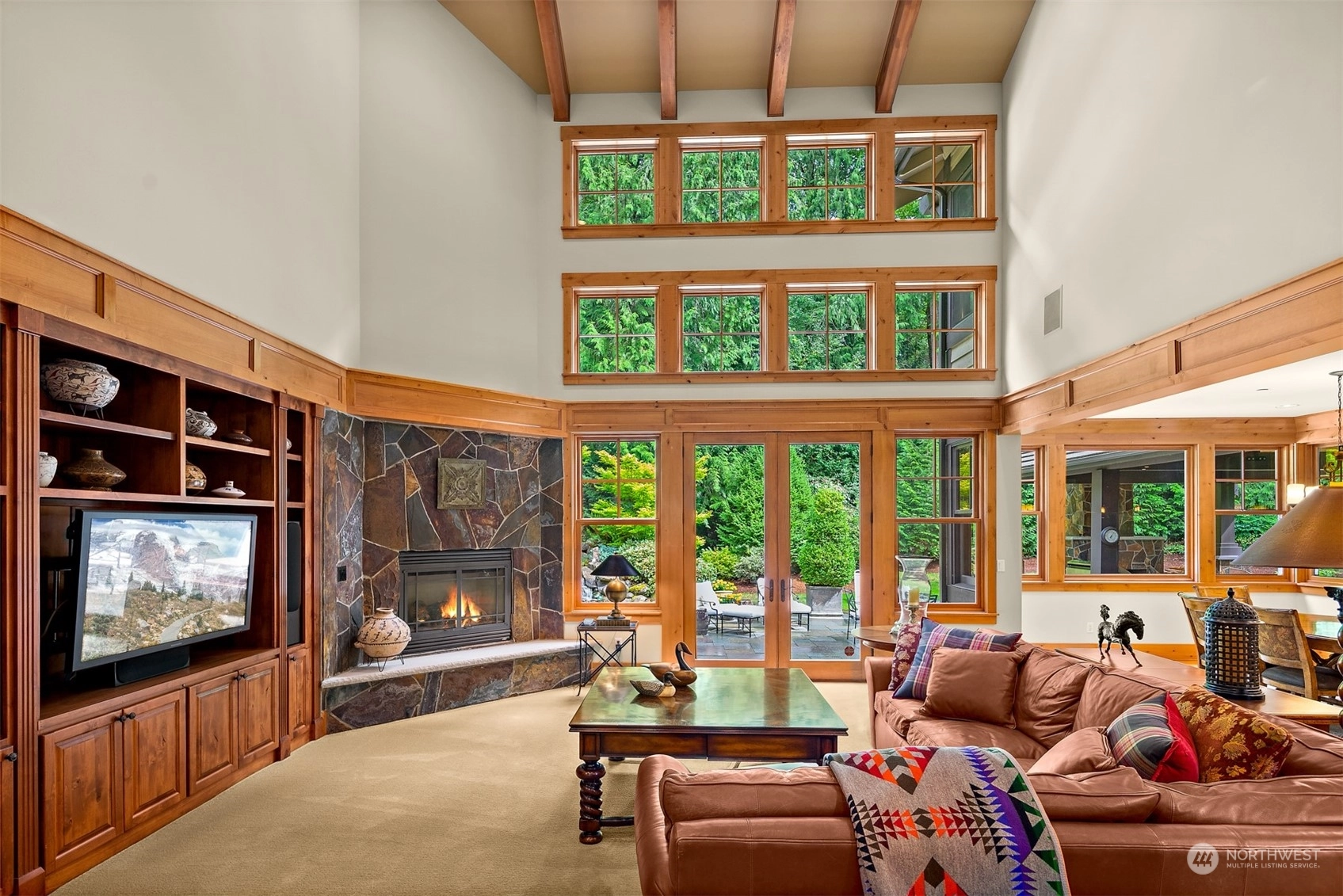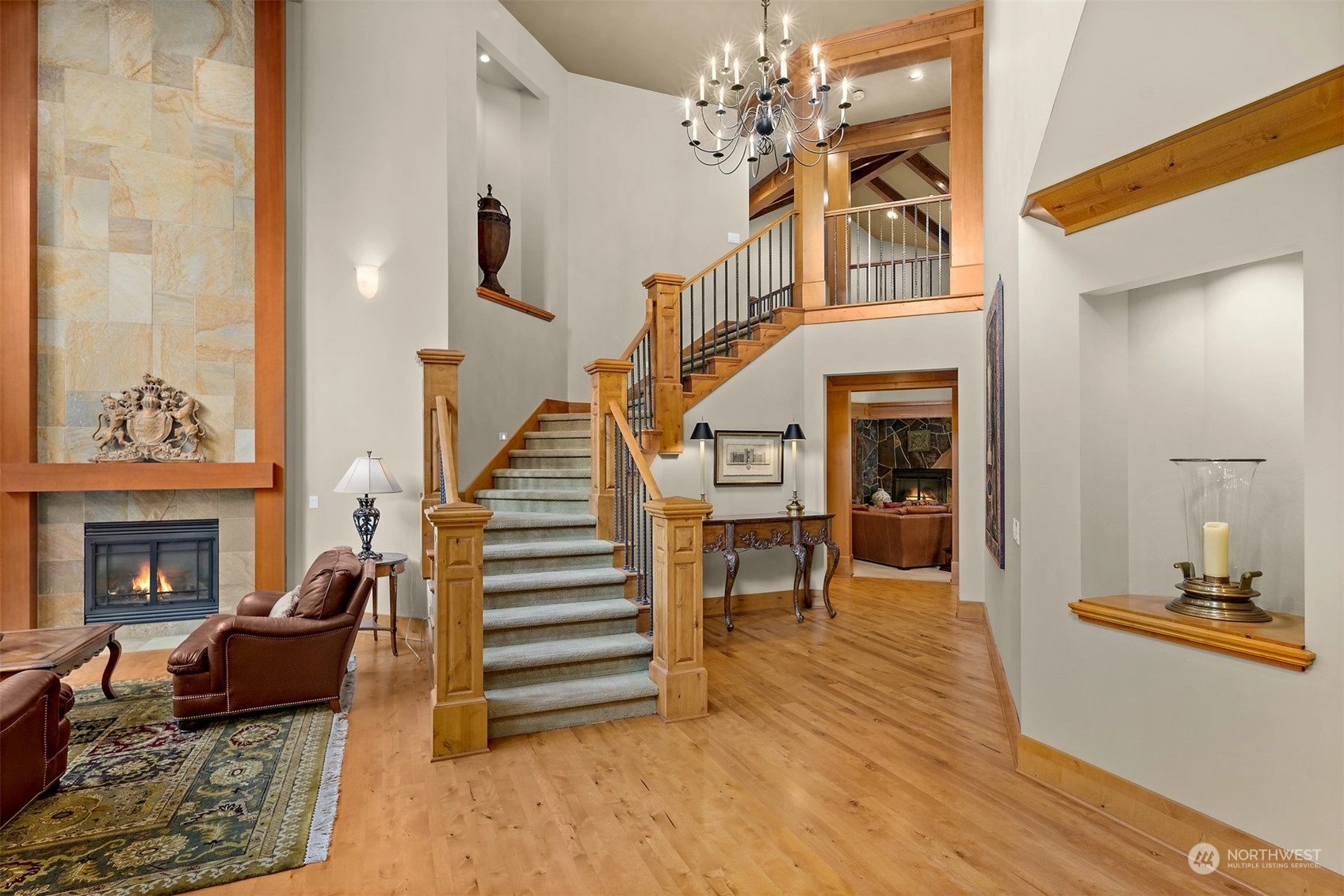 In the gated Estates at Blakely Woods, this lodge-inspired home boasts 2-story living and family rooms and newly refinished hardwoods through out main floor. The massive island kitchen features high-end appliances, a wet bar, butler’s pantry, and 120-bottle wine cooler. Relax in the wood-paneled library or state-of-the-art media room. The 3 ensuite bedrooms include 2 w/lofts and 1 w/a private deck. The primary suite offers a fireplace, private laundry, steam shower, and heated marble floors. Entertain on the bluestone patio with a masonry fireplace, granite counters, DCS grill, and U-Line fridge. A 4-car garage, private irrigation well, lush landscaping, and a tranquil water feature complete this stunning estate.
