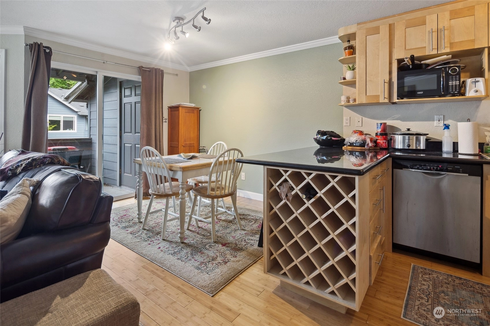 Close by Multnomah Village & Gabriel Park. SELLER WILL PAY 1ST TWO MOS HOA FEES. Charming 1-bed, 1-bath w. cozy living space, perfect low-maintenance home. Spacious living rm, wood fireplace, dining area leads to covered patio space w. Lg storage closet. Kitchen w. high-end SS appls, granite counters & maple cabinets. Breakfast bar for add’l seating & perfect spot for casual dining. Lg bedroom w. space for king-size bed & add’l furniture. Walk-in closet leads to bathrm w. add’l access to hallway. Full-size bathtub & shower. Full size W/D with add’l storage space. Covered parking. Window & portable A/C units included. New windows, siding & ventilation. Seller carried financing; 5.8% with 30% down, 20 yr.