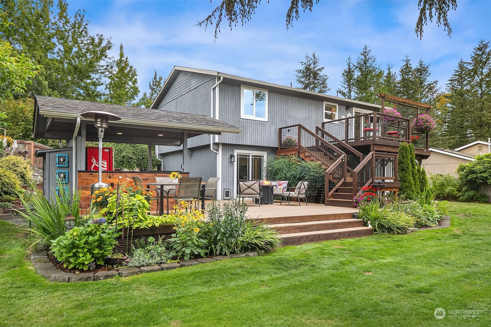 This remarkable home/property is a showcase of love and care; with beautiful living spaces inside and out! From the gleaming hardwoods, the tastefully remodeled kitchen and main bath, the updated trim/doors/hardware/windows/lighting, all beckoning you to call this "home". The generous .39 acre lot offers abundant parking, a fully fenced backyard haven that is designed to be a peaceful retreat, a gardeners paradise, or a lively place to play and entertain! The gazebo/bbq area, multi-level decks, firepit and sheds make this a one-of-a-kind! Cedar Village is just minutes from all conveniences, including just steps away from the Snoqualmie Valley Trail, and offers a community green-space with river frontage. A great place to live!