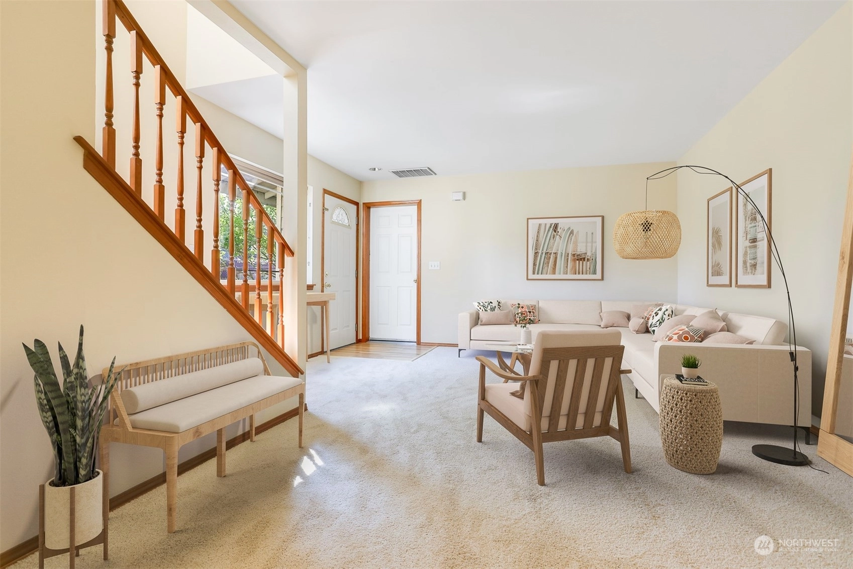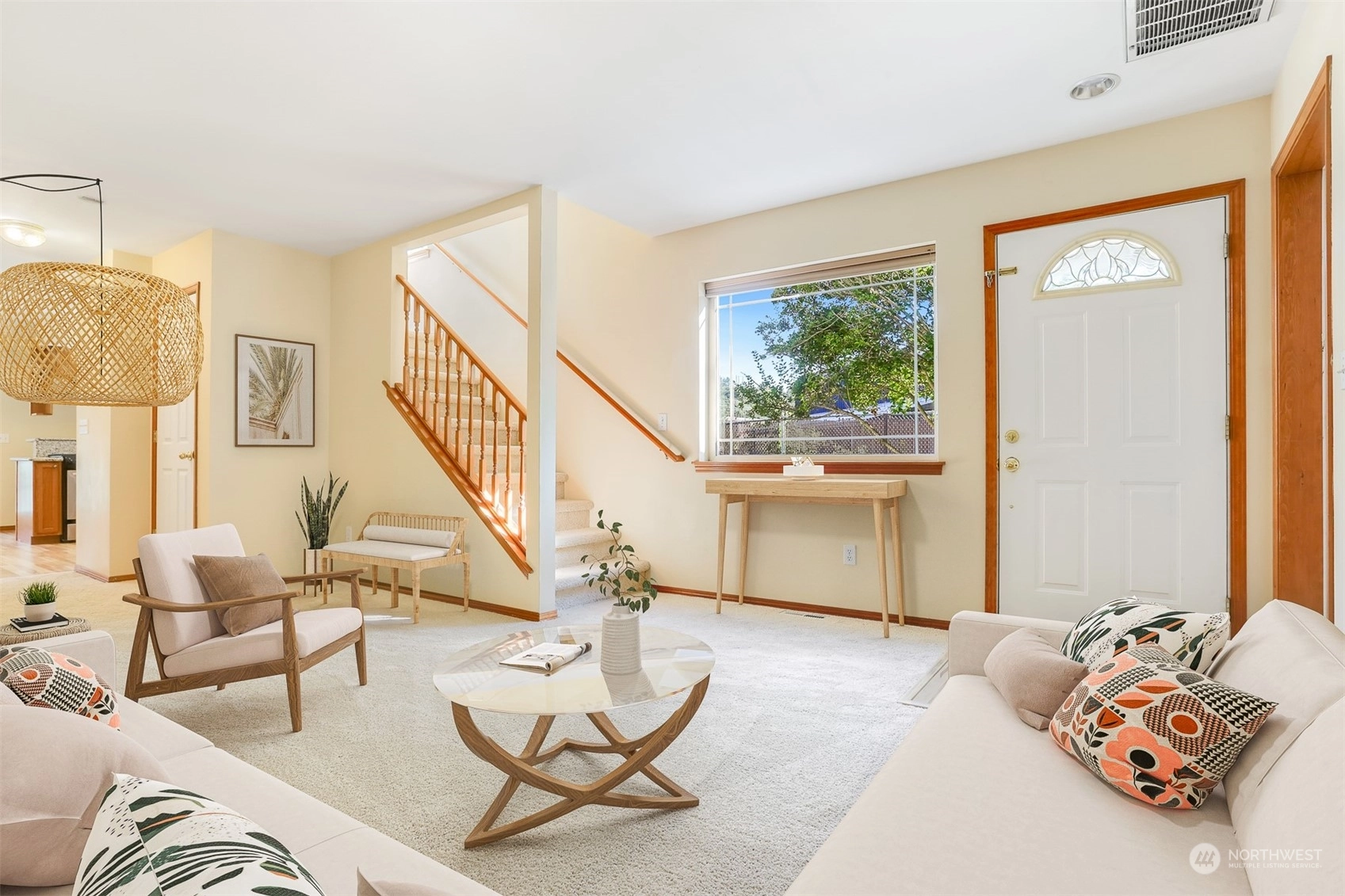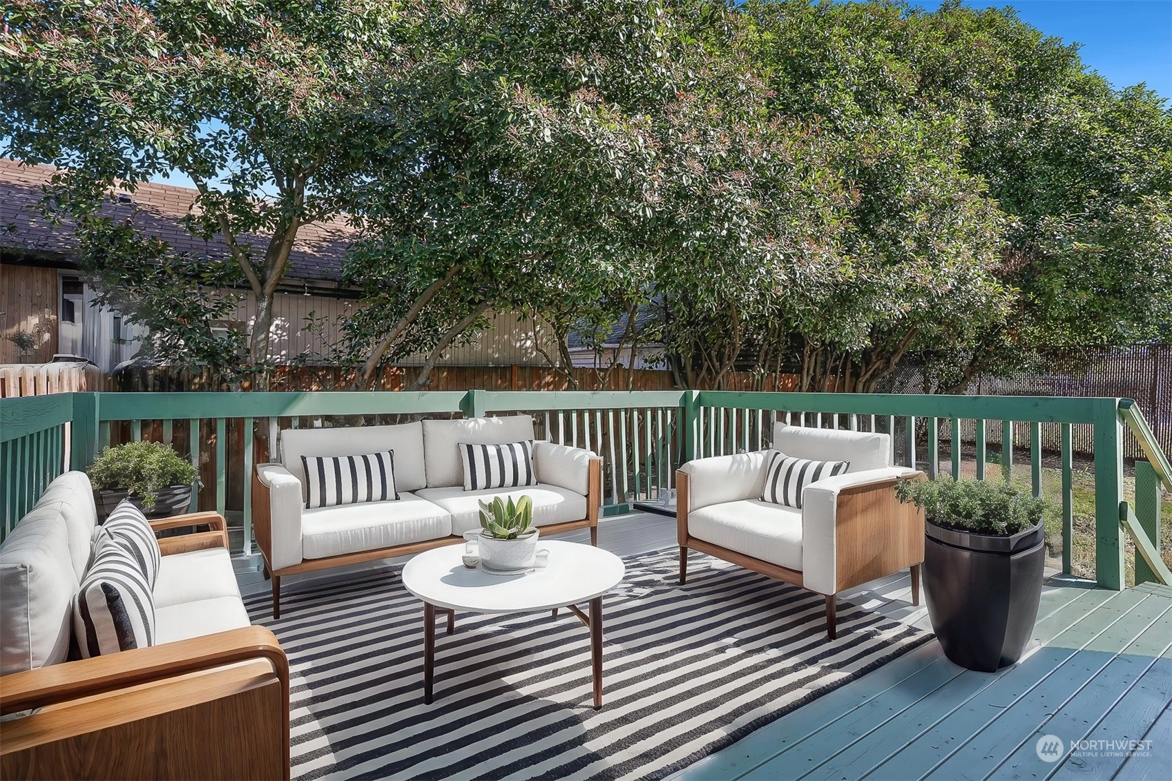 Wow! Rare opportunity to own a great townhouse for under $400k! This well maintained unit is in the heart of downtown Renton. Short couple blocks to many popular restaurants, coffee shops, brew pubs and more! Technically a condo, but no HOA dues and only one other unit connected. Light and bright with brand new carpeting. Two bedrooms on the upper level with a full bathroom and laundry facilities. The kitchen has a breakfast bar, plus eating space and granite countertops. French doors off the kitchen lead out to newly painted deck. Private gated entrance with a fenced yard. Huge two car garage with plenty of storage space. Gas heat too! No rental cap and pets welcome. Hurry this won't last long! Virtual staging used.