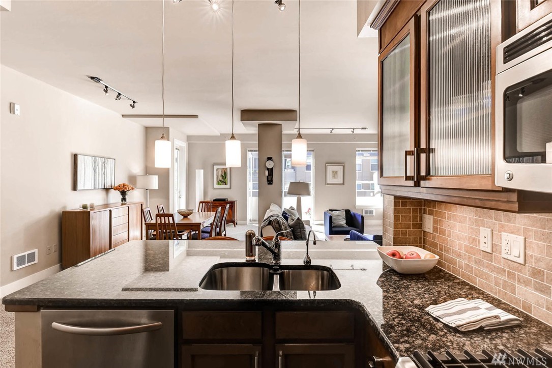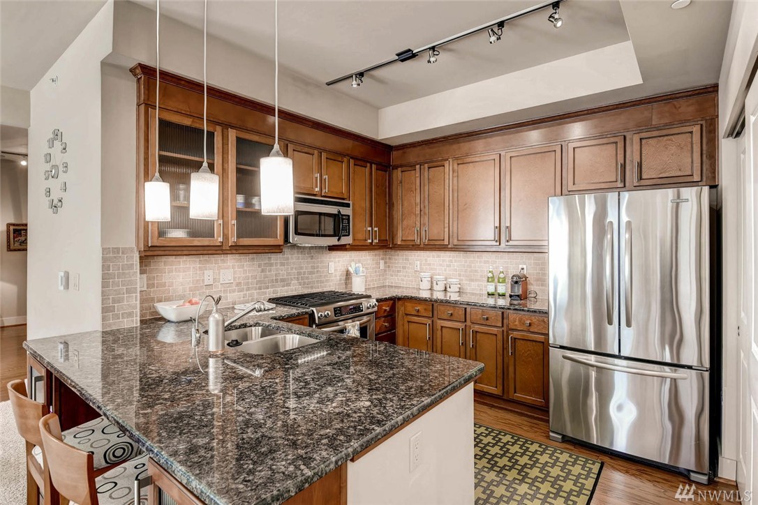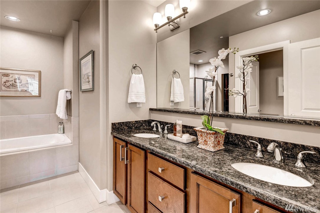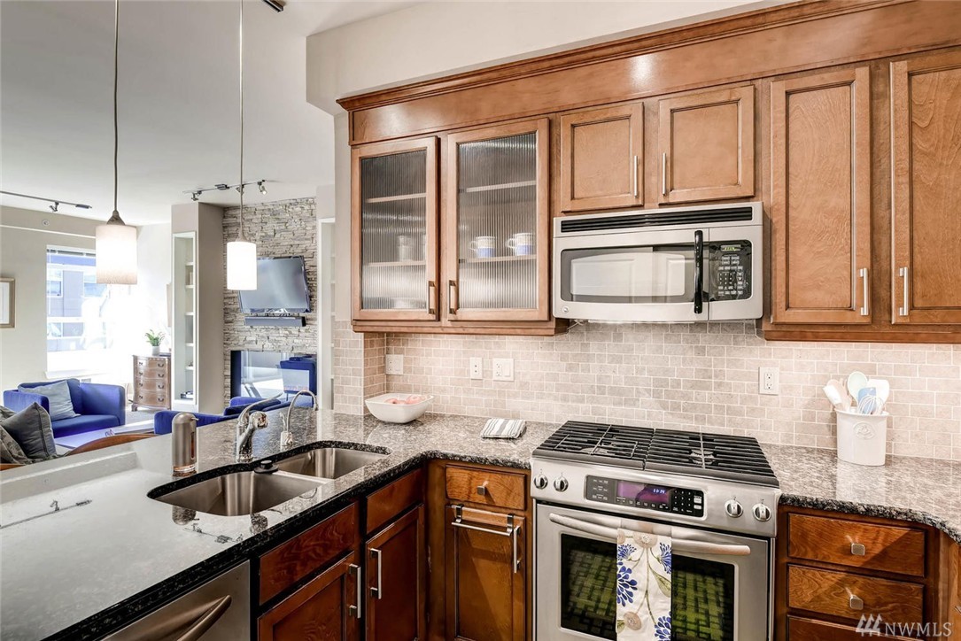 Located in the heart of Mercer Island, this spacious 2 bdrm, 2 bath condo boasts large sunlit rooms & beautiful finishes throughout. A custom stone fireplace wall w/ built-in book shelves and a gorgeous chef's kitchen w/ gas range, granite counters & lovely cabinetry are among the many upgrades. The spacious master suite has lg master bath w/ double sinks & walk-in closet. Enjoy city & territorial views from the lg entertainment deck. Just steps from shops, restaurants and the Sculpture Park.