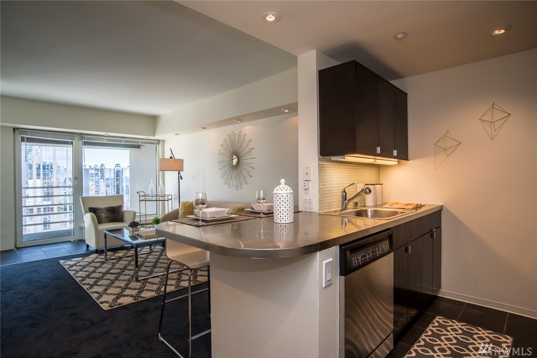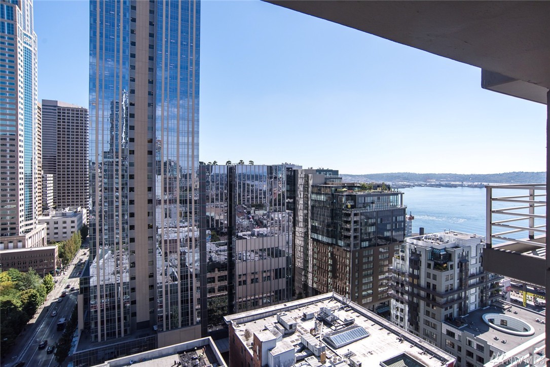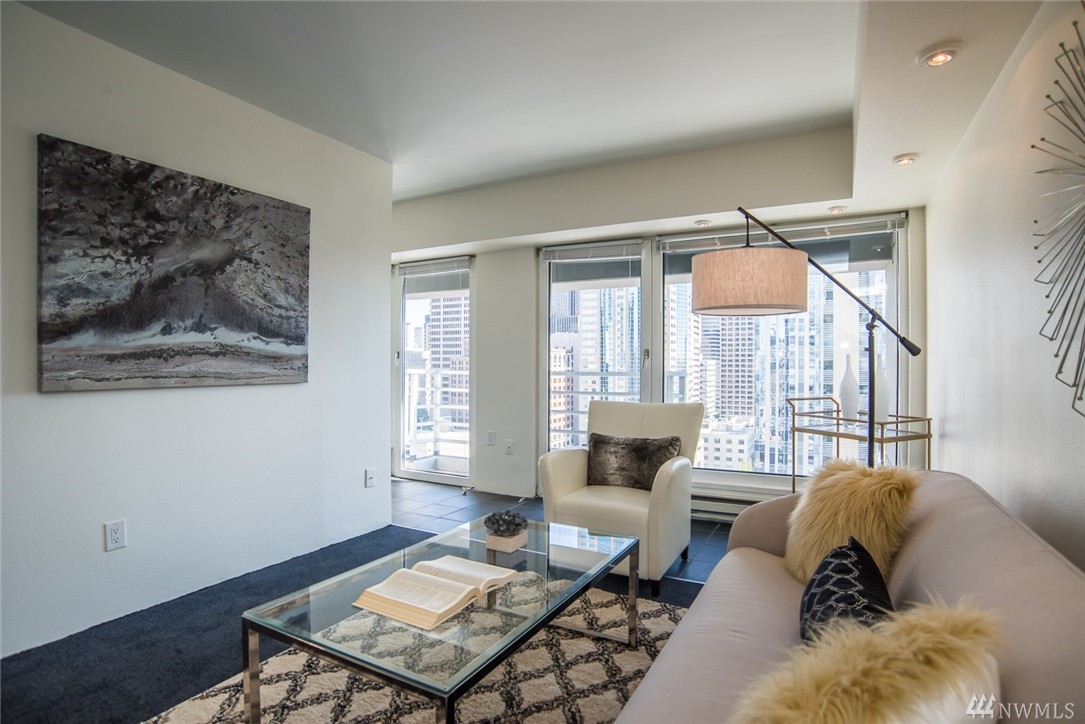 Location cannot be beat, on 21st floor across the street from Pike Place Market, Target in building, light rail/bus tunnel & all Downtown has to offer at your front door. Amazing view of the City & partial of the Puget Sound, recently updated, stainless steel appl. Floor to ceiling windows to maximize view & allow plenty of light all day long. Move-in ready. Romeo & Juliet balcony. 24 hour concierge service, entertainment room, gym, pool, sauna, hot tub, business center & Lg outdoor deck.