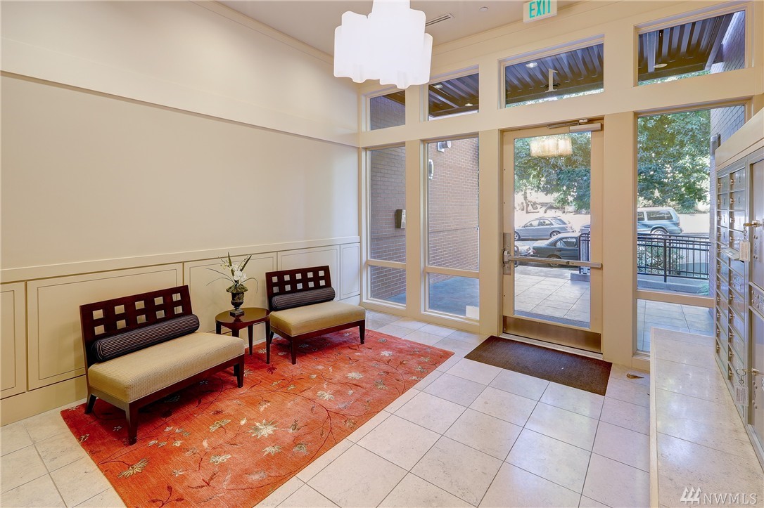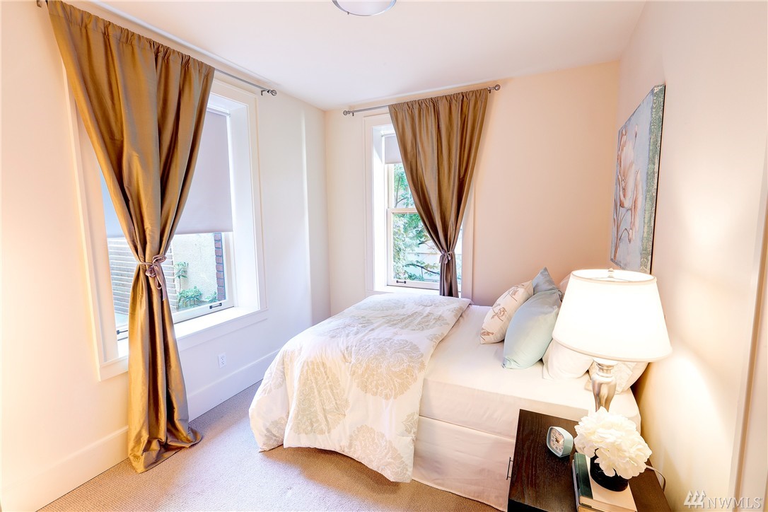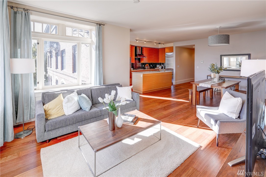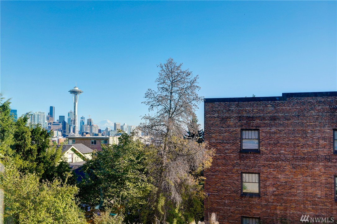 Rare Luxury Condo in Historic Registry Building w/ south facing views of Space Needle, Mt Rainier and Downtown Seattle! Tax reductions for historic registry. Refinished cherry hardwoods. New paint and carpet. Large master bedroom w/ attached master bath w/ separated tub and shower. Large walk in closets off both bedrooms. High end SubZero/Viking appliances. Additional Den/Bonus room. Central A/C. Large truck size parking spot and large storage unit in garage. Unit on east side of building.