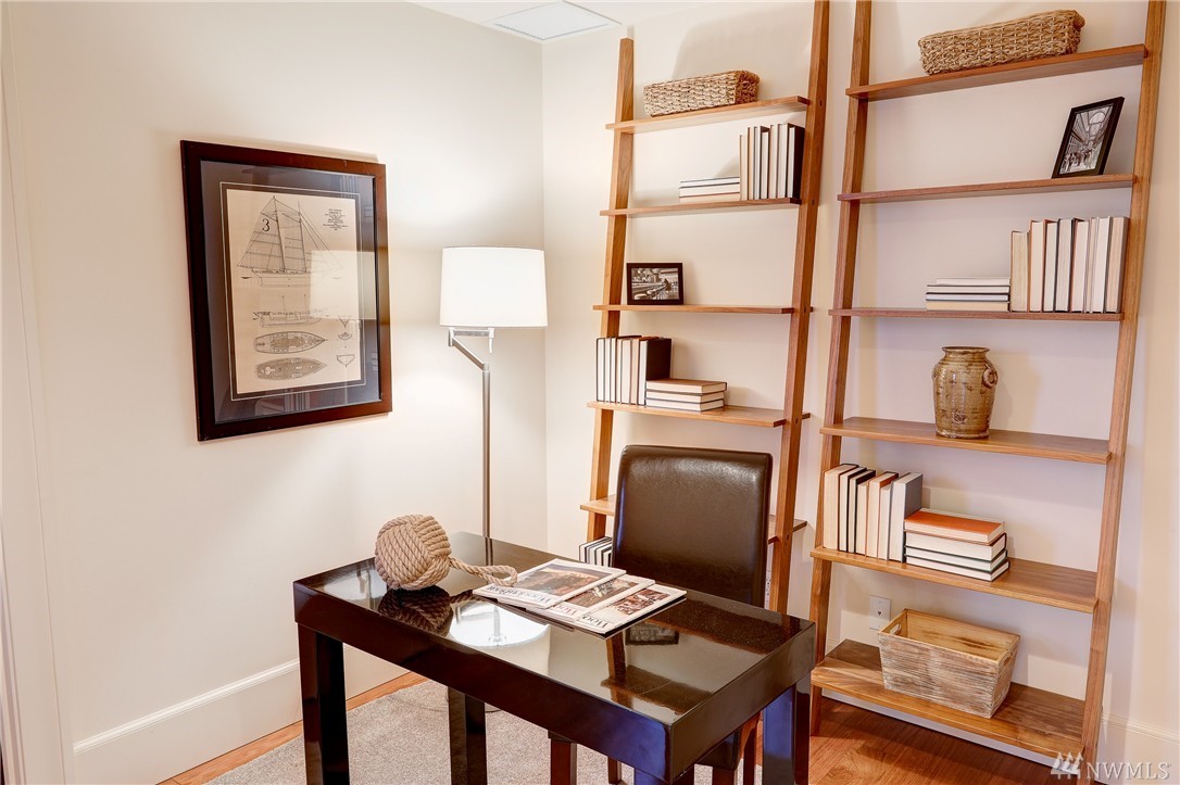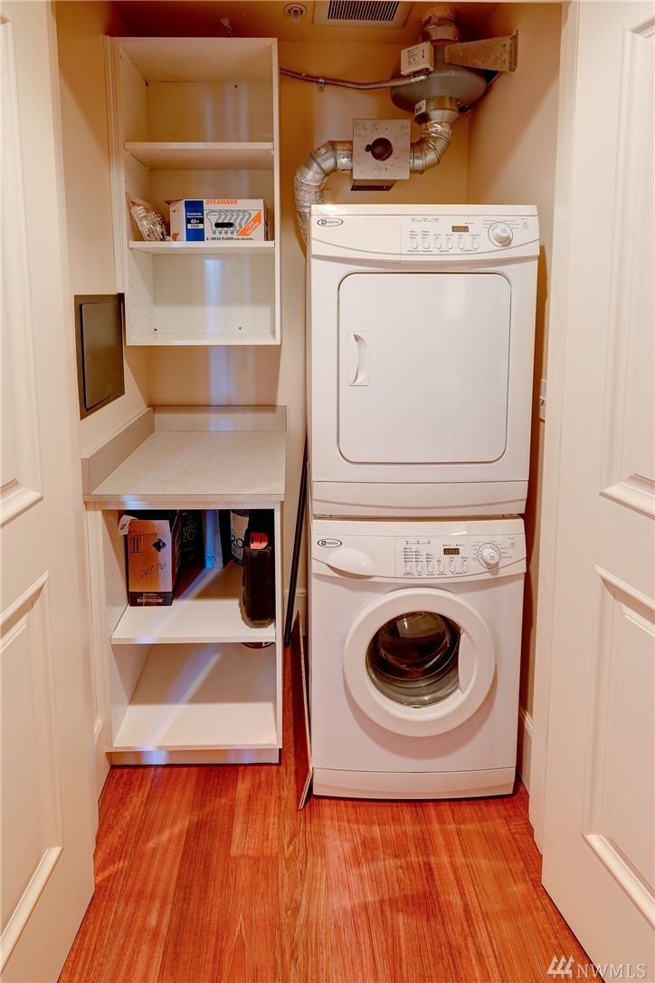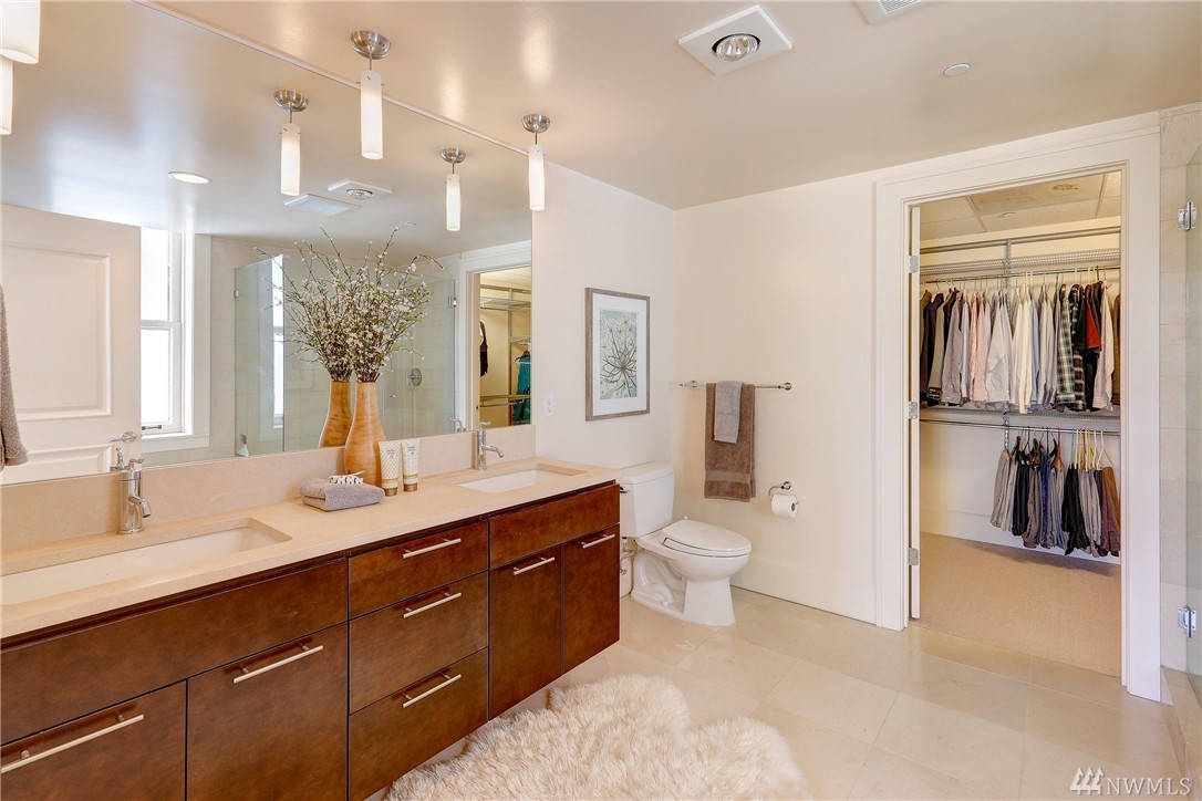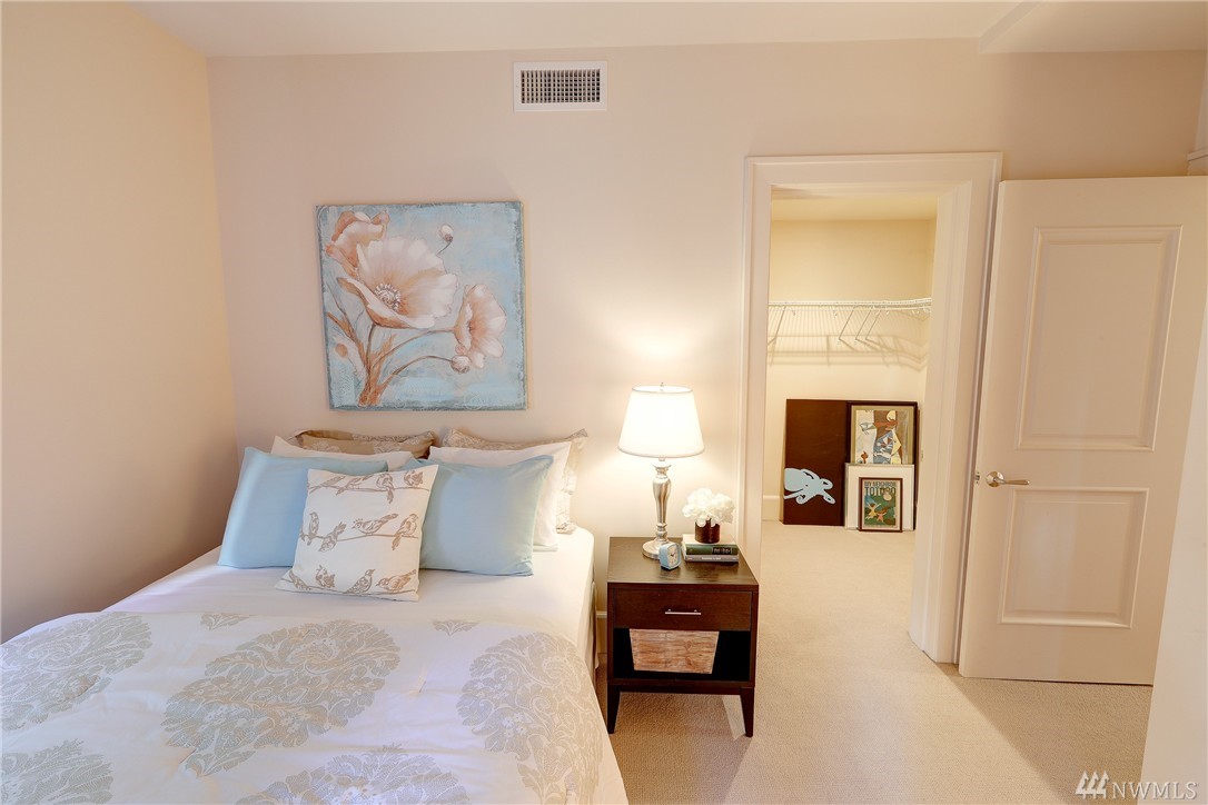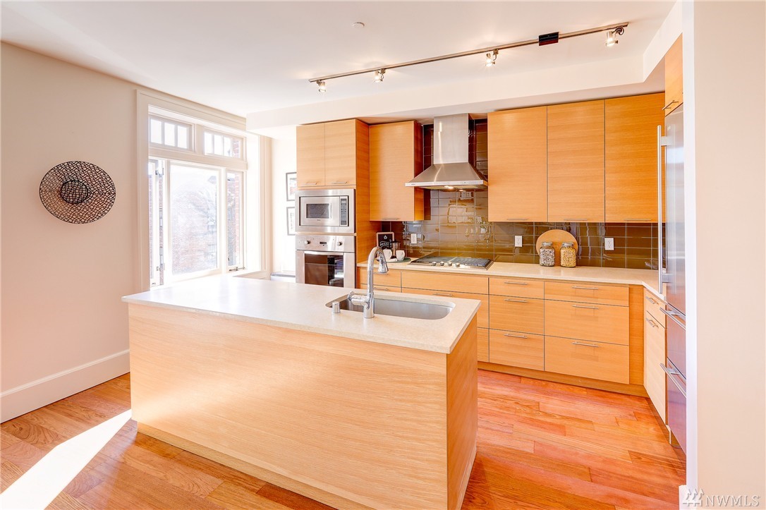 Rare Luxury Condo in Historic Registry Building w/ south facing views of Space Needle, Mt Rainier and Downtown Seattle! Tax reductions for historic registry. Refinished cherry hardwoods. New paint and carpet. Large master bedroom w/ attached master bath w/ separated tub and shower. Large walk in closets off both bedrooms. High end SubZero/Viking appliances. Additional Den/Bonus room. Central A/C. Large truck size parking spot and large storage unit in garage. Unit on east side of building.