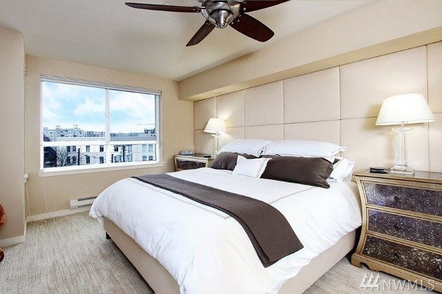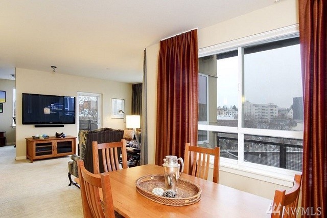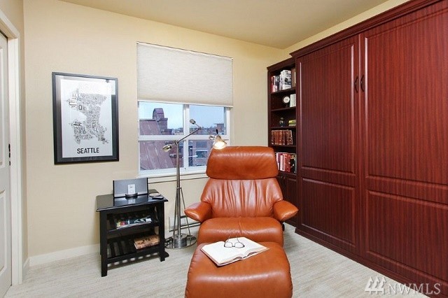 Exceptional home in the heart of Ballard. Modern, spacious floor plan, high ceilings, large windows & walk score 98! Inviting DR & LR with deck. Chef's kitchen-honed granite counts & large island, cherry cabinet SS appliances, & tile. Spectacular master suite with 5-piece bath & private deck, complete with sliding screen. 2nd BR with walk-in closet and built-ins, Murphy bed. Den with built-in desk and bookcases. High-end carpet, custom draperies. Two parking spaces & large storage unit.