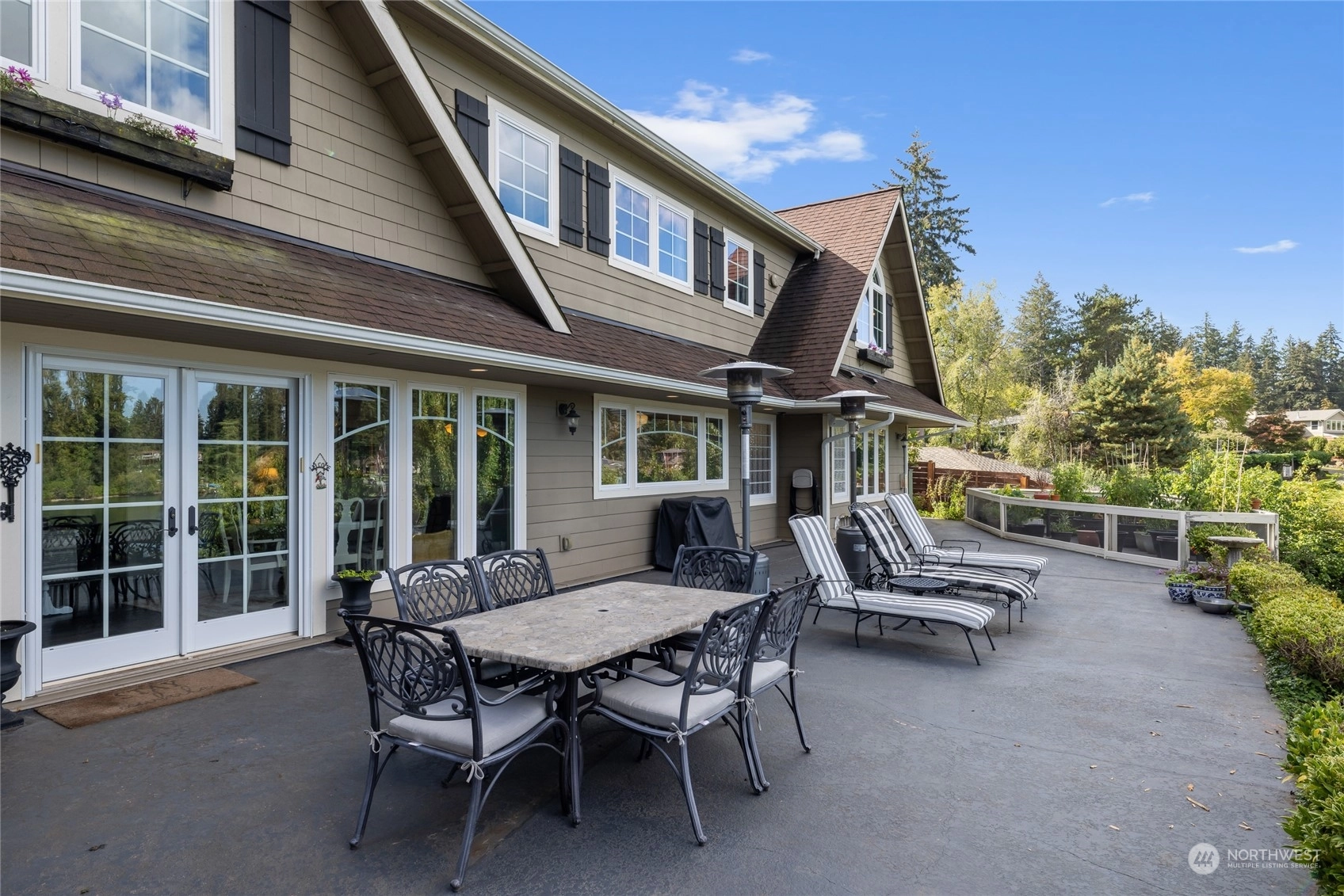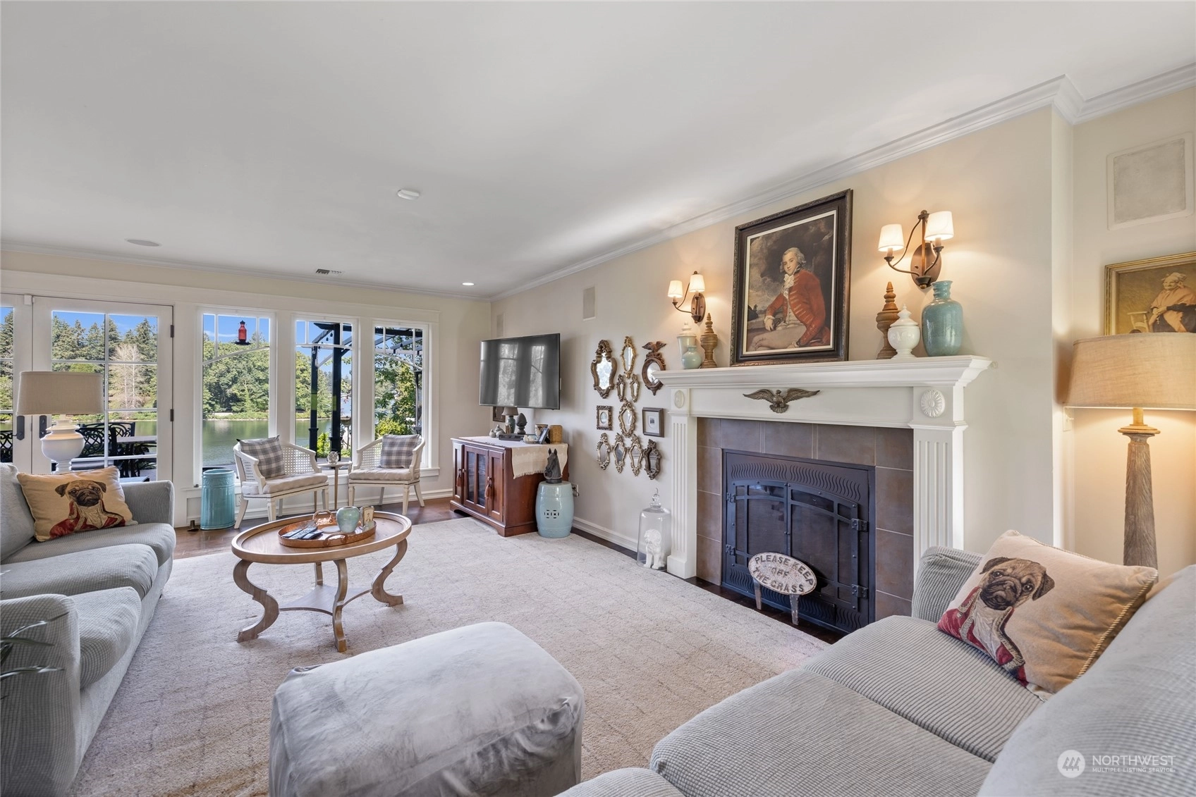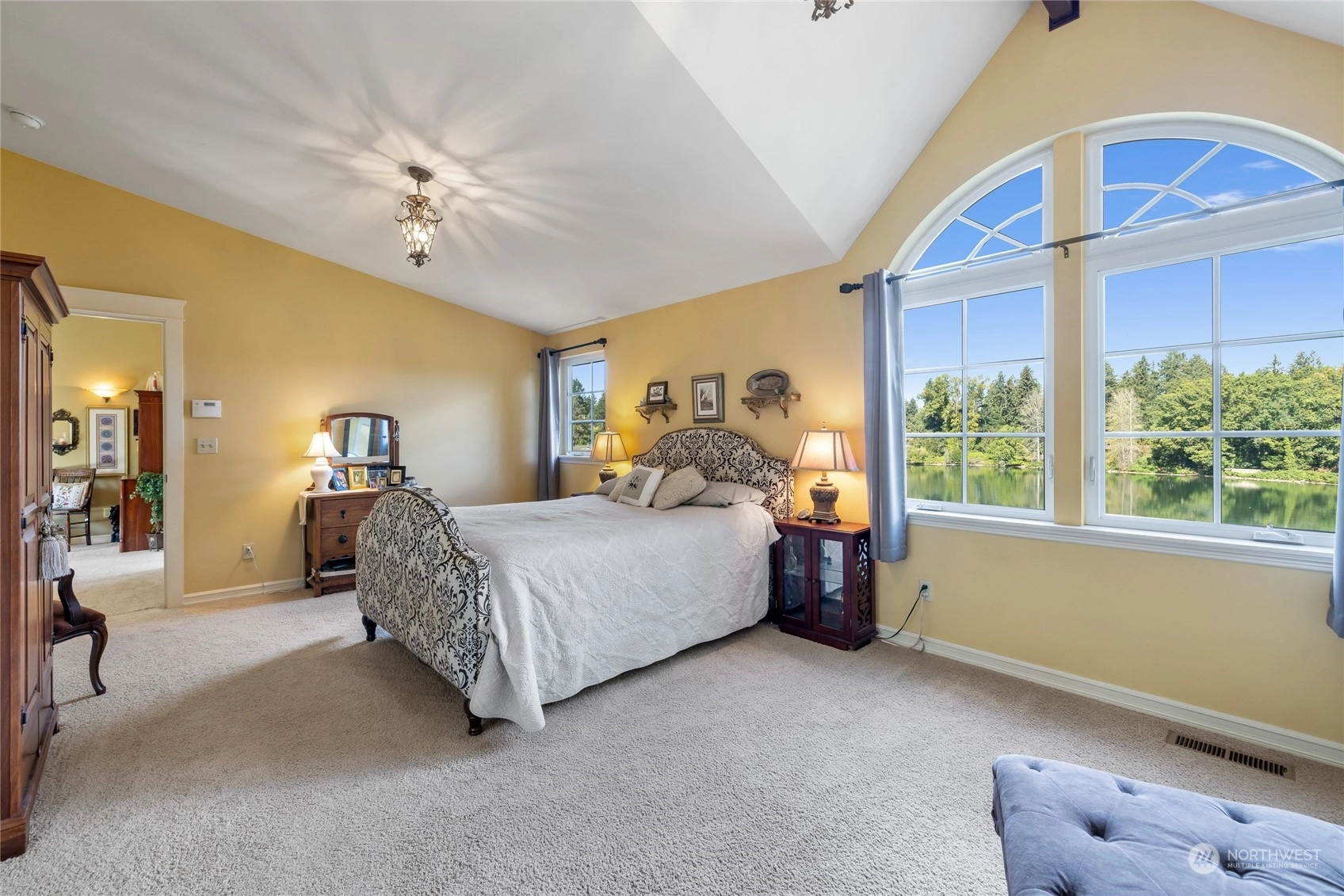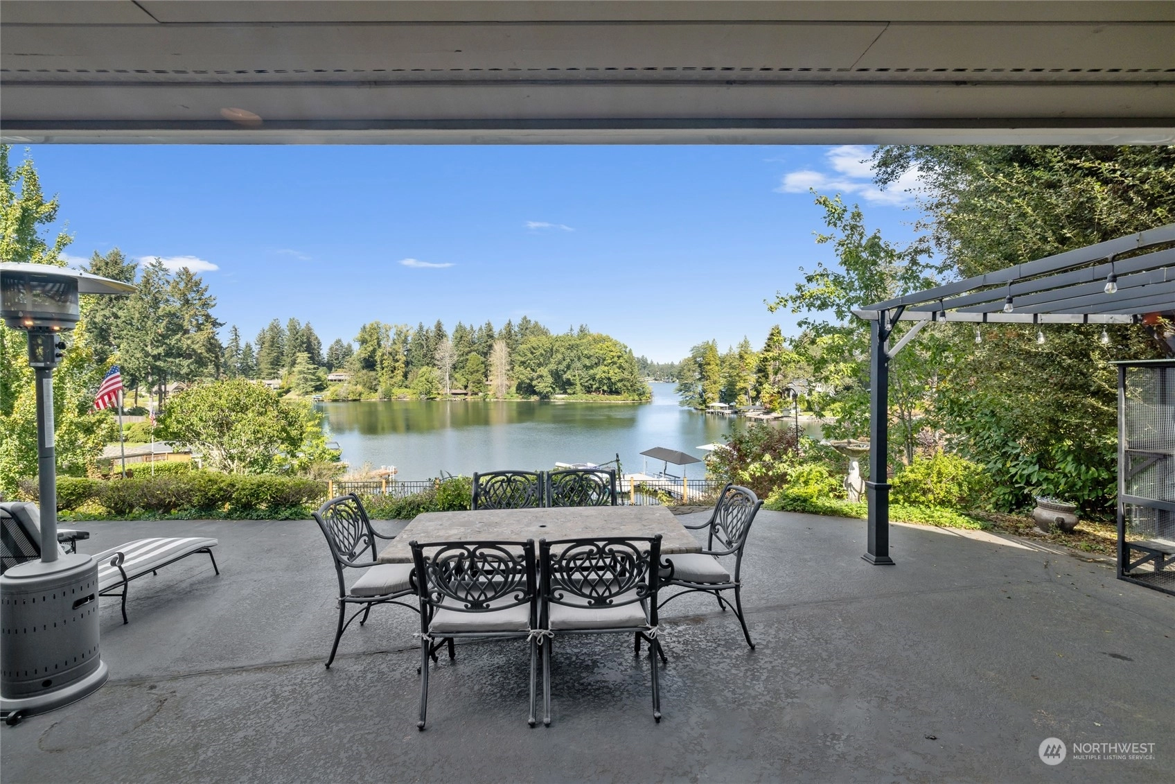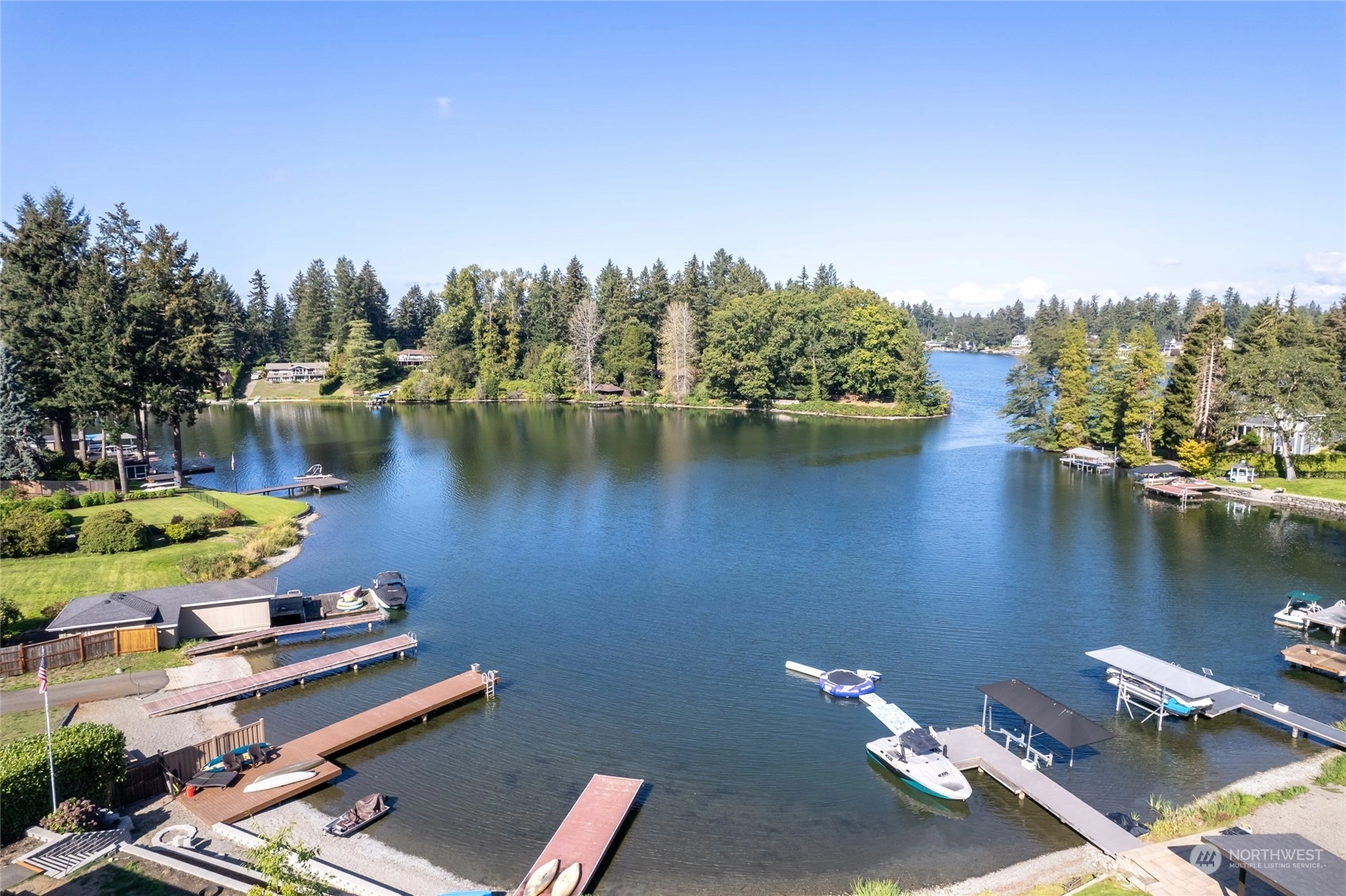 A rare opportunity in historic Evergreen Terrace, where life on Steilacoom Lake awaits! This custom-designed home features vaulted ceilings with exposed beams and 5 bedrooms, 4 bathrooms, spread across 3,096 sq ft of living space. Enjoy stunning lake views from almost every room. The main level offers hardwood floors, a cozy fireplace, a guest suite, and a convenient utility mudroom. Step out onto the terrace for your morning coffee, overlooking beautifully landscaped gardens and 60 feet of private lakefront with a dock. Central A/C for warm summers. Wired for generator, hot tub, and gas line for BBQ. Experience lakefront living at its finest!