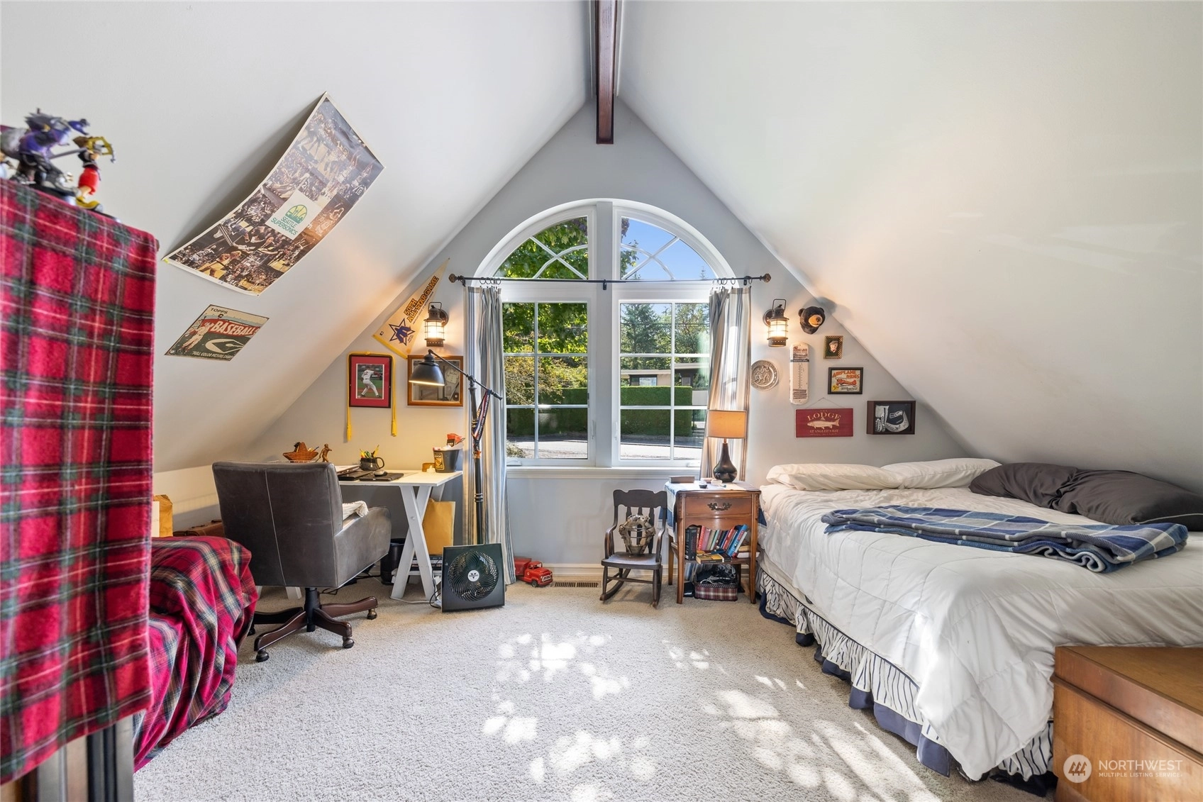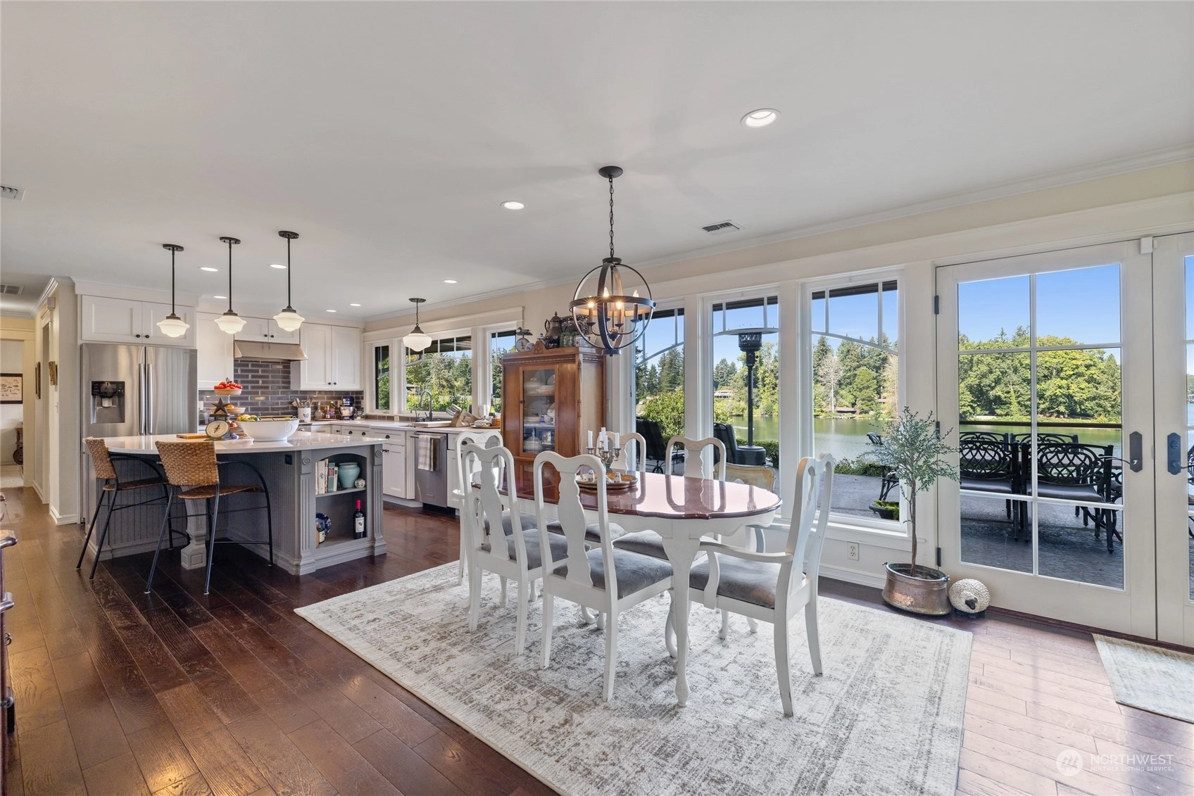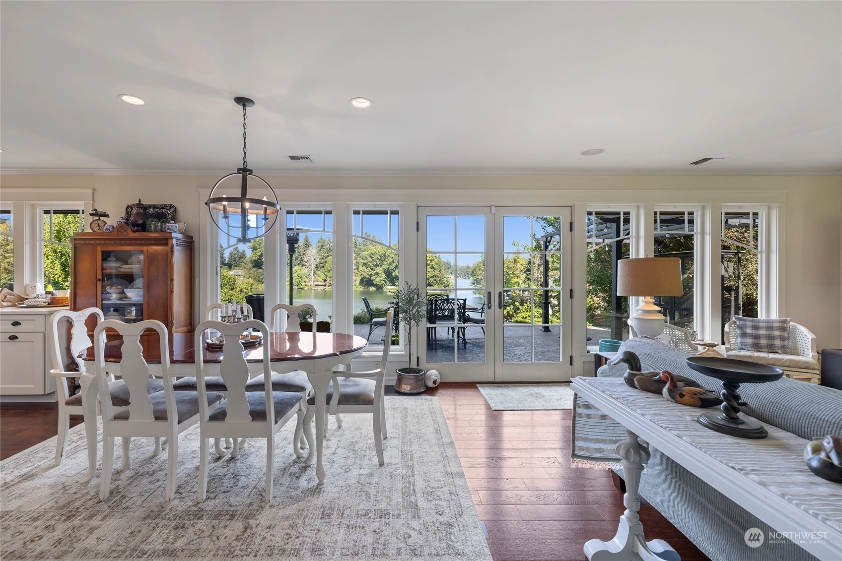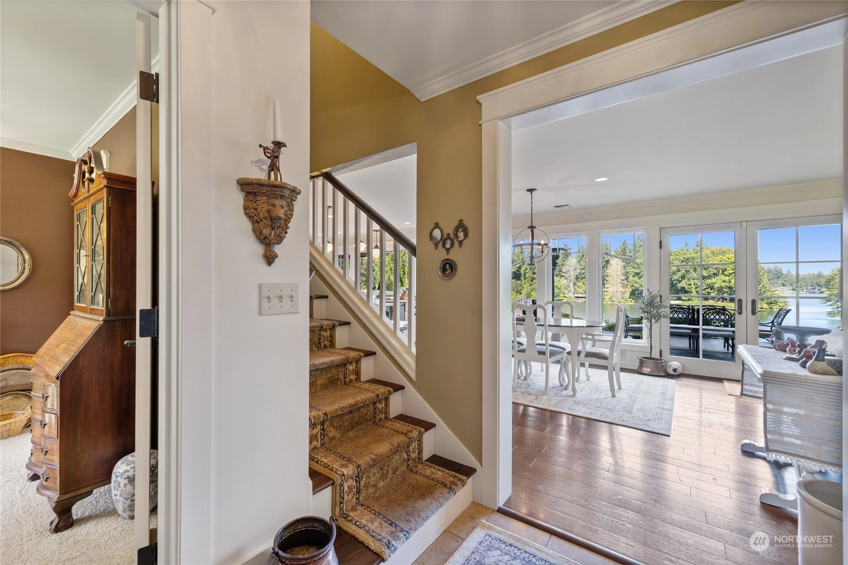 A rare opportunity in historic Evergreen Terrace, where life on Steilacoom Lake awaits! This custom-designed home features vaulted ceilings with exposed beams and 5 bedrooms, 4 bathrooms, spread across 3,096 sq ft of living space. Enjoy stunning lake views from almost every room. The main level offers hardwood floors, a cozy fireplace, a guest suite, and a convenient utility mudroom. Step out onto the terrace for your morning coffee, overlooking beautifully landscaped gardens and 60 feet of private lakefront with a dock. Central A/C for warm summers. Wired for generator, hot tub, and gas line for BBQ. Experience lakefront living at its finest!
