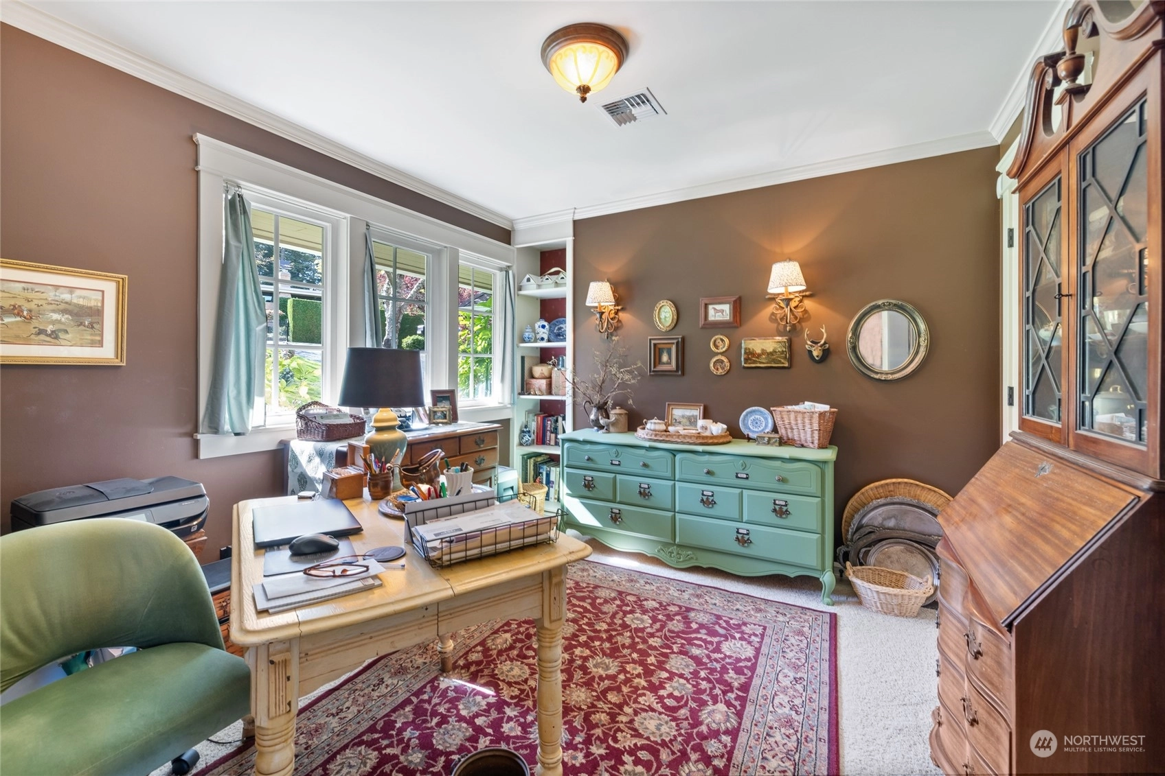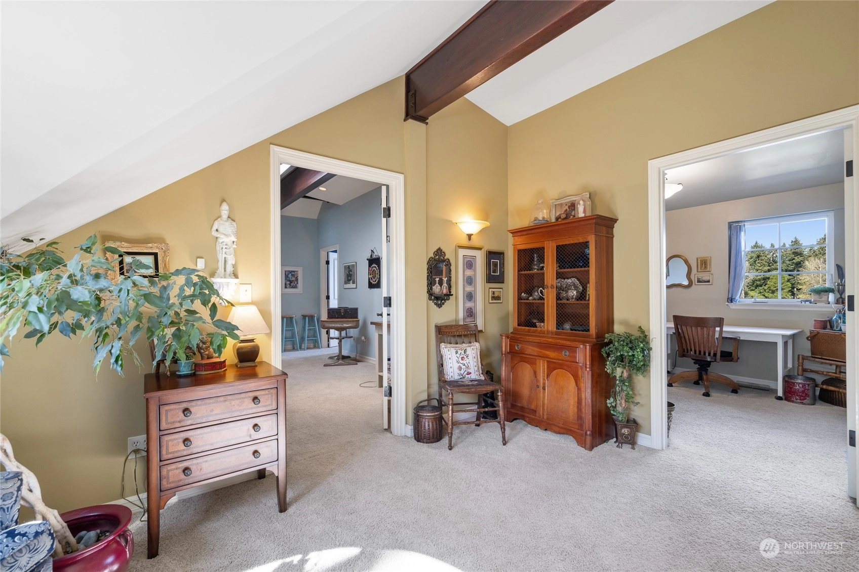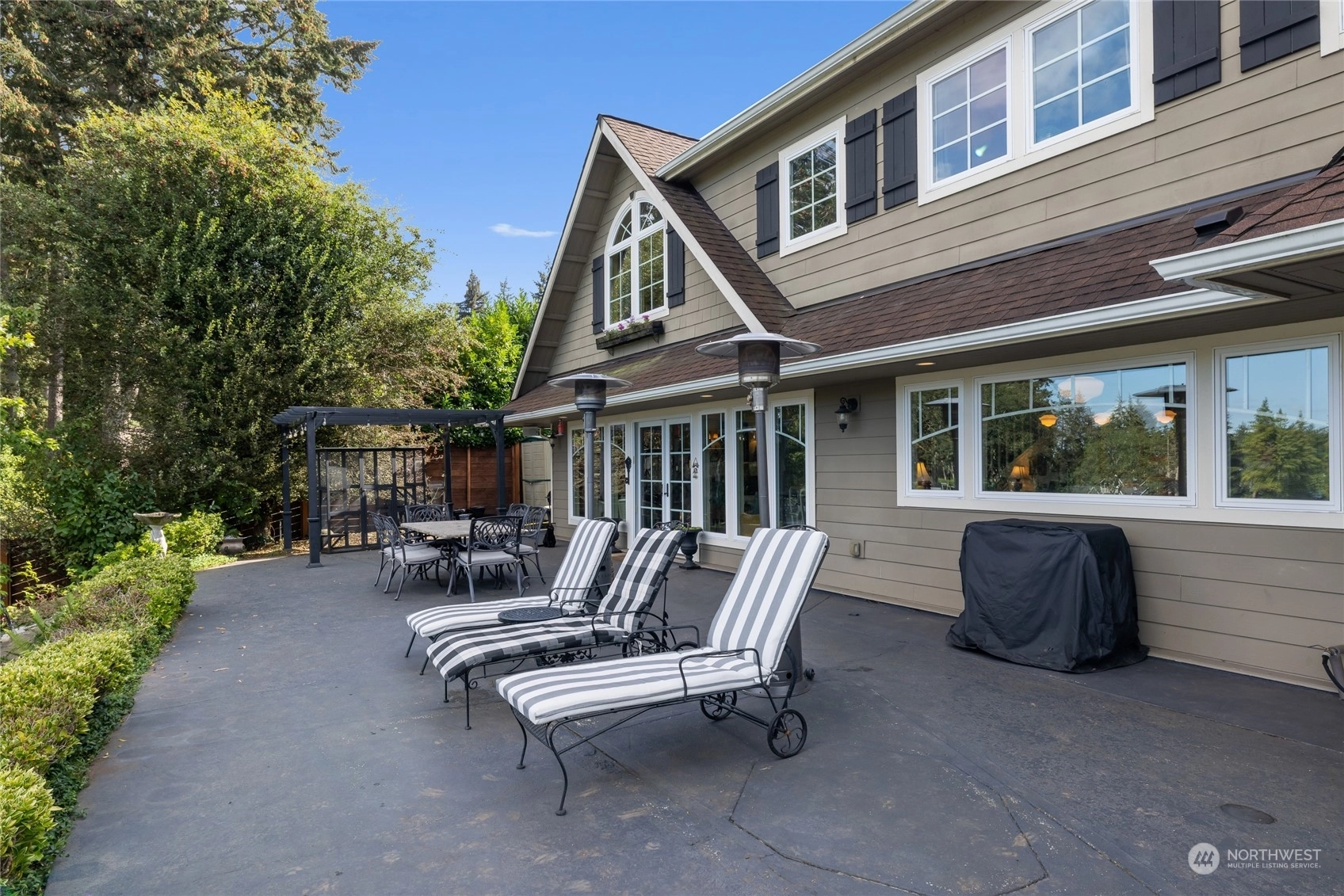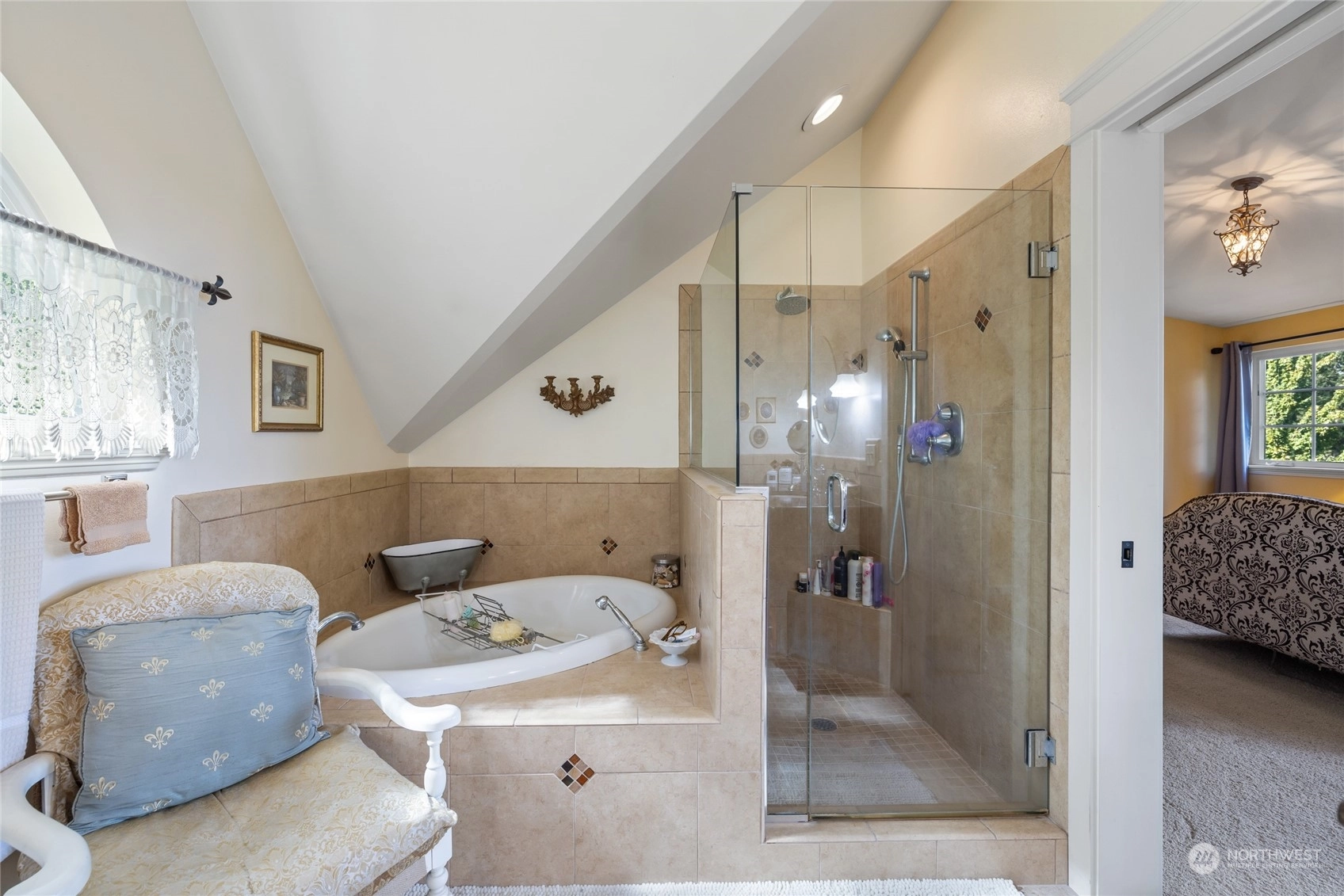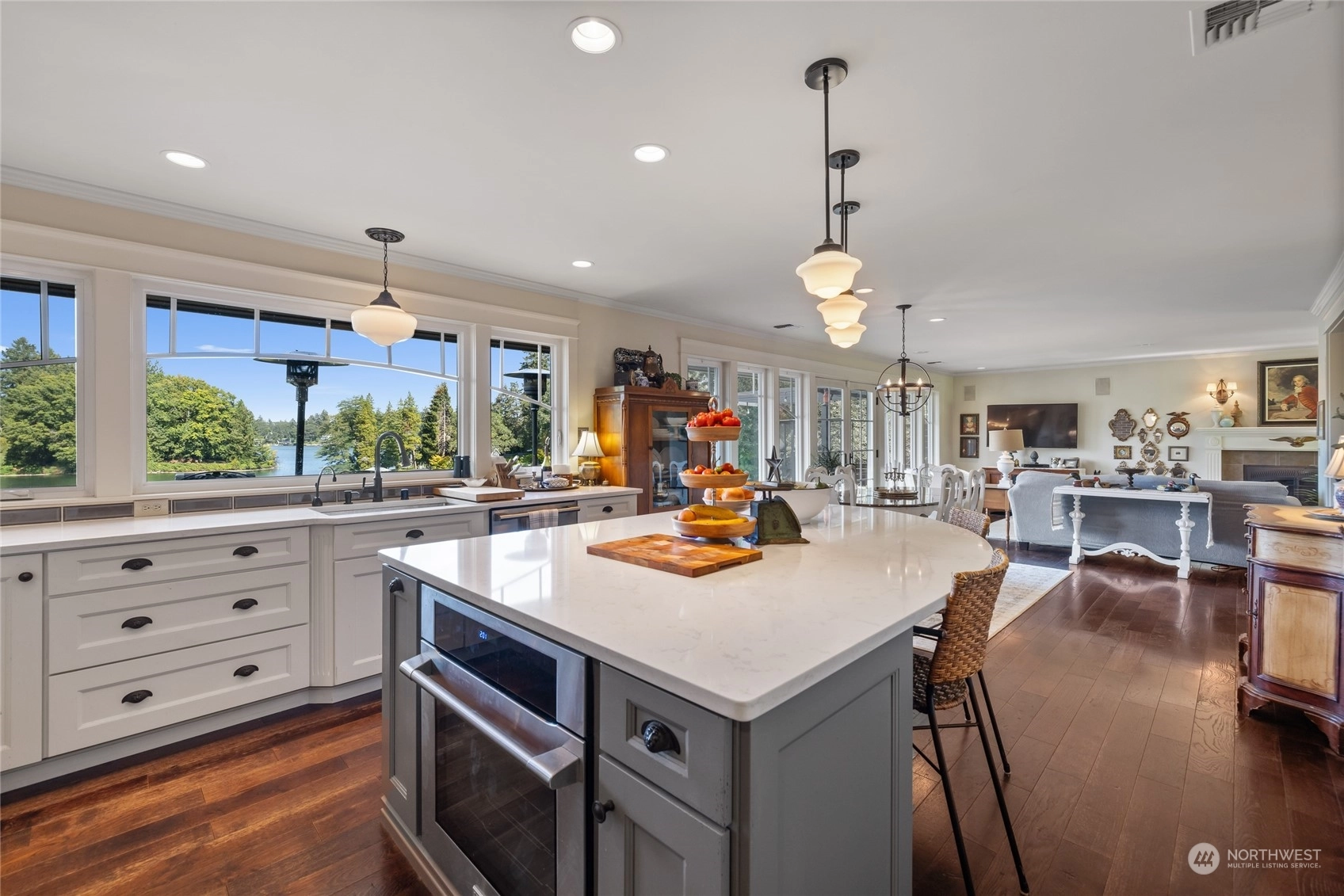 A rare opportunity in historic Evergreen Terrace, where life on Steilacoom Lake awaits! This custom-designed home features vaulted ceilings with exposed beams and 5 bedrooms, 4 bathrooms, spread across 3,096 sq ft of living space. Enjoy stunning lake views from almost every room. The main level offers hardwood floors, a cozy fireplace, a guest suite, and a convenient utility mudroom. Step out onto the terrace for your morning coffee, overlooking beautifully landscaped gardens and 60 feet of private lakefront with a dock. Central A/C for warm summers. Wired for generator, hot tub, and gas line for BBQ. Experience lakefront living at its finest!