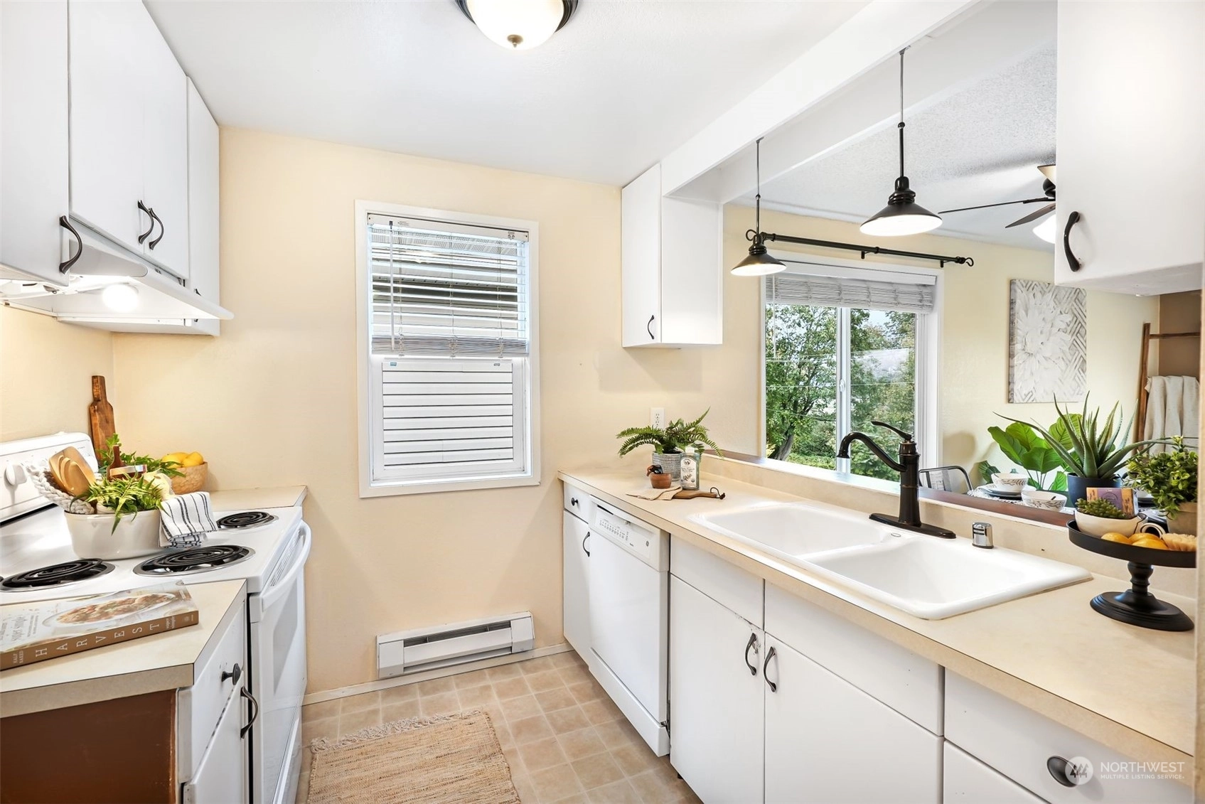 Nestled in the heart of North Everett, this bright and charming condo offers everyday conveniences just moments away. Located on the top floor, you will find stunning Cascade Mountain and river views. The kitchen features freshly painted cabinetry & bar-height seating. The dining space opens up to your intimate living room, where you will quickly find yourself enjoying sunsets over the mountains. Down the hall, discover two bedrooms & a full bathroom; with built-in cabinetry and storage in one of the bedrooms. You will love living just moments from the lively Everett Marina, which is full of local dining, breweries, & more. This condo is in close proximity to Providence Medical Center, Everett Naval Station, & quick access to I-5/Hwy-2.