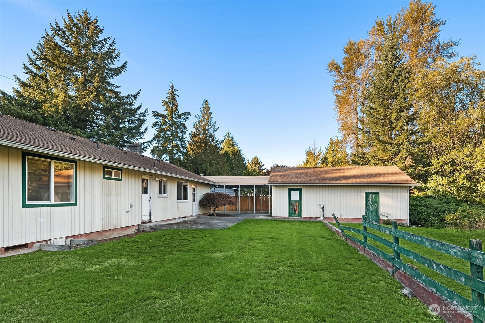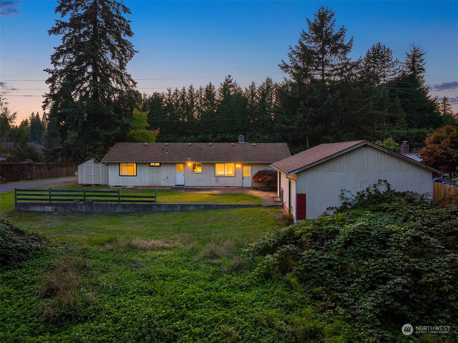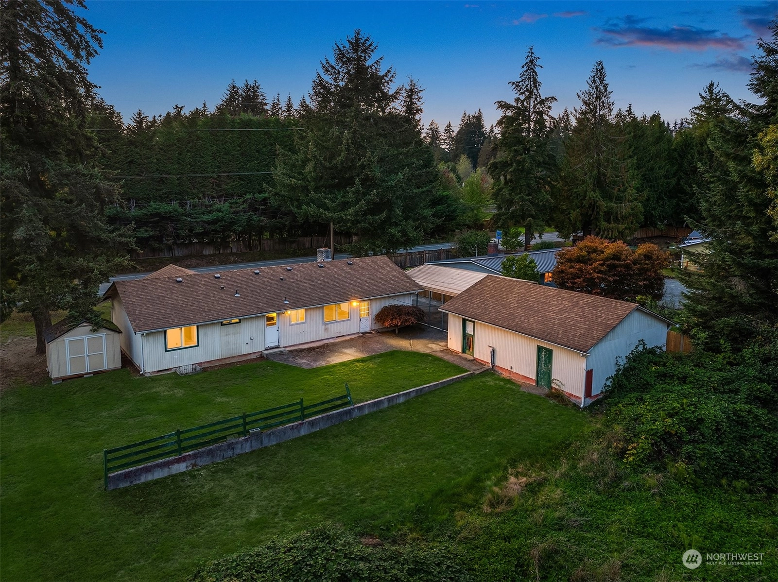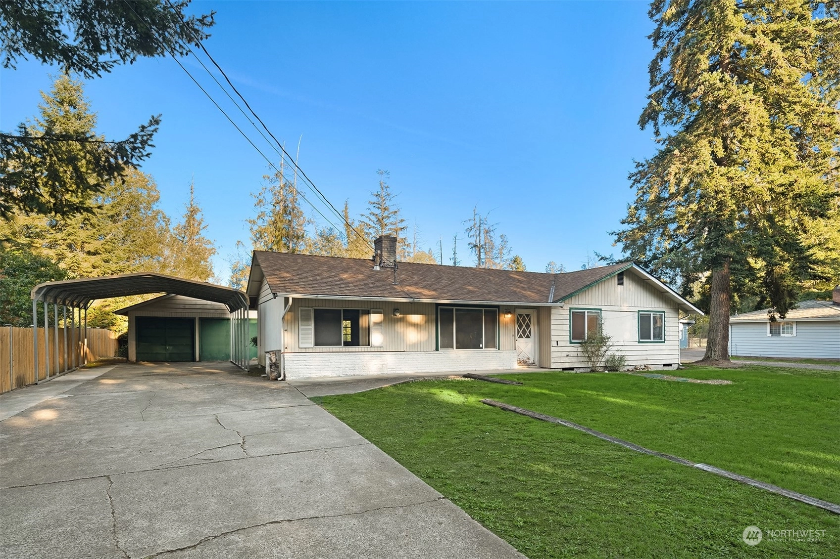 Incredible opportunity to own in a premier location. Single level living ideal for both investors and the end-user, mere miles from Downtown Woodinville, Cottage Lake and Tolt Pipeline. Redmond and Kirkland a short distance away, situated in an area with enormous growth potential. Renovate existing footprint, expand and add square footage, or build new in a location surrounded by high-end estates. Site features a shy half acre lot, detached garage with shop, and custom steel carport. Home lives larger than its 1260SF with open concept living space, additional den/bedroom and dining area. Potential for detached dwelling unit, Buyer to verify with county. Limitless potential in a location that makes your commute a breeze!