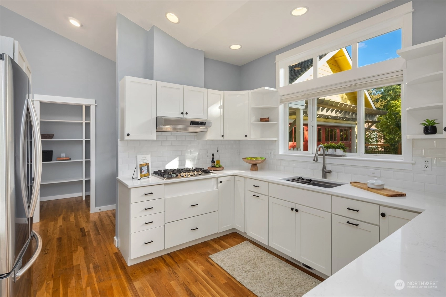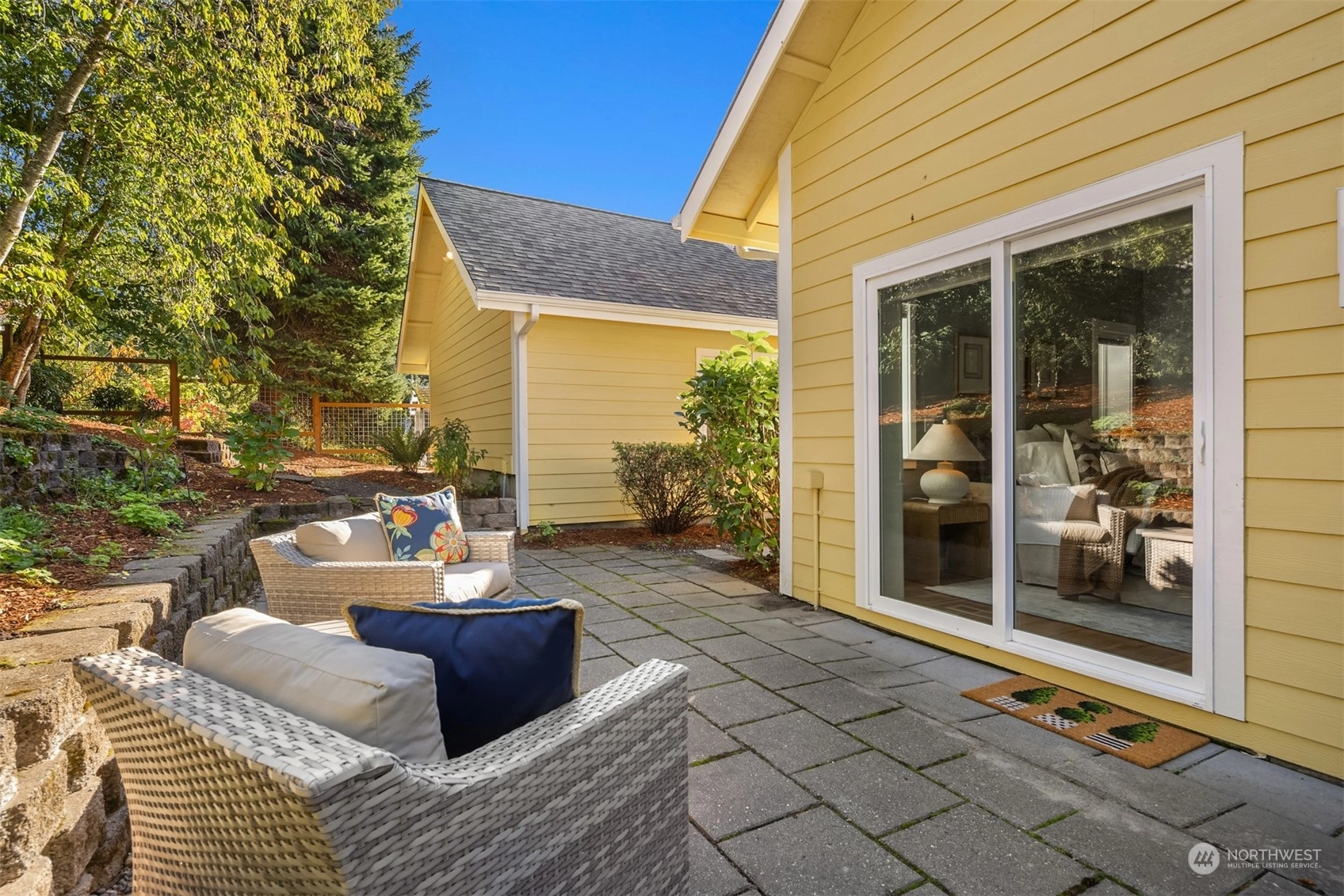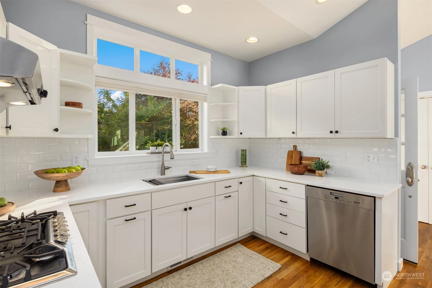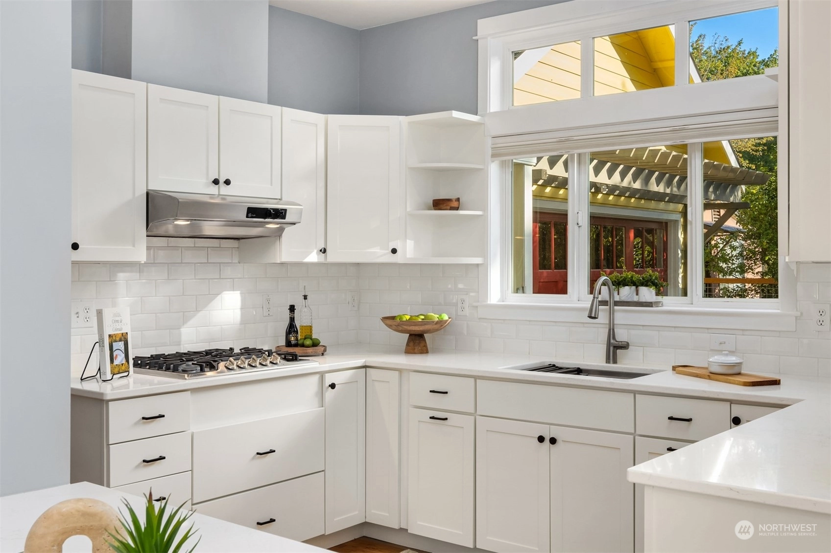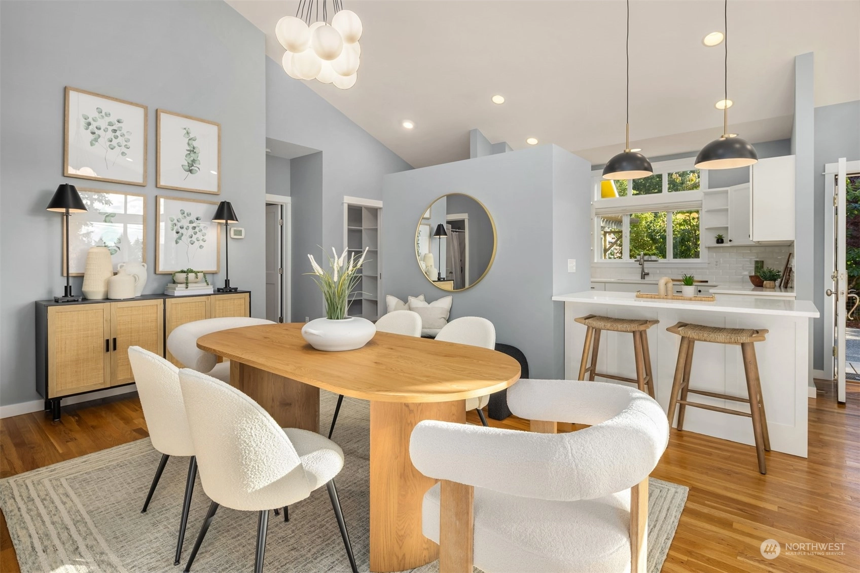 Discover this custom rambler, built in 2005—no steps or stairs! Move-in ready, immaculate home welcomes you w/ warmth. Open the door to a sunlit floor plan w/ soaring ceilings & oversized windows. West-facing big sky views & stunning sunsets + a little peek at the Olympics! The heart of the home is a remodeled kitchen w/ modern appl., bar seating & updated fixtures. Entertaining is easy across hardwoods in open dining & living areas. 3 beds offer flexible use as an office or studio. Outside, enjoy low-maintenance Hardiplank siding, private grounds, a front deck & back patio. An oversized detached garage connects via a covered breezeway. Located on Winslow’s western edge close to parks, trails, beaches & more. Don't miss this charming home!