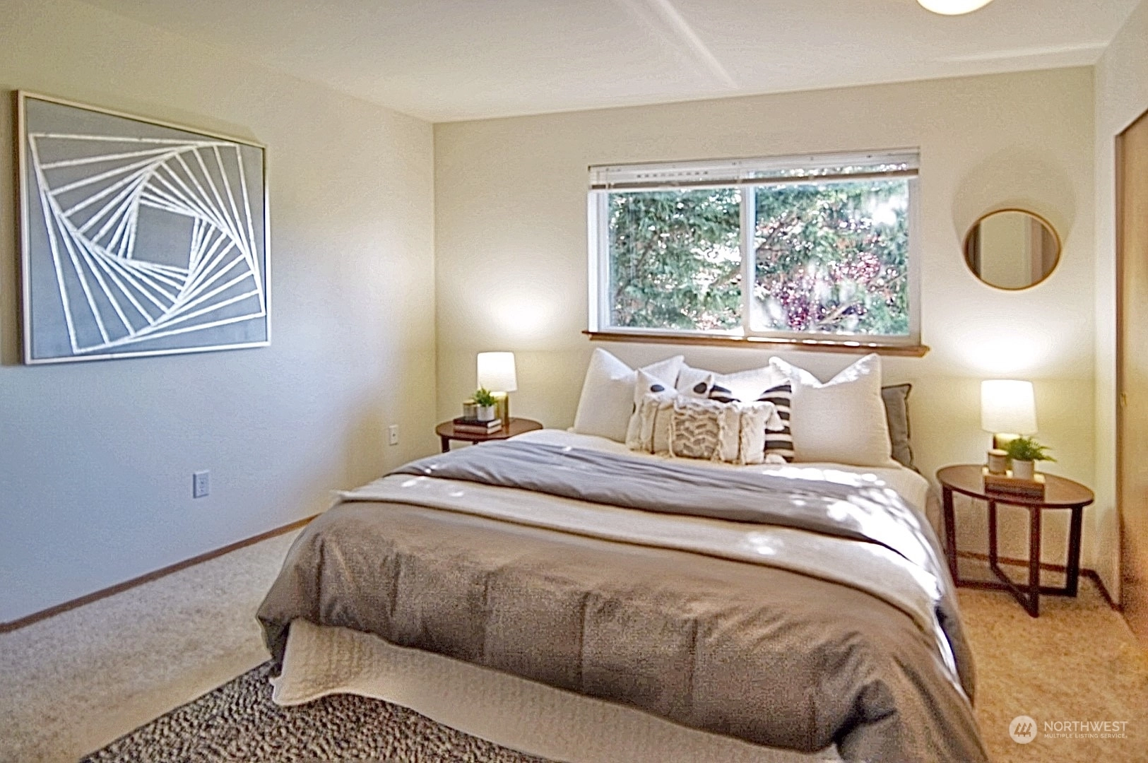 BUYERS - HERE IS A GREAT OPPORTUNITY FOR YOU! Top floor townhome/condo boasts rare floorplan featuring 2 PRIMARY BEDROOMS, both with en-suite full baths, Step inside to a lovely-open-expansive living space designed with comfortable room to breathe. Main floor also includes dining area & half bath plus access to your oversized deck to enhance those outdoor moments. New carpet and paint plus all appliances included. Complex has 6 total units and includes dedicated private parking spaces & fencing surrounding the property. Conveniently located only 2 minutes from Boeing makes this an AFFORDABLE RENTAL ASSET FOR INVESTORS! Enjoy Walter E. Hall Park & golf course across the street. MUKILTEO SCHOOLS and multiple public transit options.