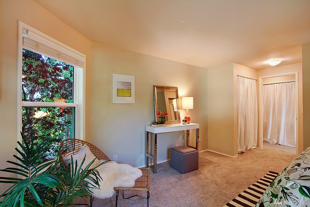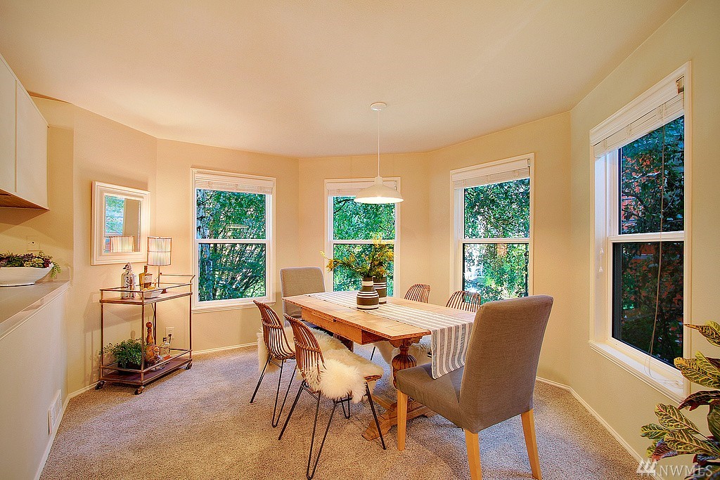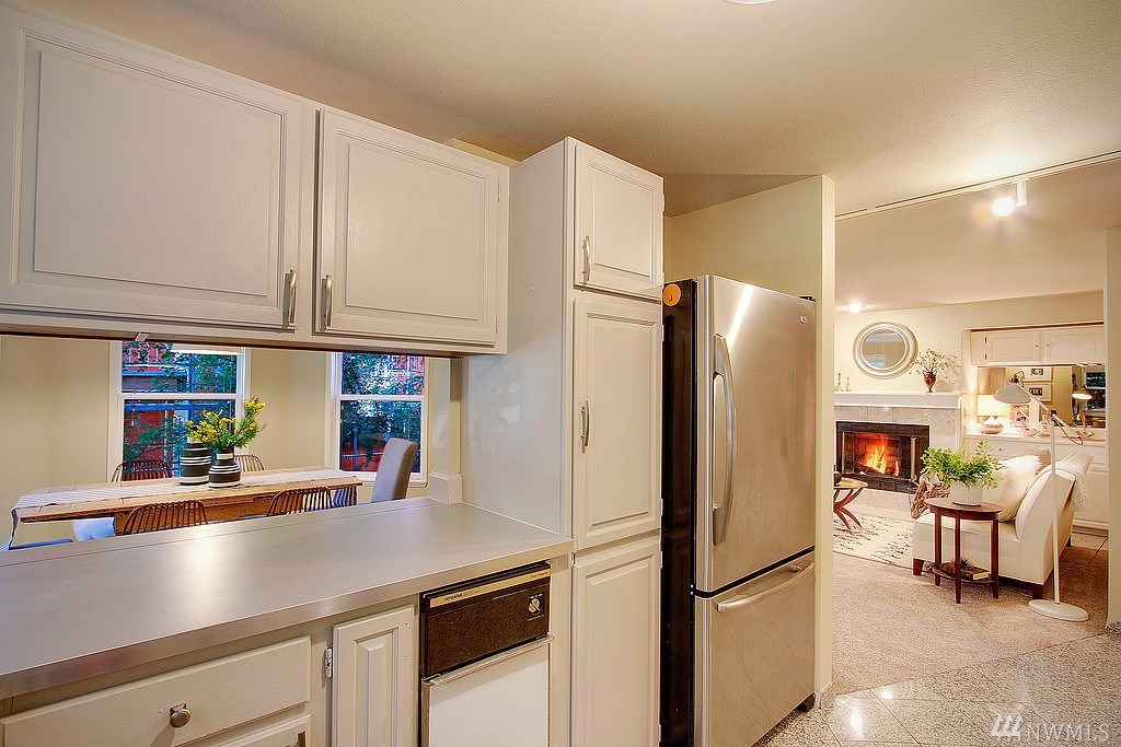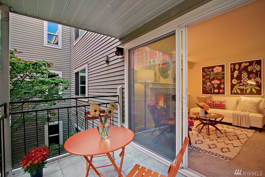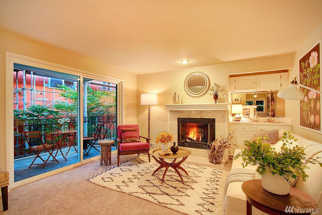 A private, spacious corner unit located in the heart of Capitol Hill yet on a quiet tree-lined street, just steps to Top Pot. An open layout perfect for entertaining; mix cocktails at the wet bar, cozy up in front of the wood burning fireplace, nosh in the “real” sized dining room, enjoy the evening on the balcony big enough for table & chairs. What’s more: 2 closets in the large bedroom, new carpet, in unit w/d, storage unit, secure parking, well-managed bldg. Walk to eats, drinks & SLU