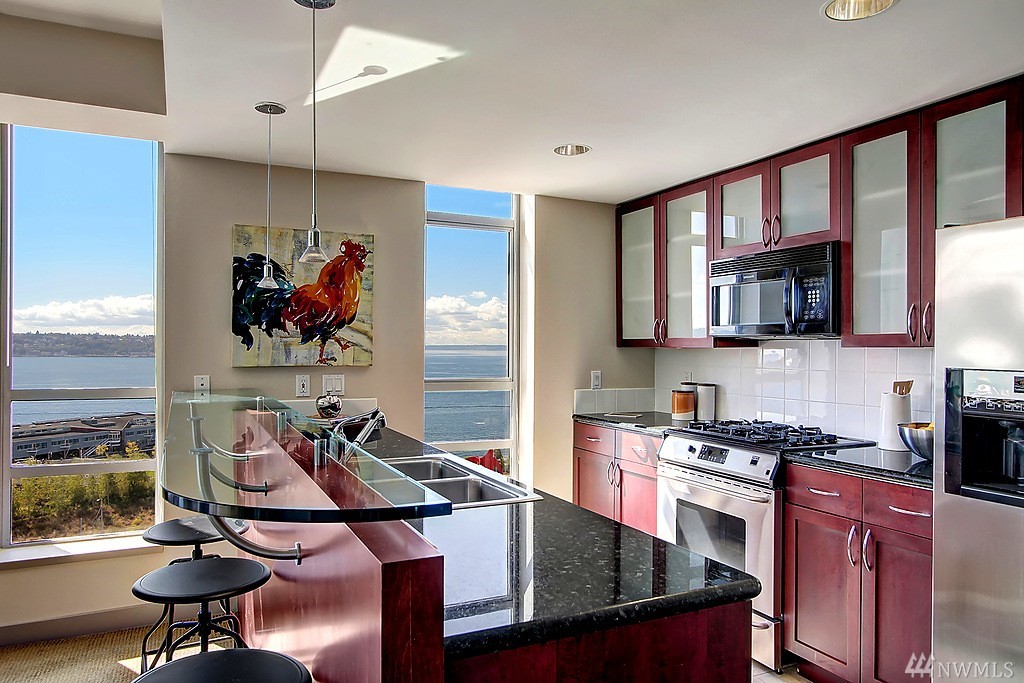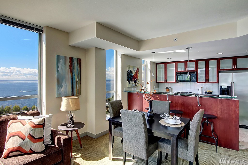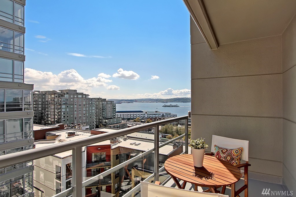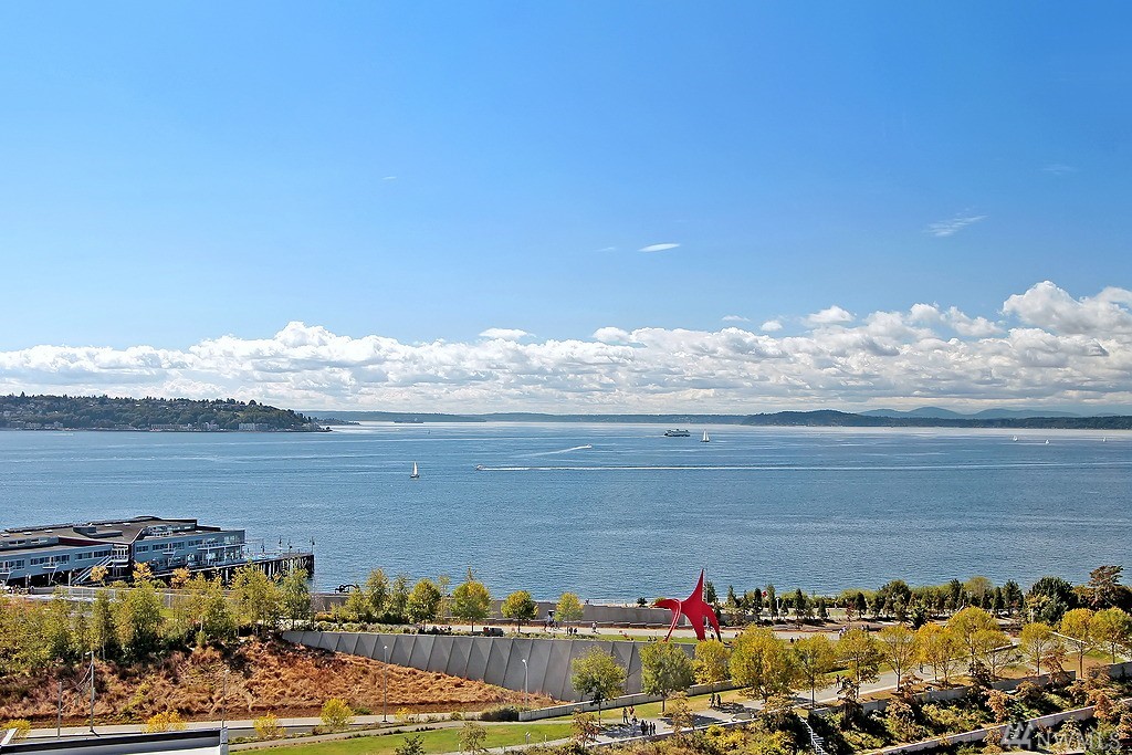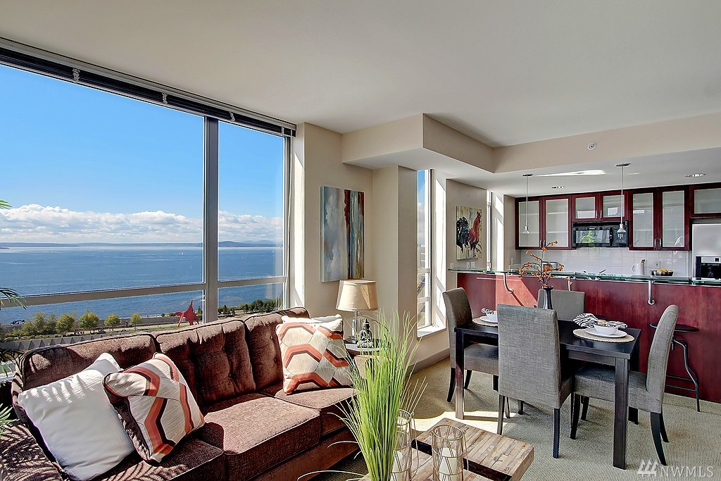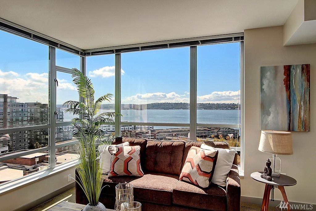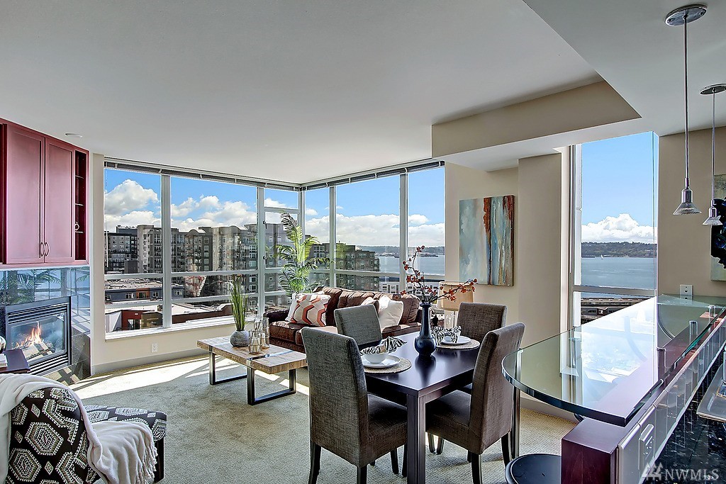 Enjoy panoramic views of Puget Sound & Olympics from nearly every window in this luxurious 1-bed condo at The Concord. This sun-drenched SW corner unit features walls of windows, open floor-plan, gas fireplace, chef's kitchen, private covered deck. The Concord offers great amenities including 24hr concierge. Parking & storage included. Ideal Belltown location just 2 blocks to waterfront. Stroll to restaurants, shops, Pike Market, everything downtown Seattle, SLU, & lower QA. No rental cap.